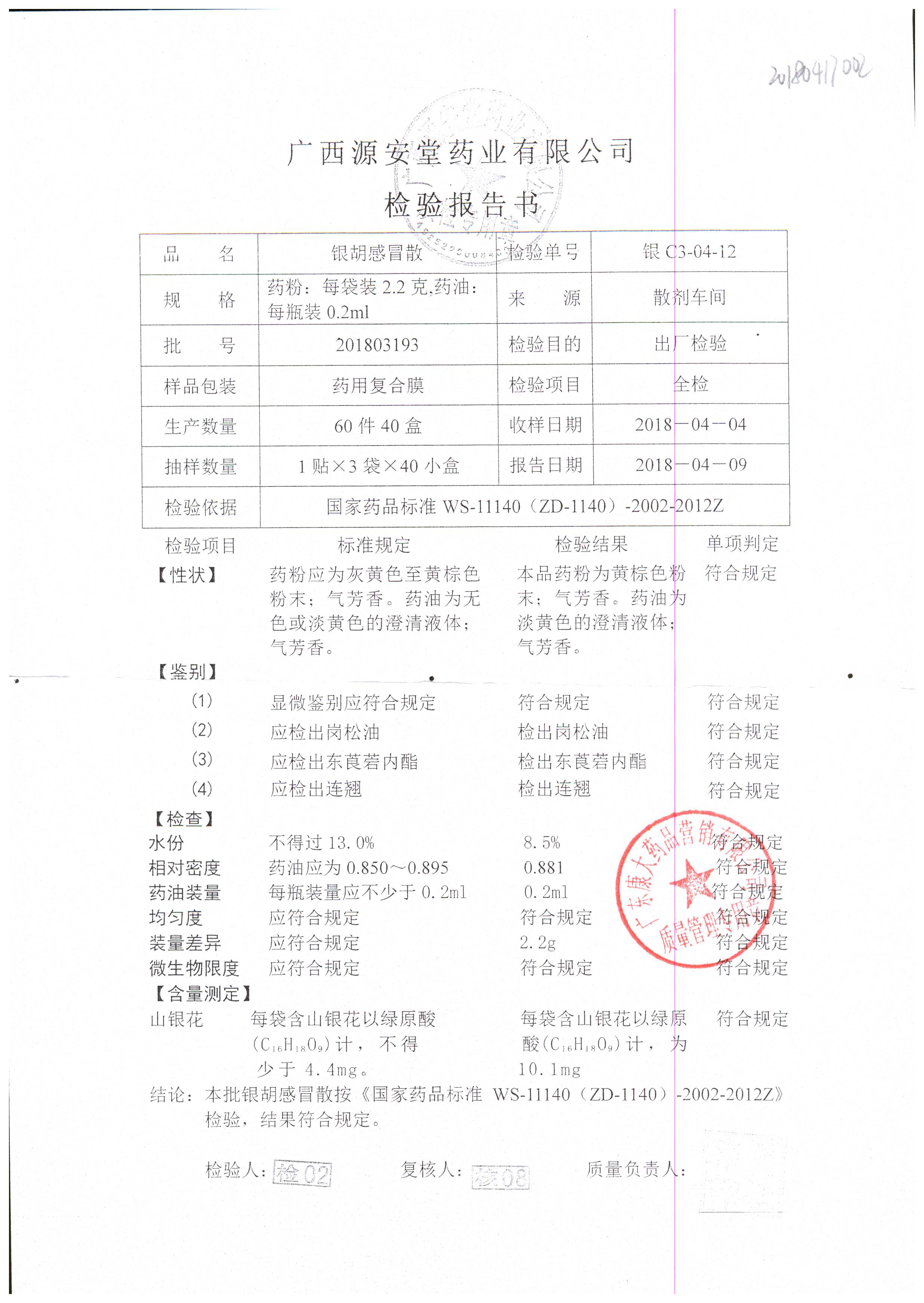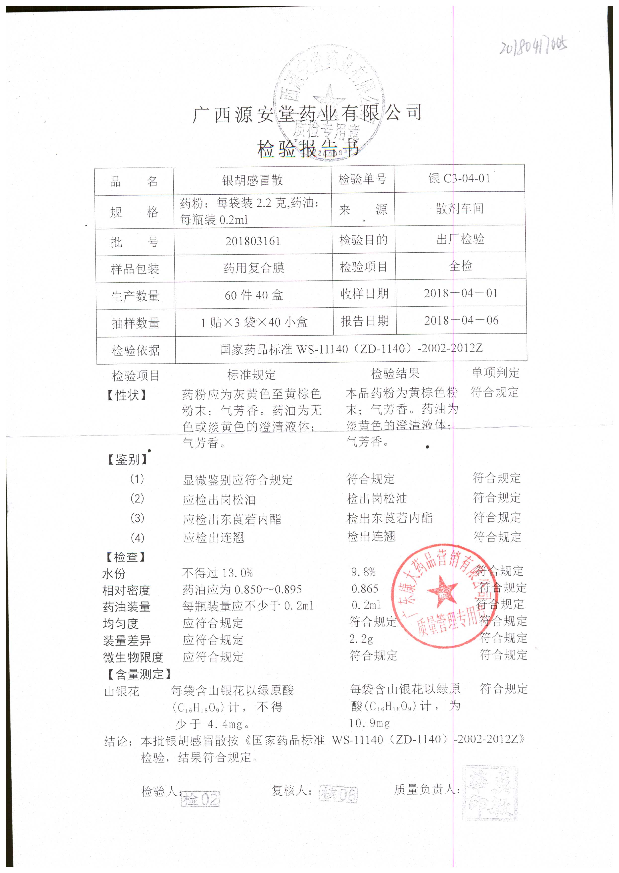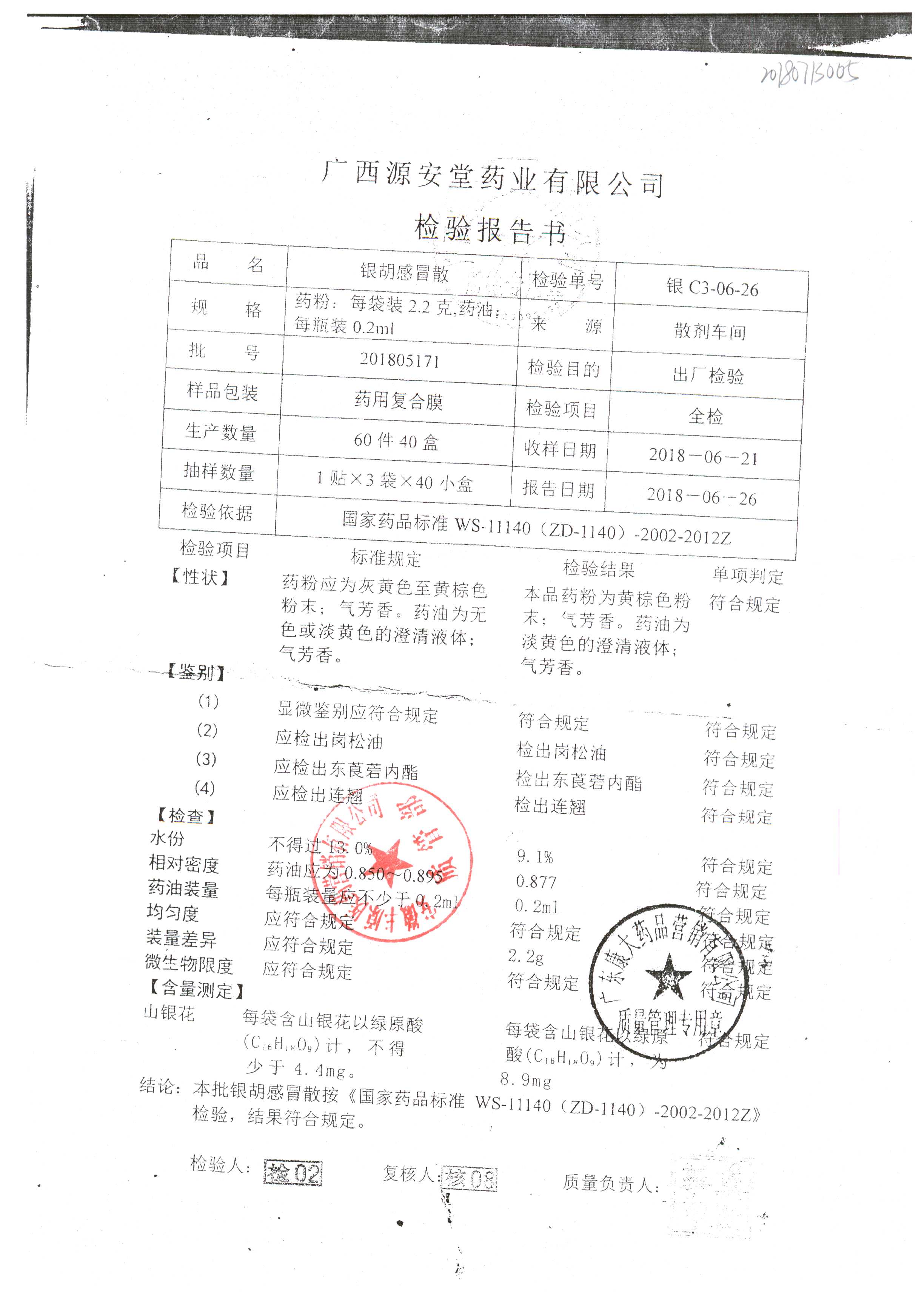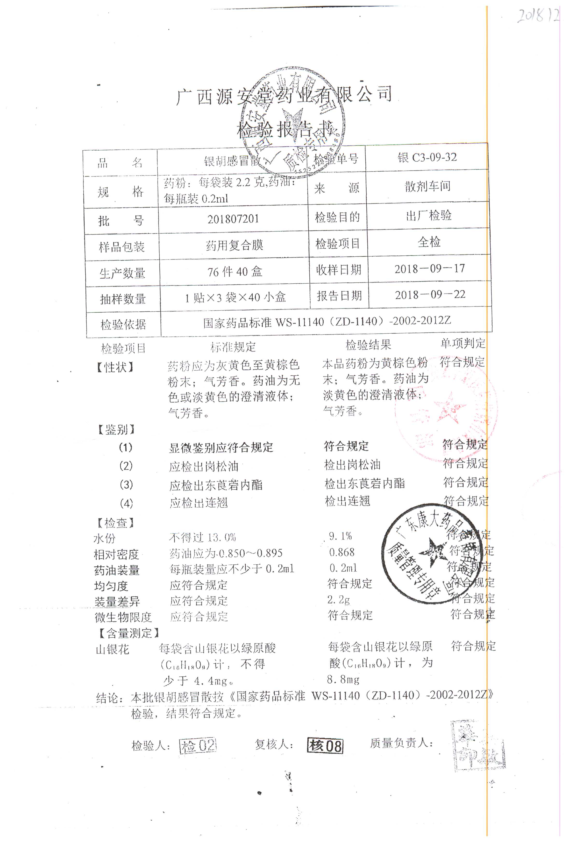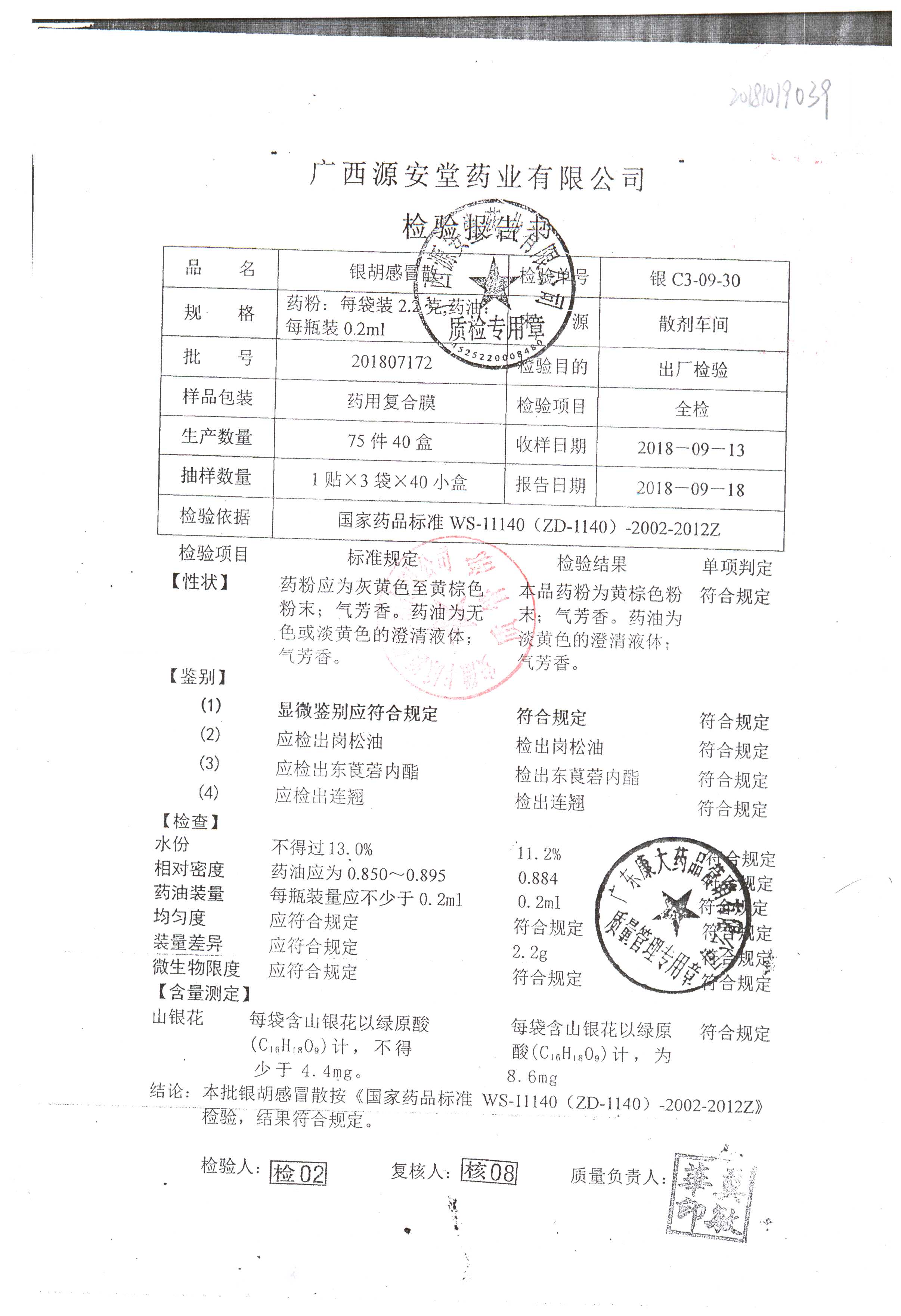 | 銀胡感冒散 | 3袋 | 201812143 | 查看詳情 |