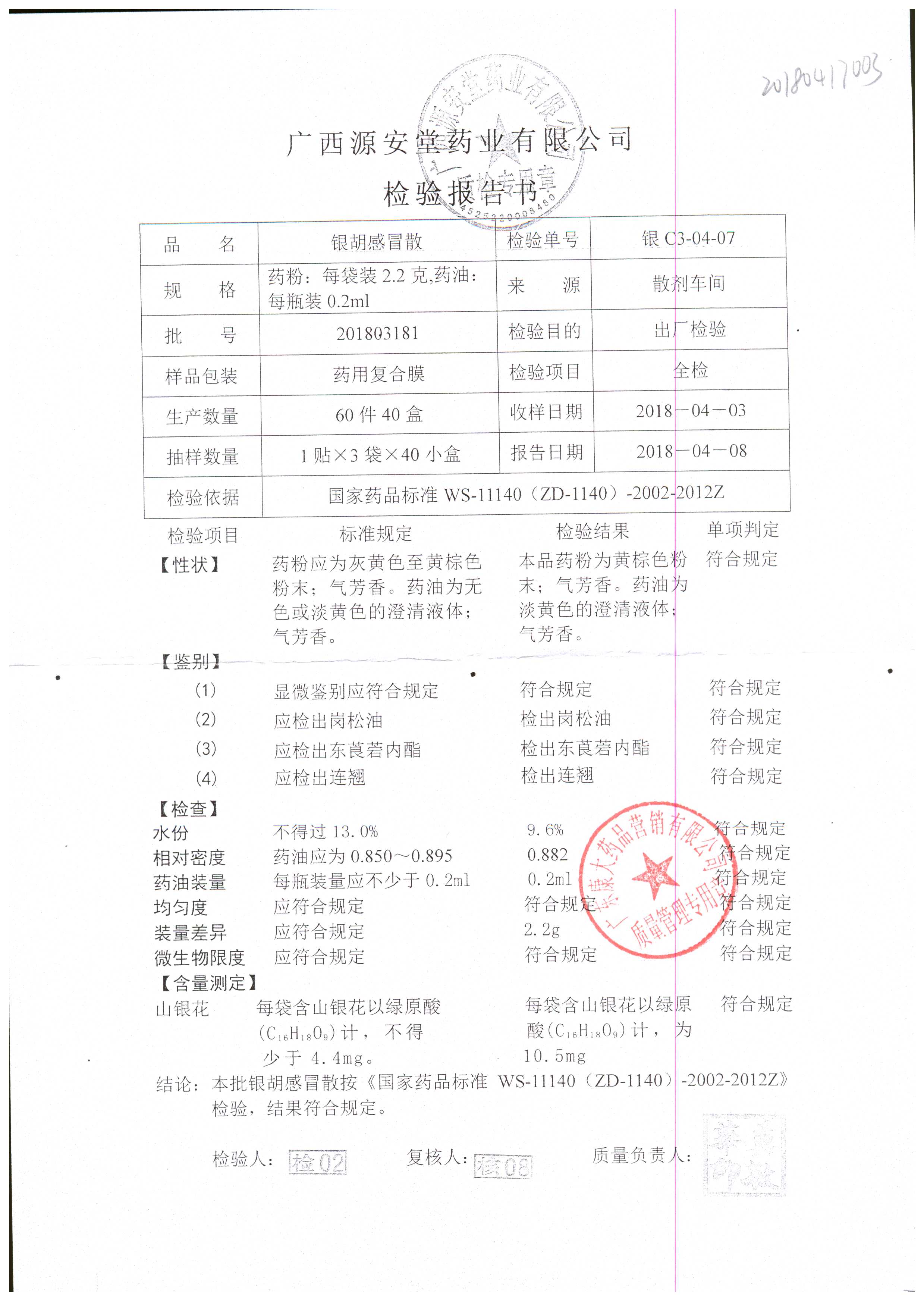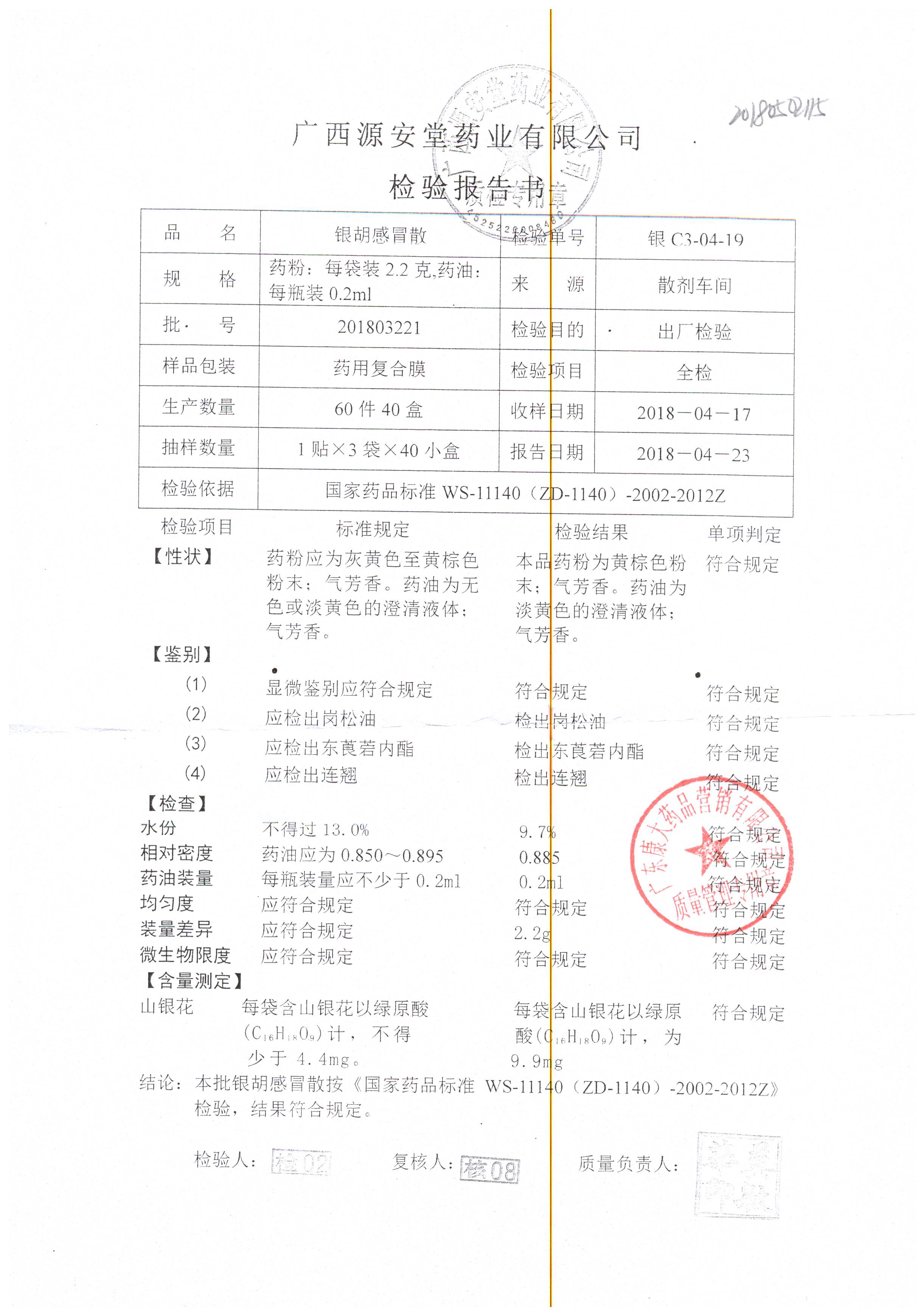 | 銀胡感冒散 | 3袋 | 201807201 | 查看詳情 |