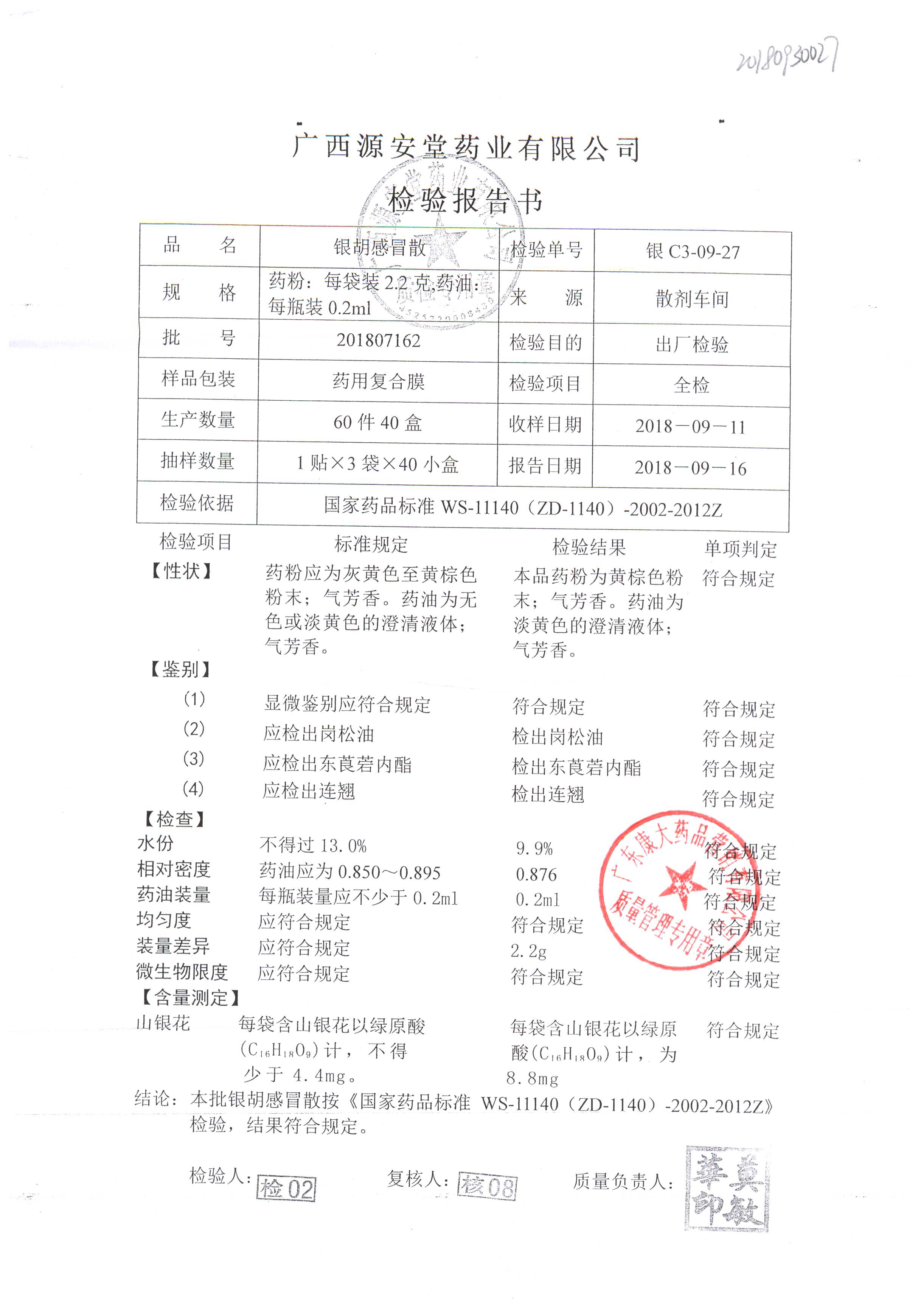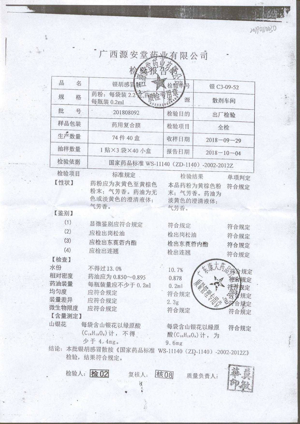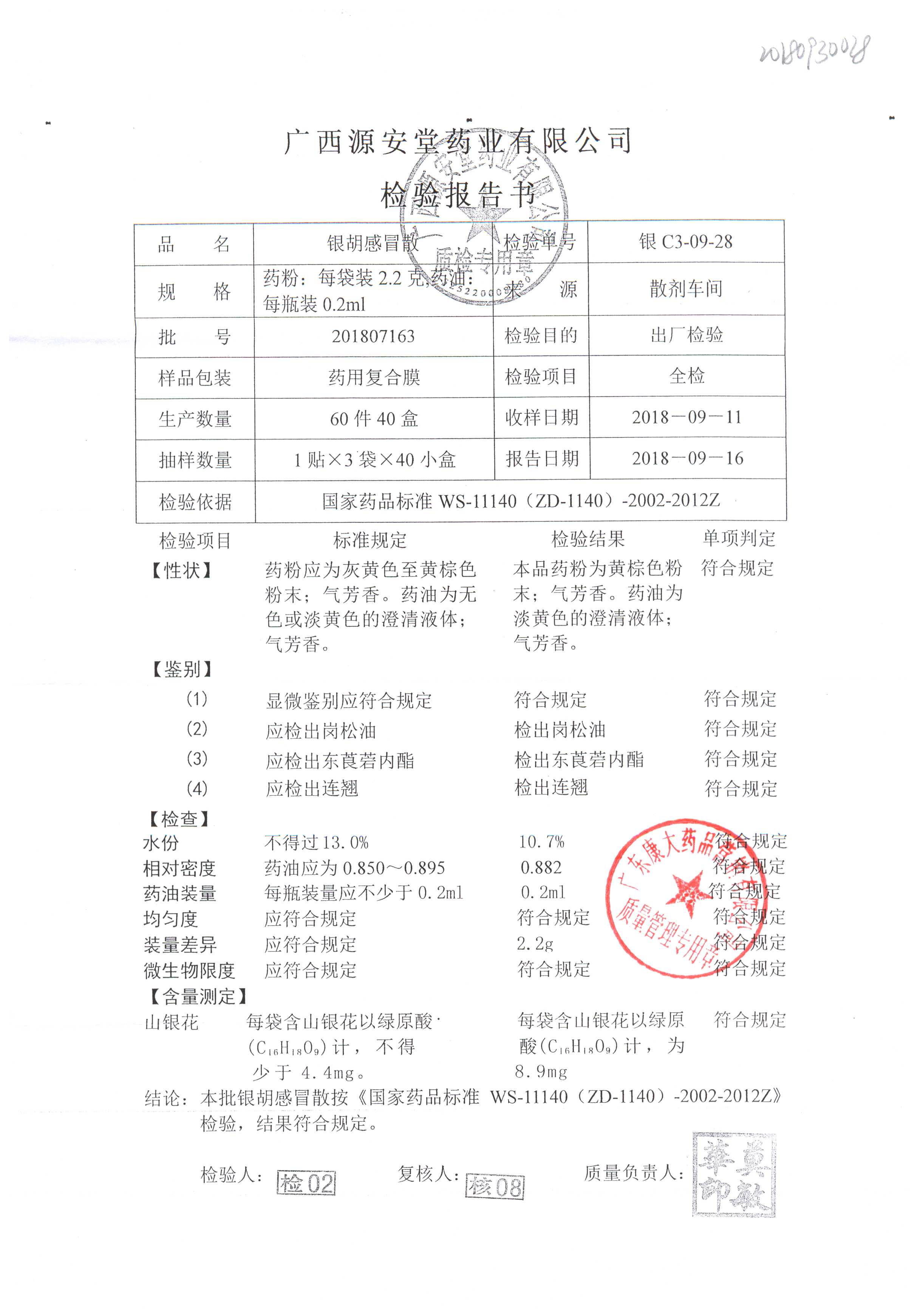 | 銀胡感冒散 | 3袋 | 201808092 | 查看詳情 |