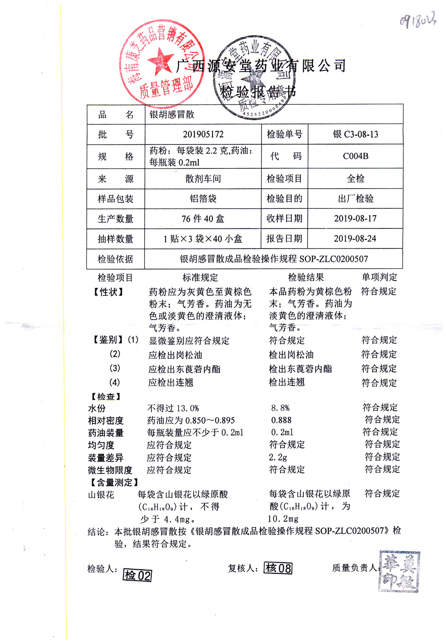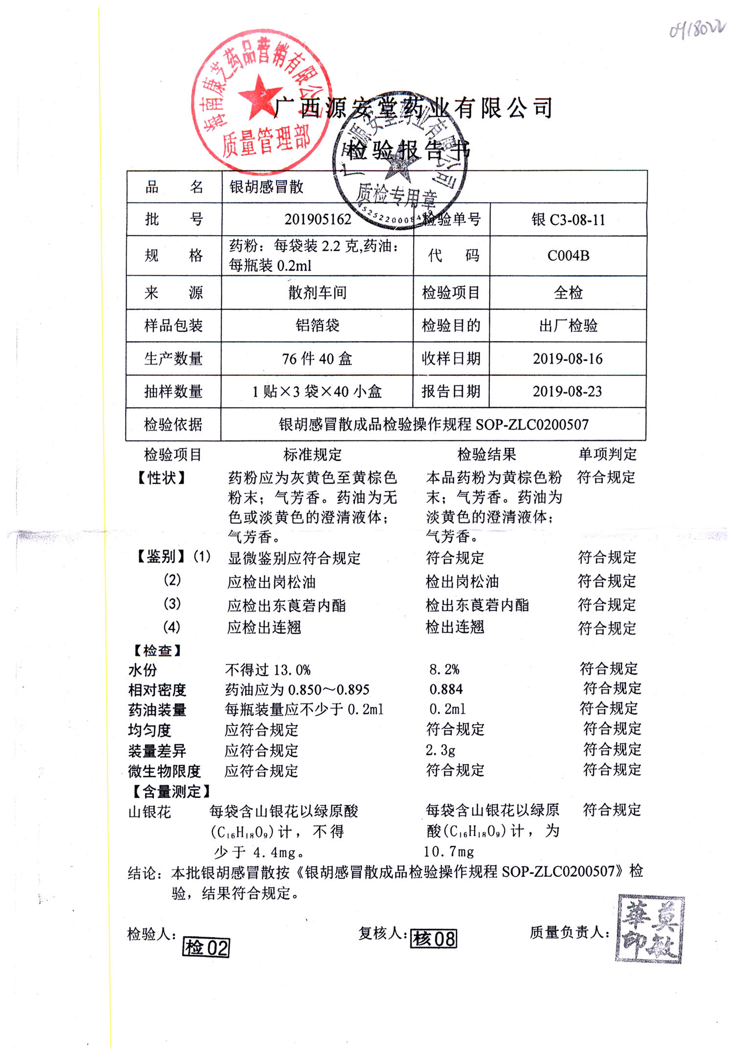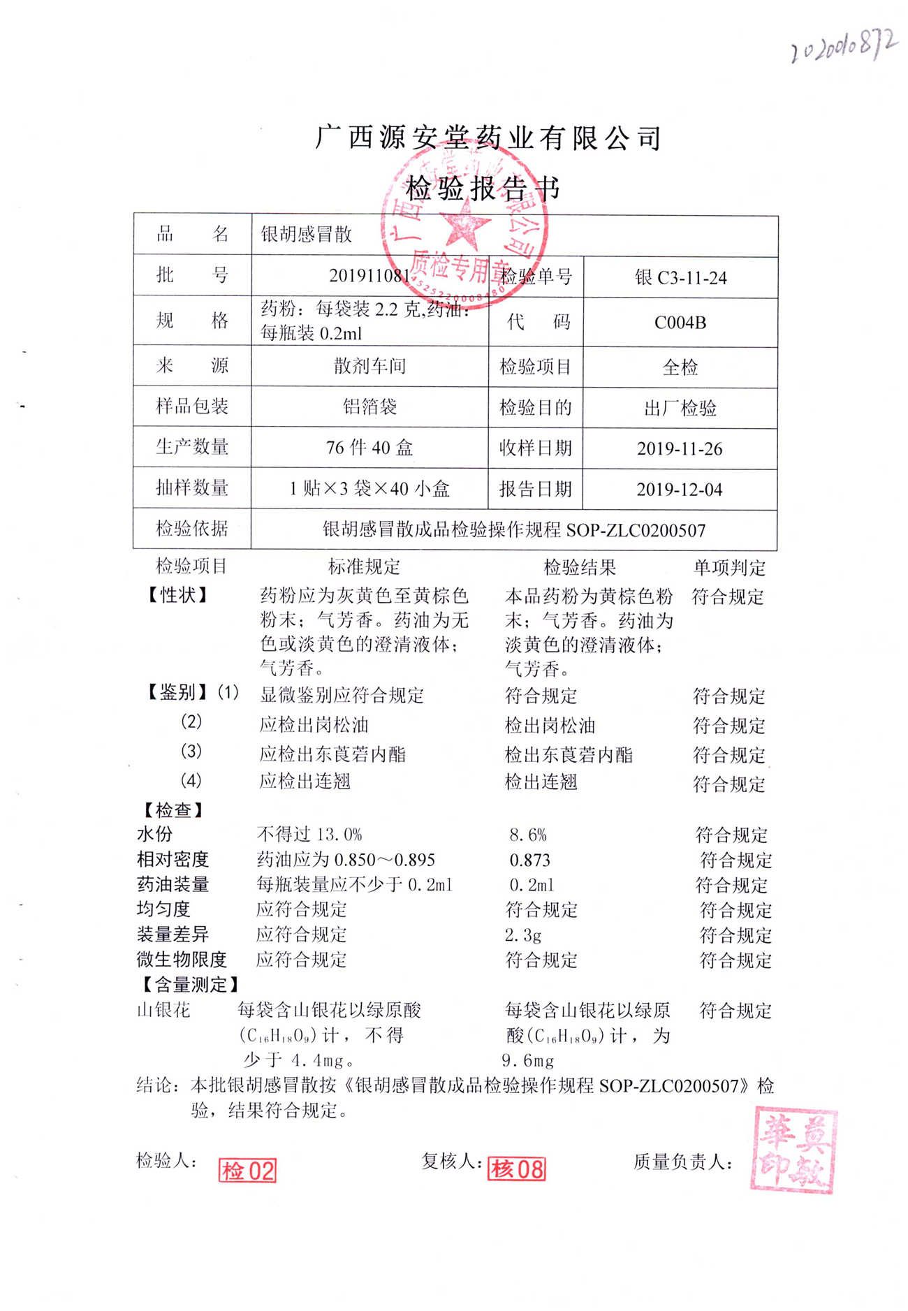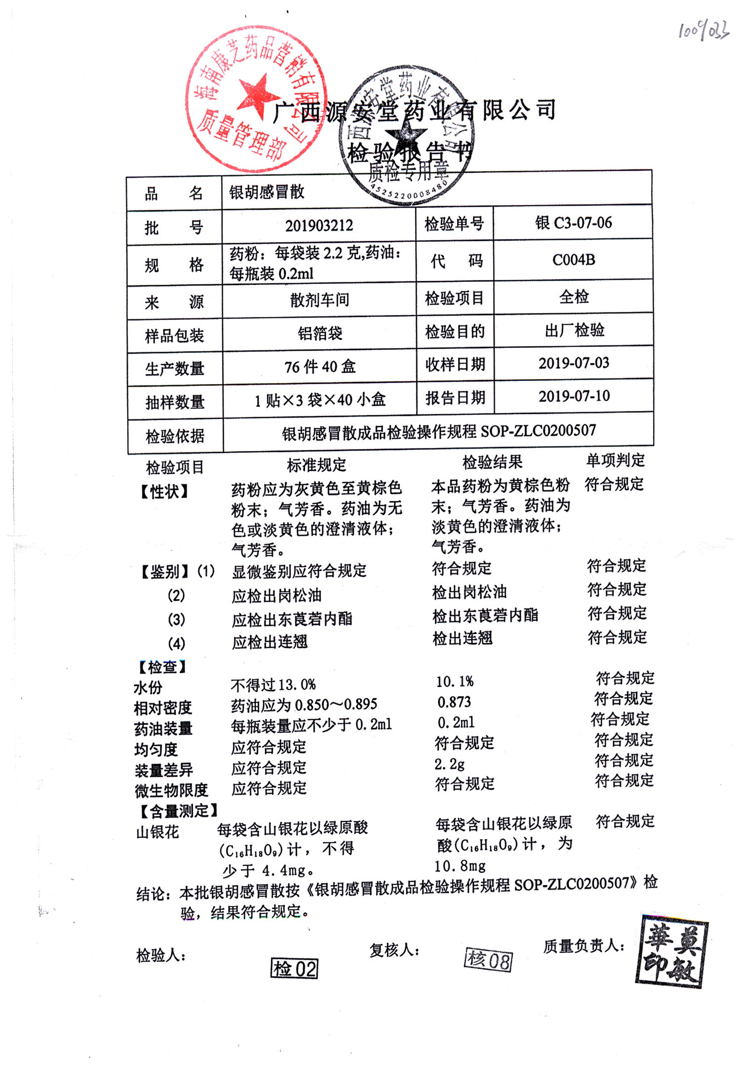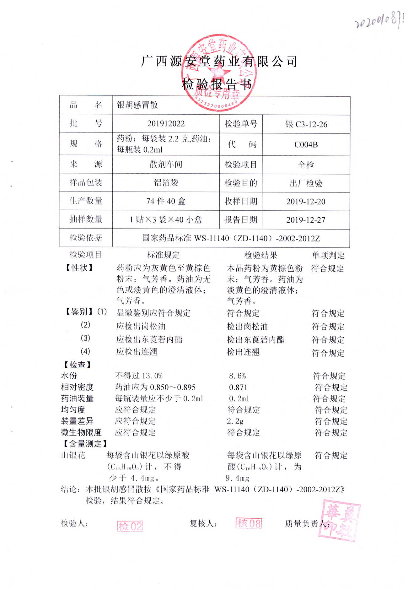 | 銀胡感冒散 | 3袋 | 201912022 | 查看詳情 |