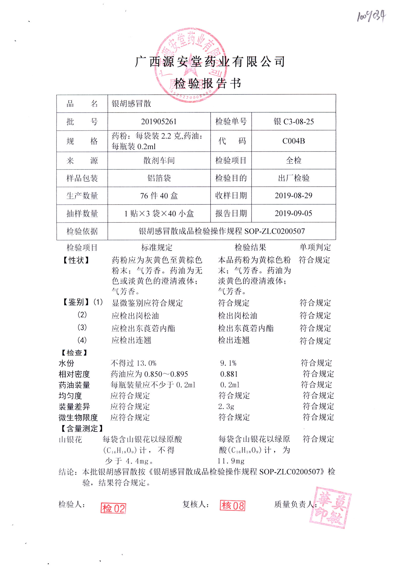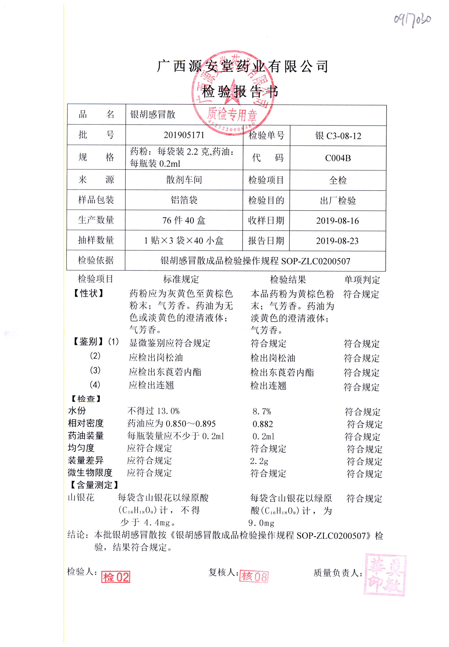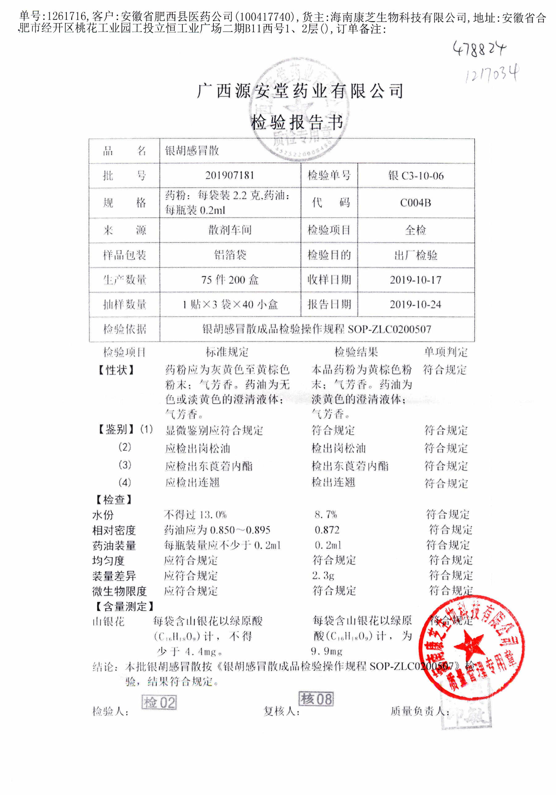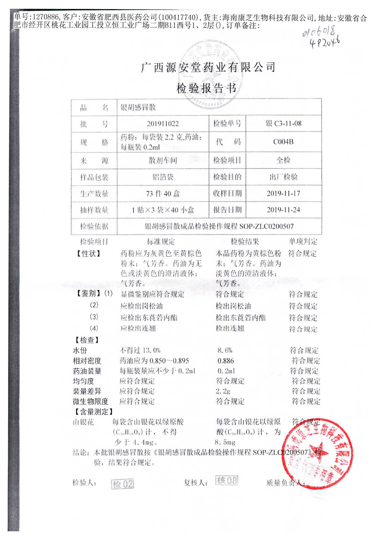 | 銀胡感冒散 | 3袋 | 201912022 | 查看詳情 |