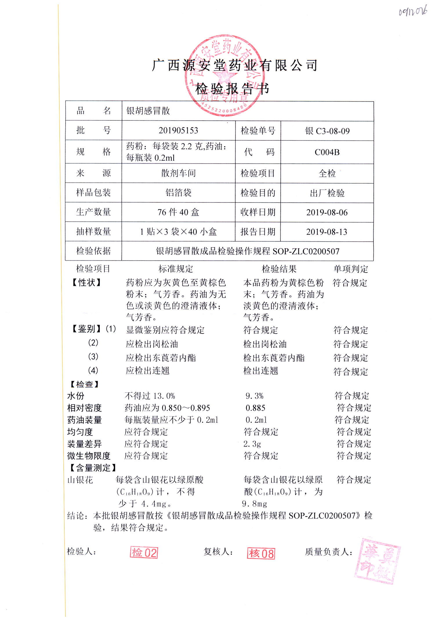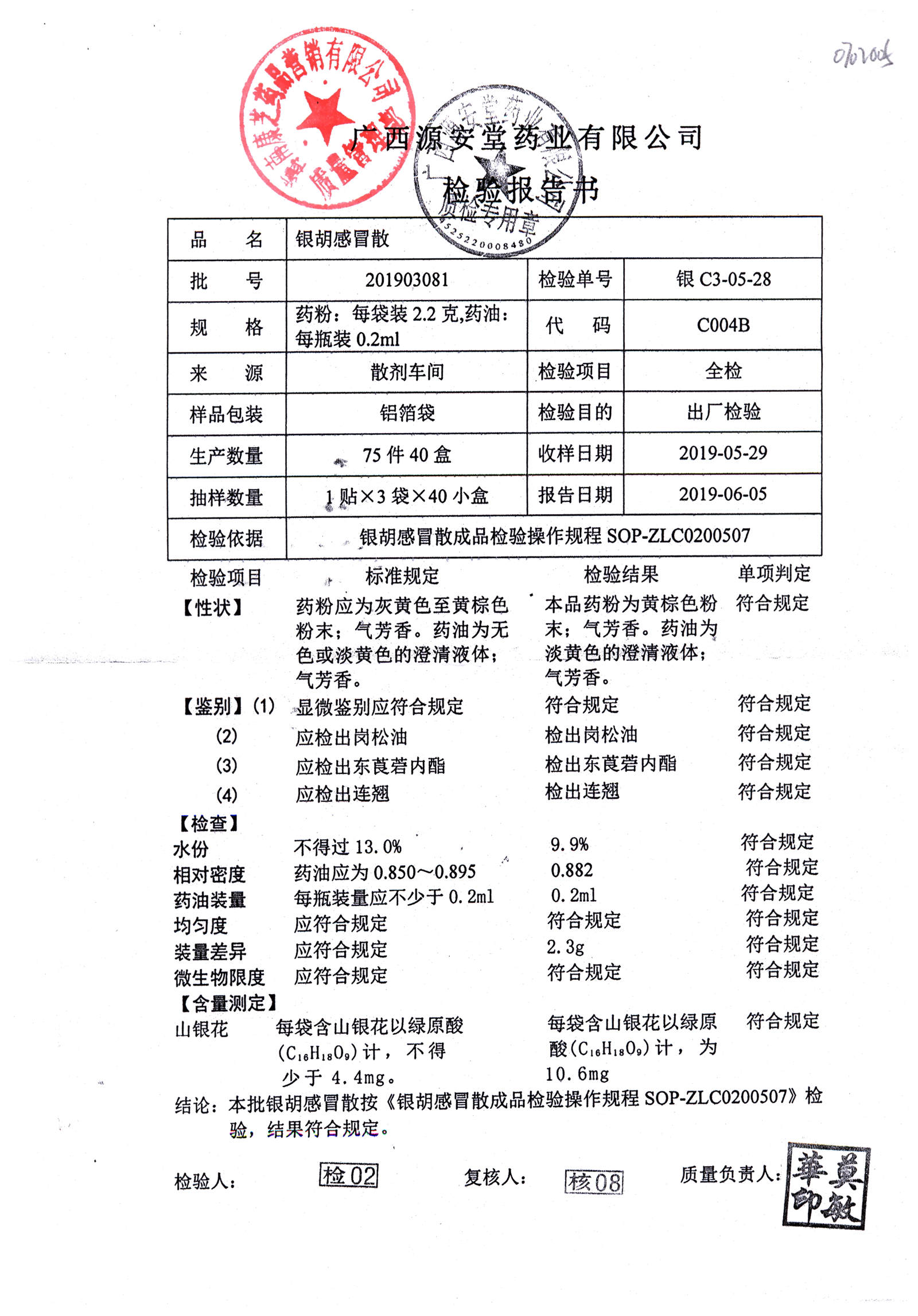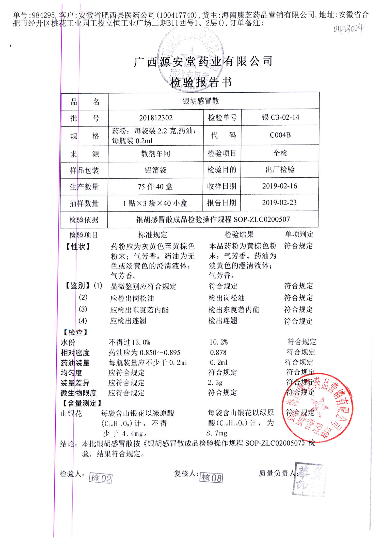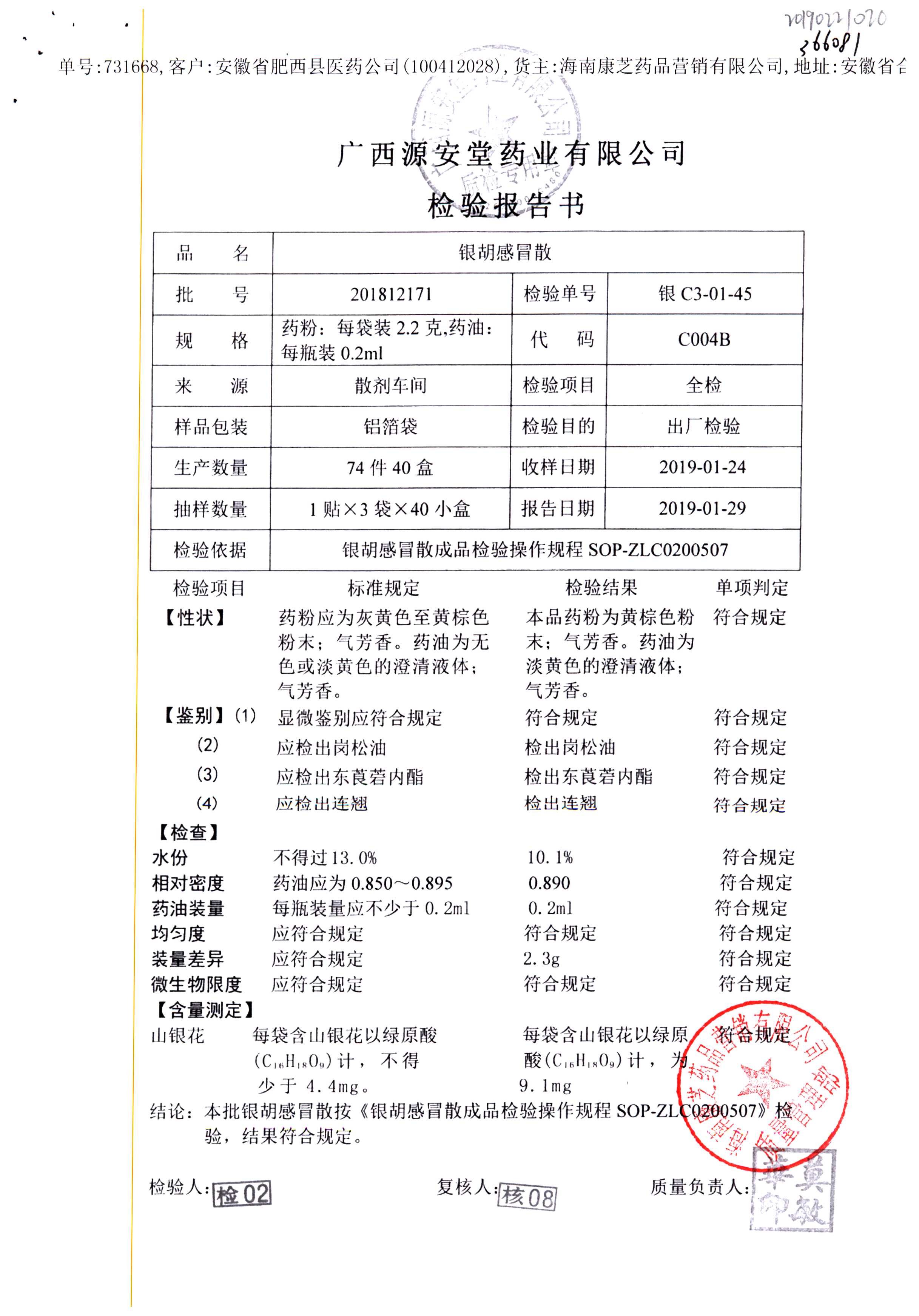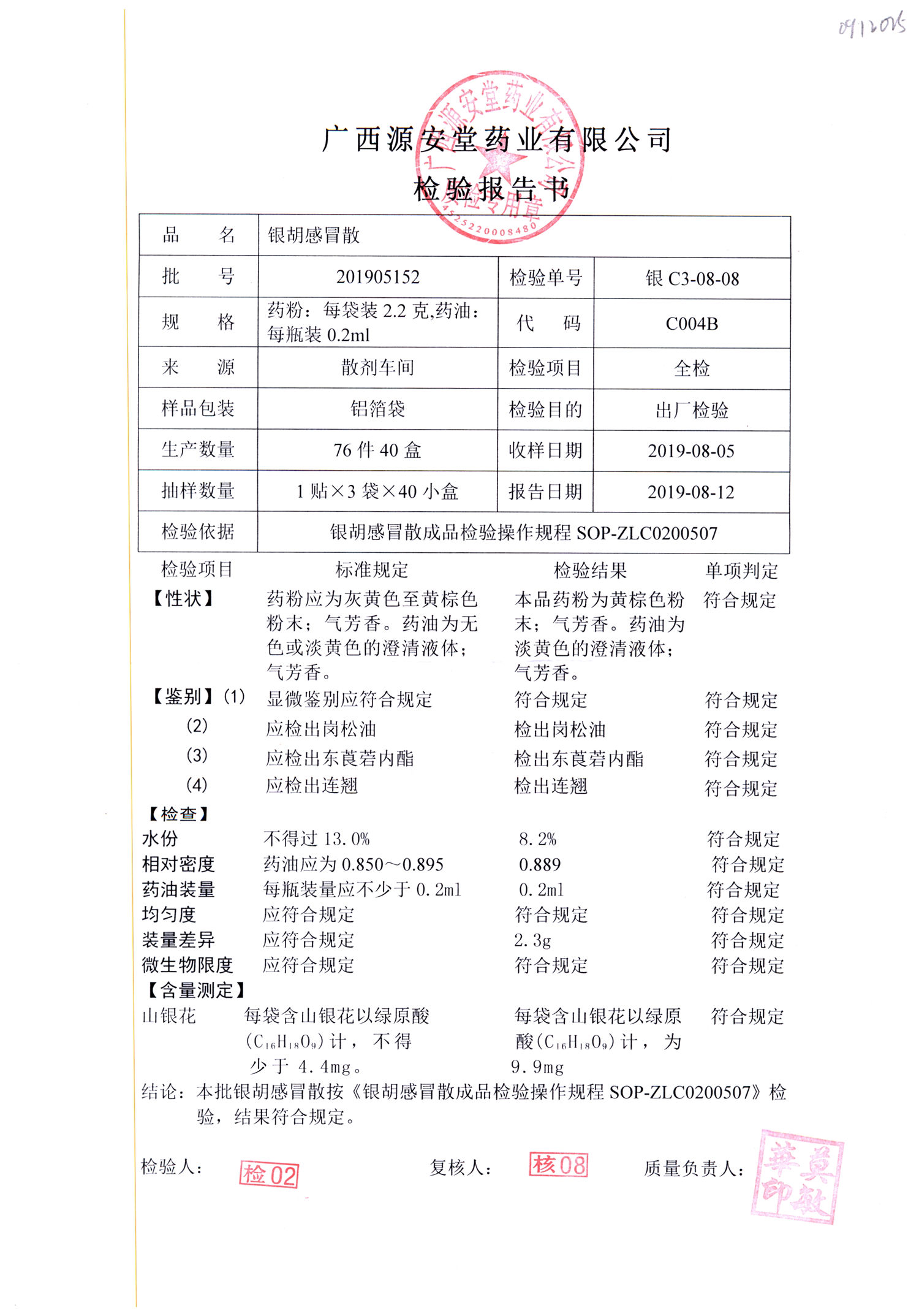 | 銀胡感冒散 | 3袋 | 201912022 | 查看詳情 |
