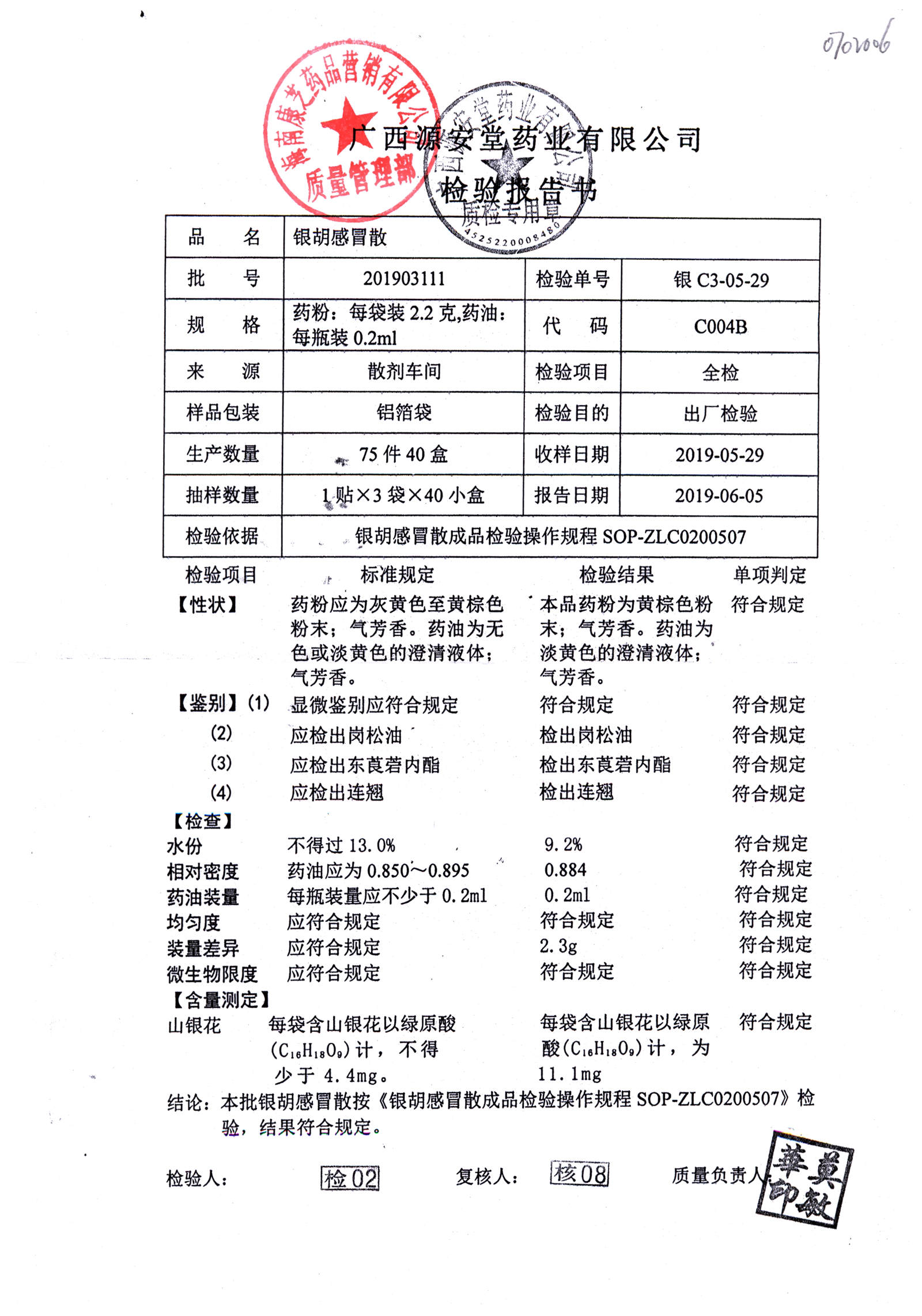 | 名稱 | 規(guī)格 | 批號(hào) | 藥檢報(bào)告 |