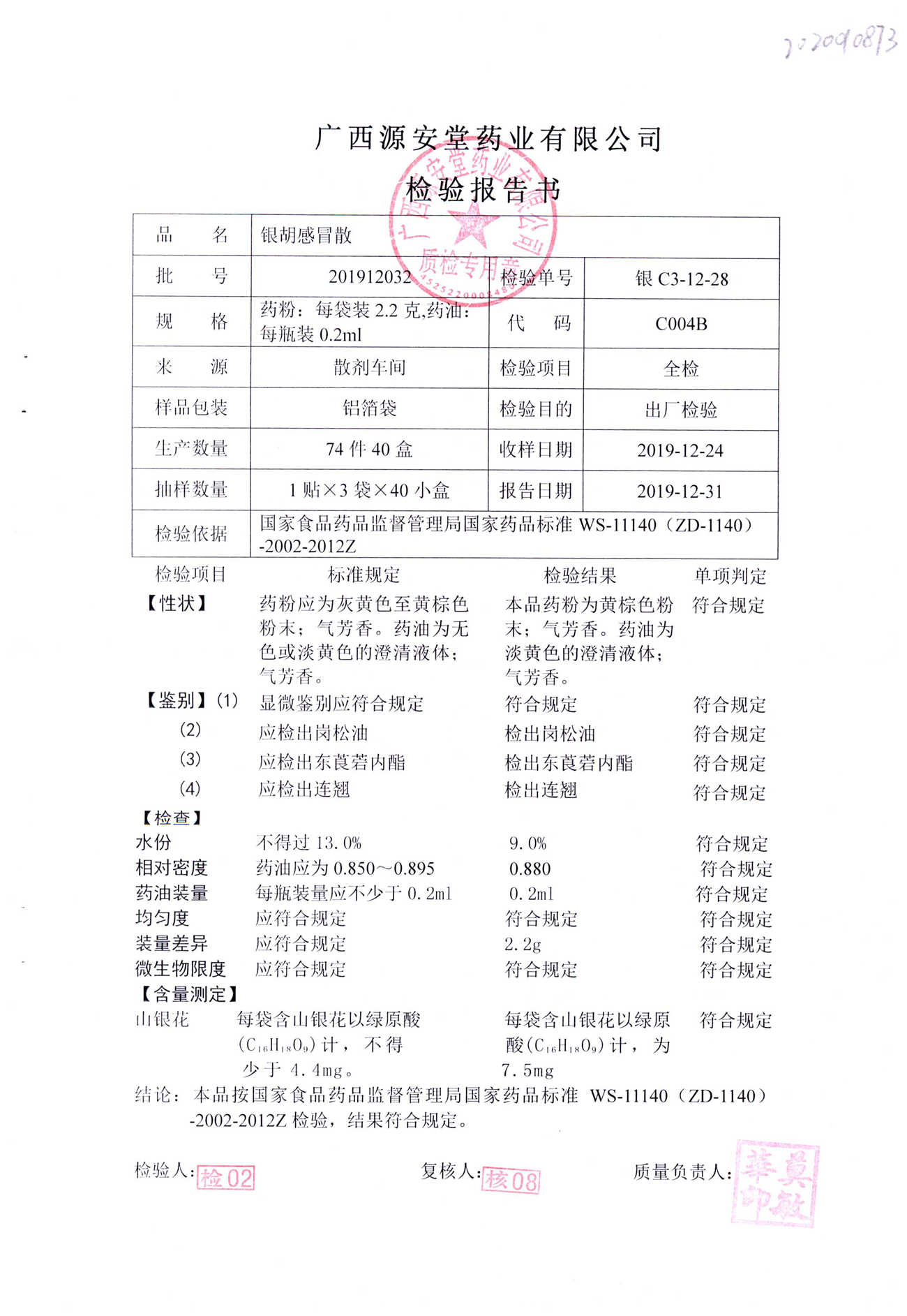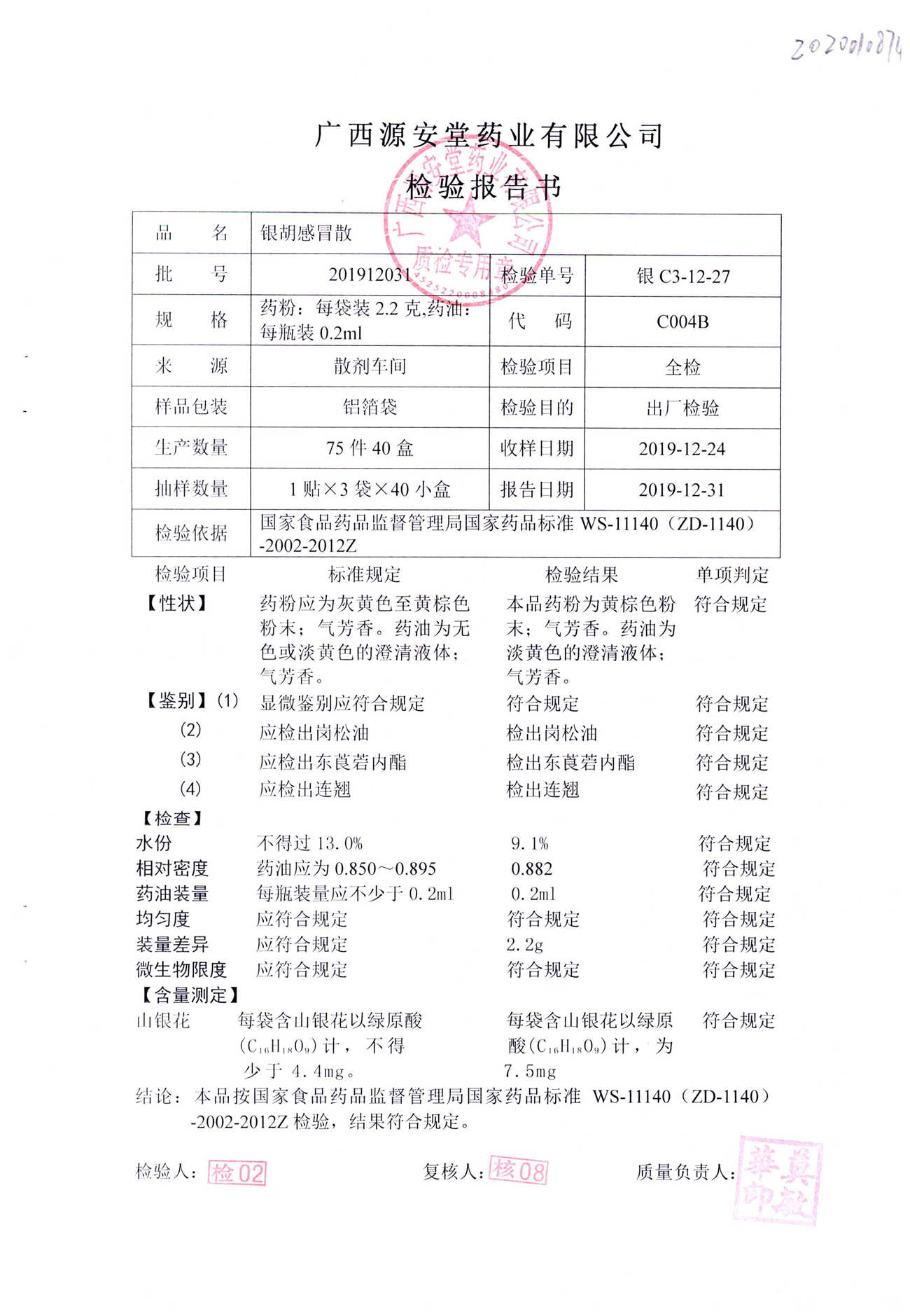 | 銀胡感冒散 | 3袋 | 201912021 | 查看詳情 |