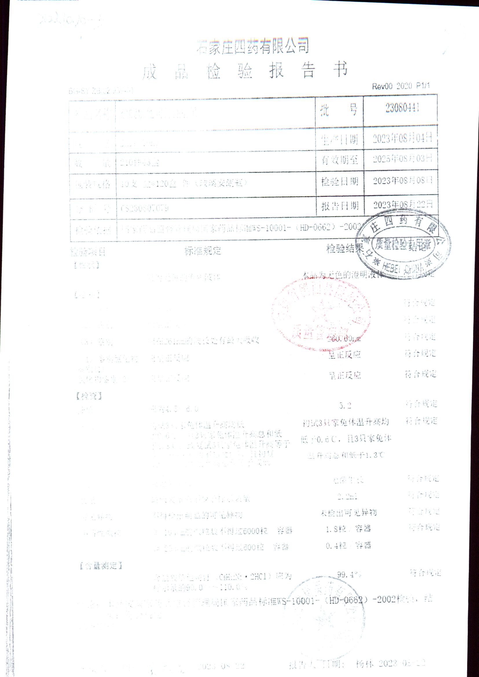 | 名稱 | 規(guī)格 | 批號(hào) | 藥檢報(bào)告 |