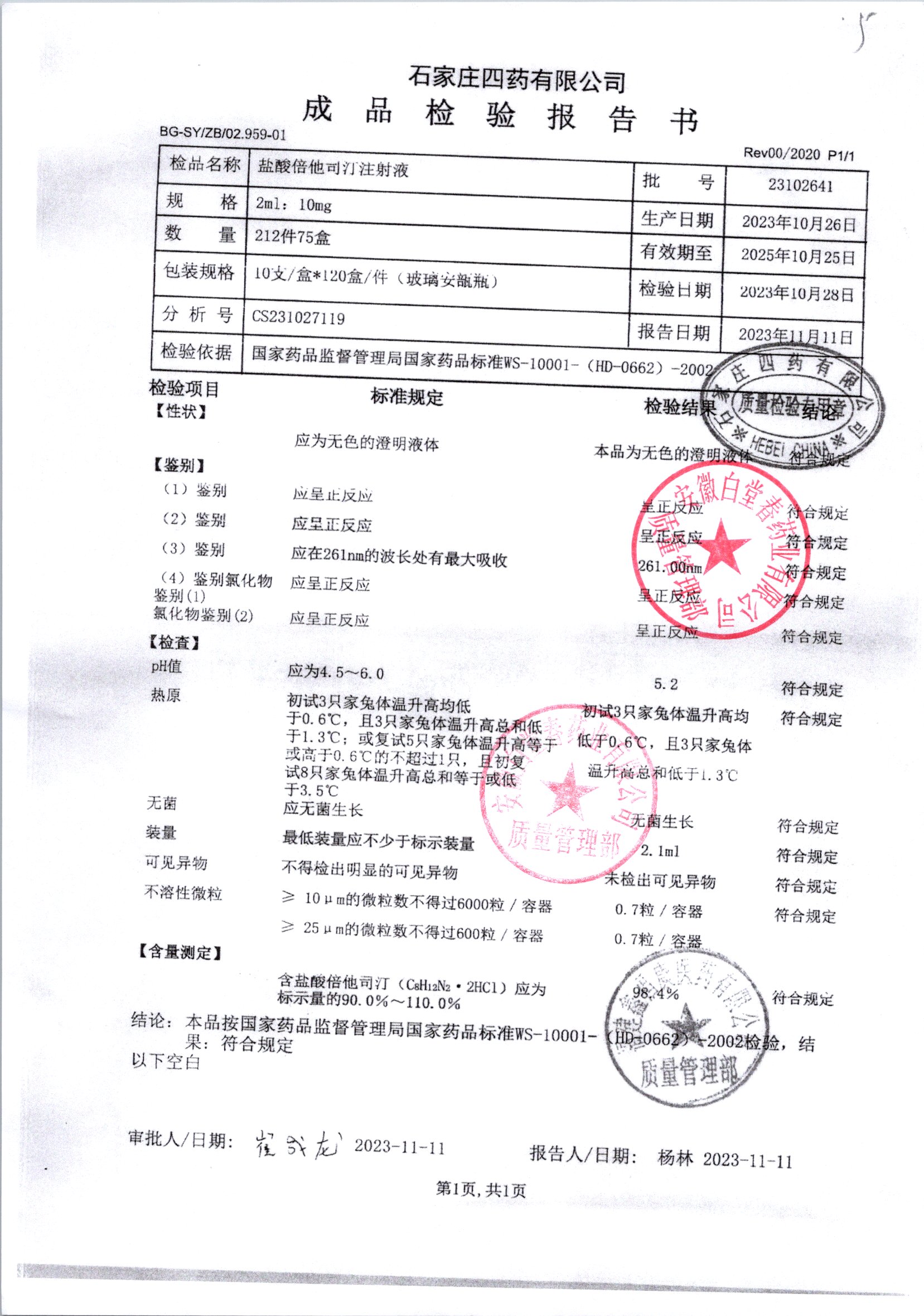 | 鹽酸倍他司汀注射液 | 2ml:10mg | 23073041 | 查看詳情 |