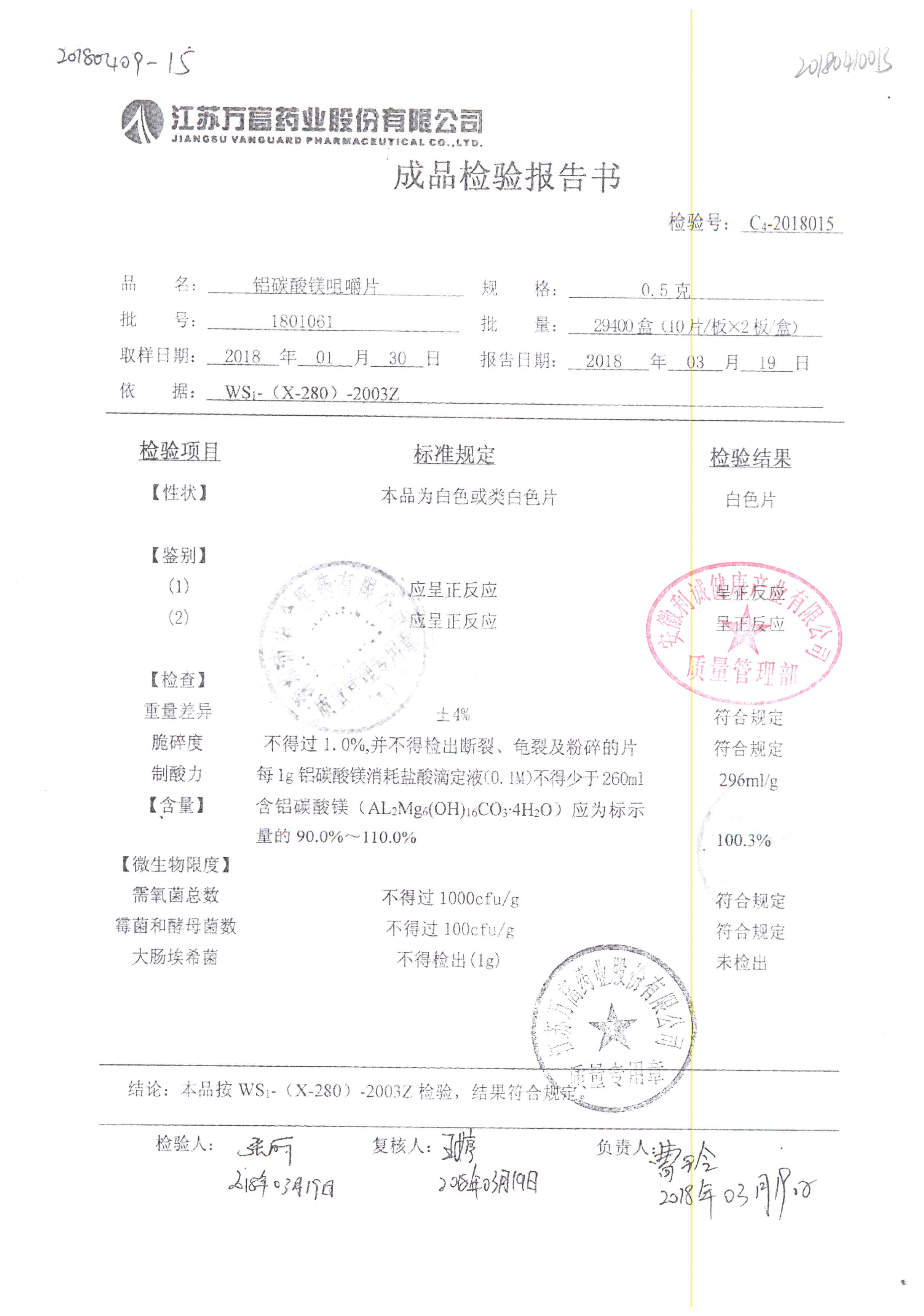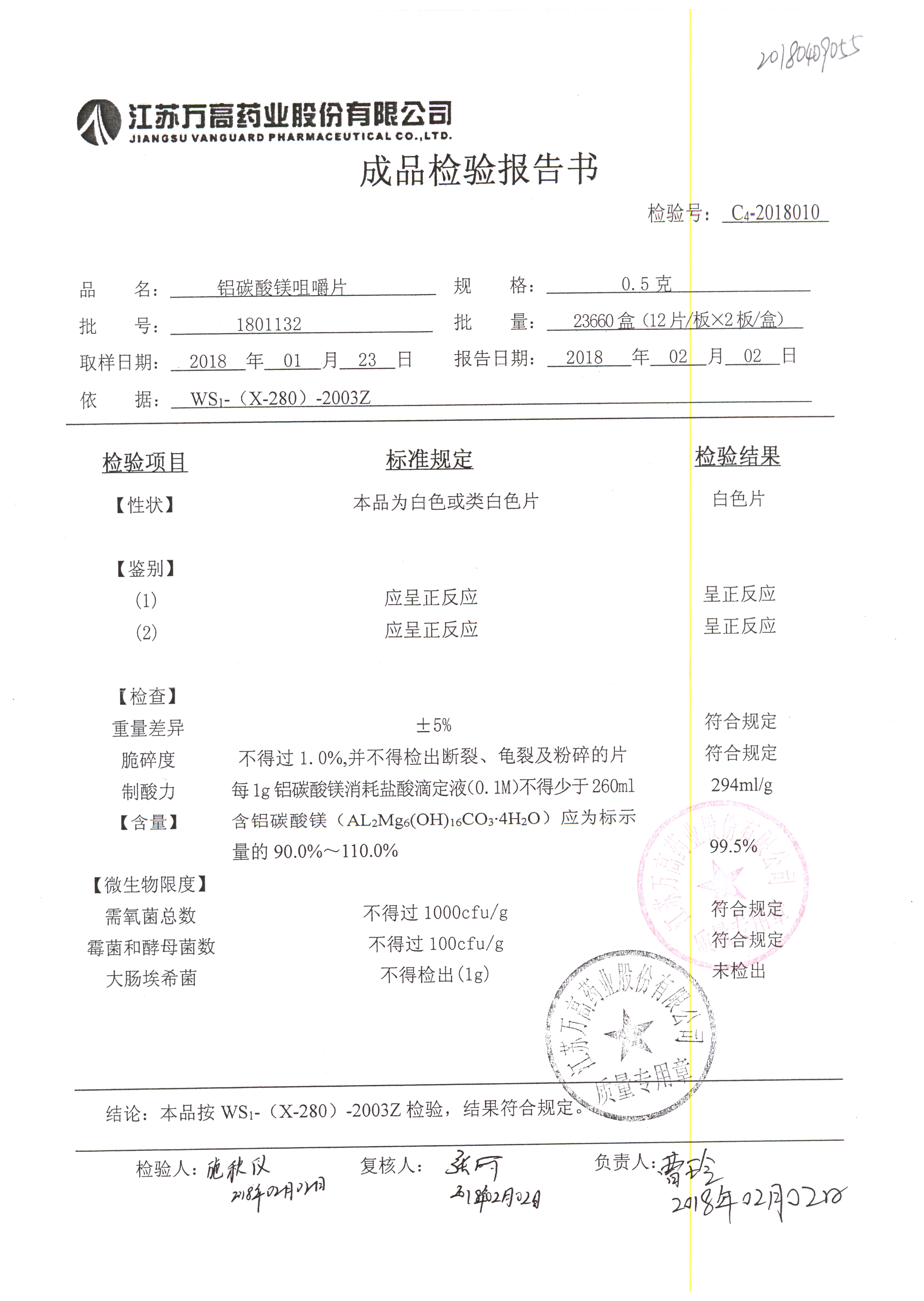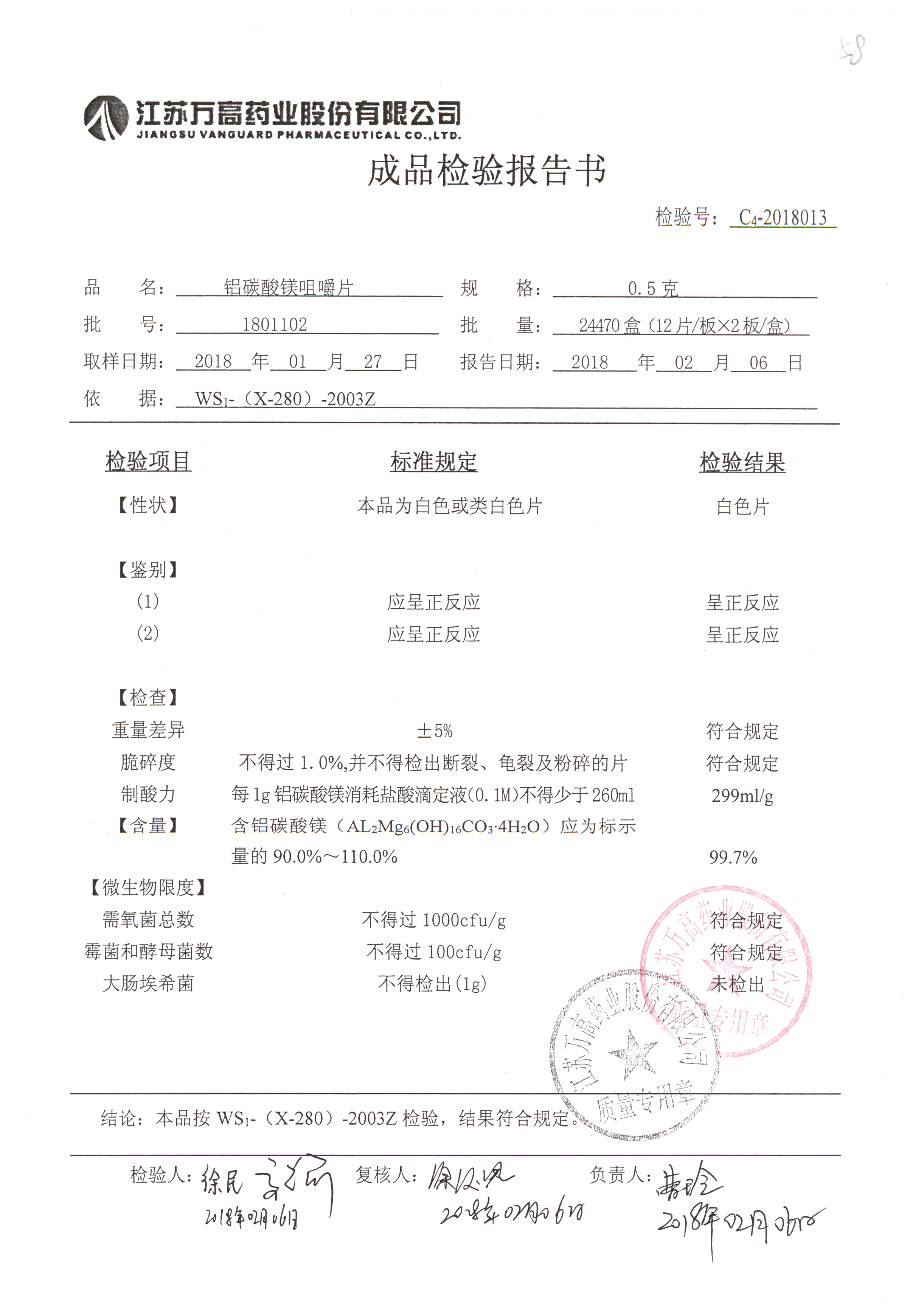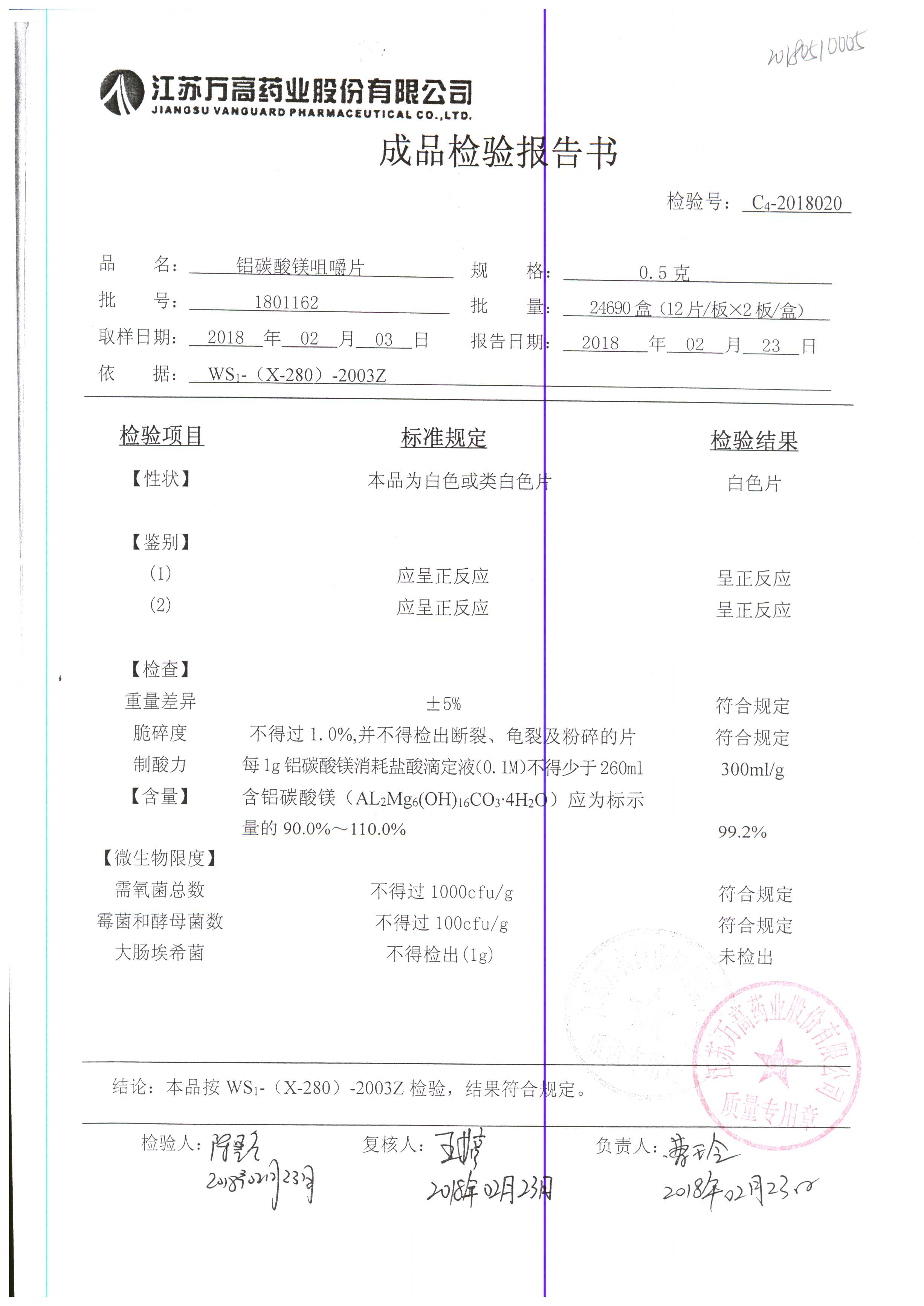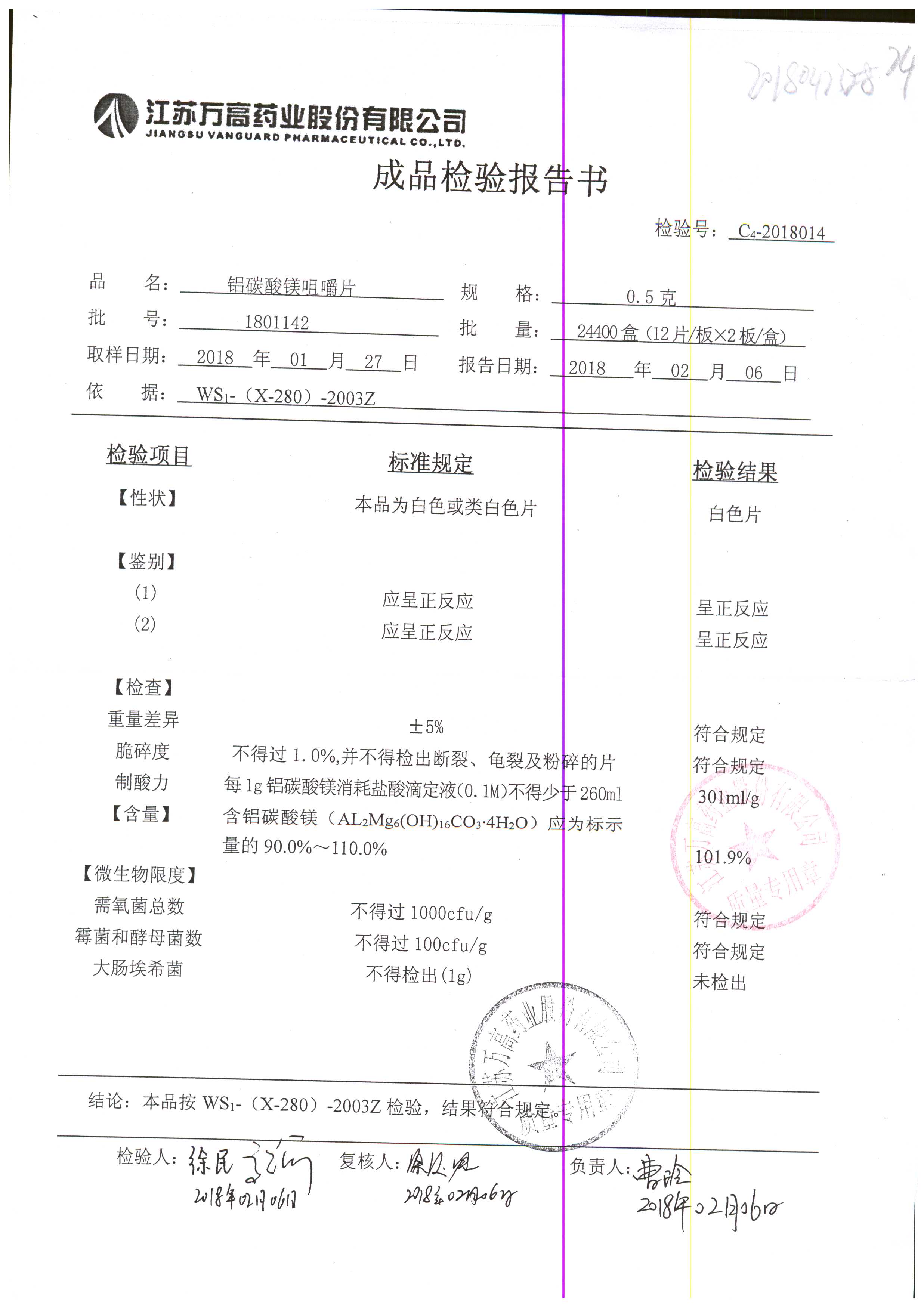 | 鋁碳酸鎂咀嚼片 | 0.5g*24片 | 1801102 | 查看詳情 |