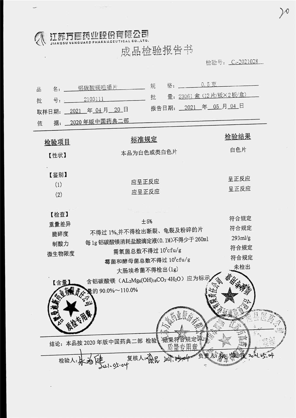 | 鋁碳酸鎂咀嚼片 | 0.5g*24片 | 2208073 | 查看詳情 |