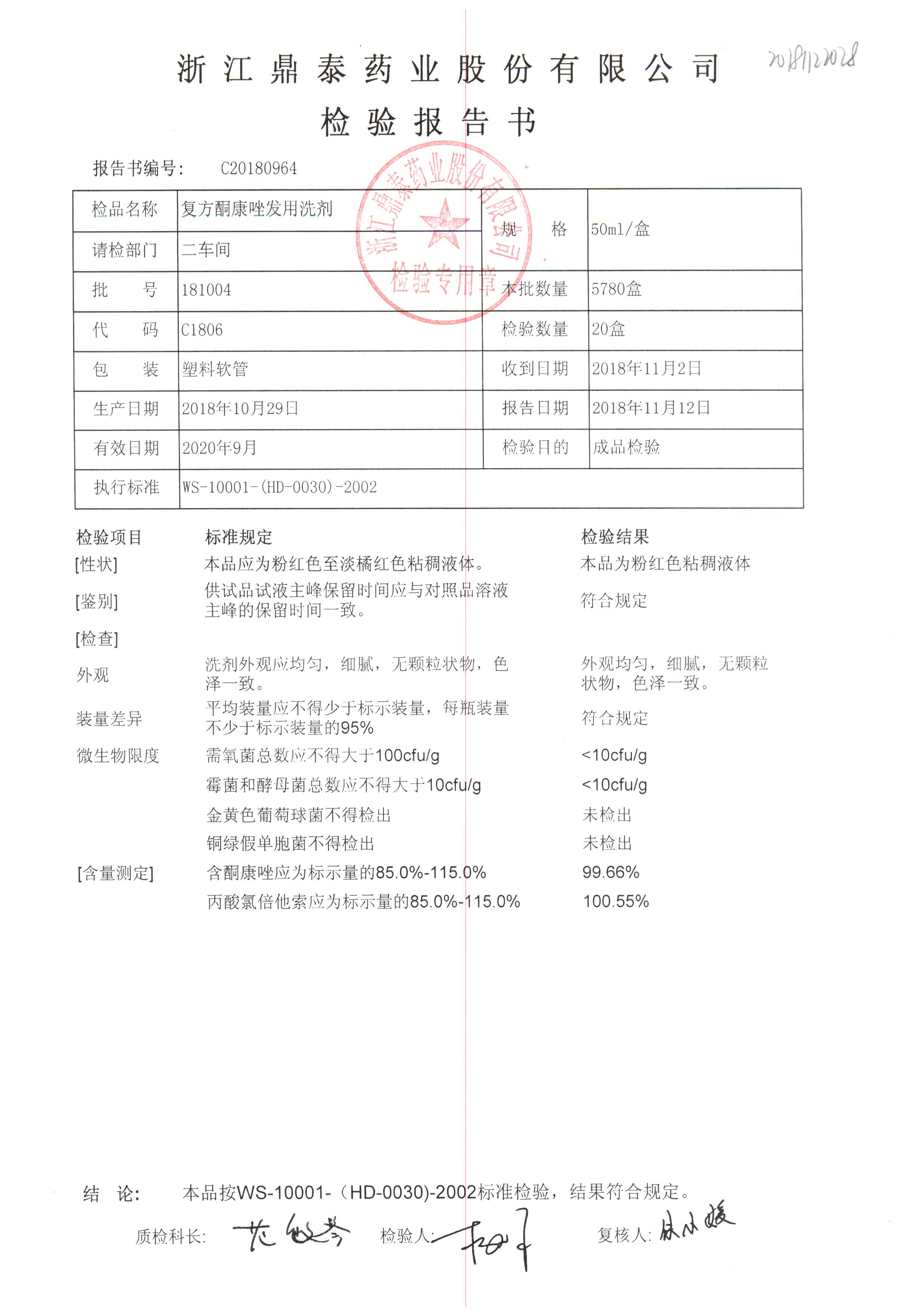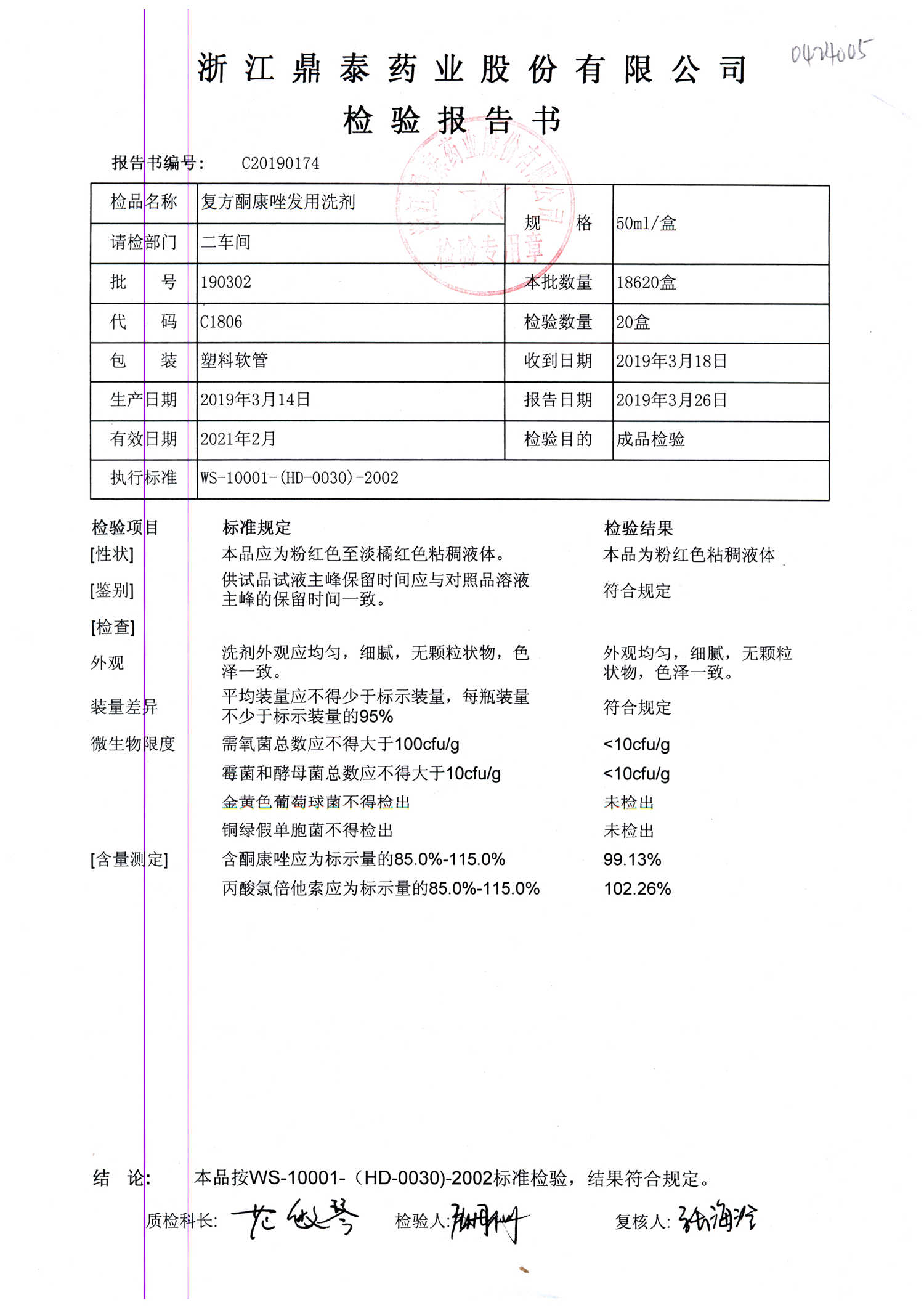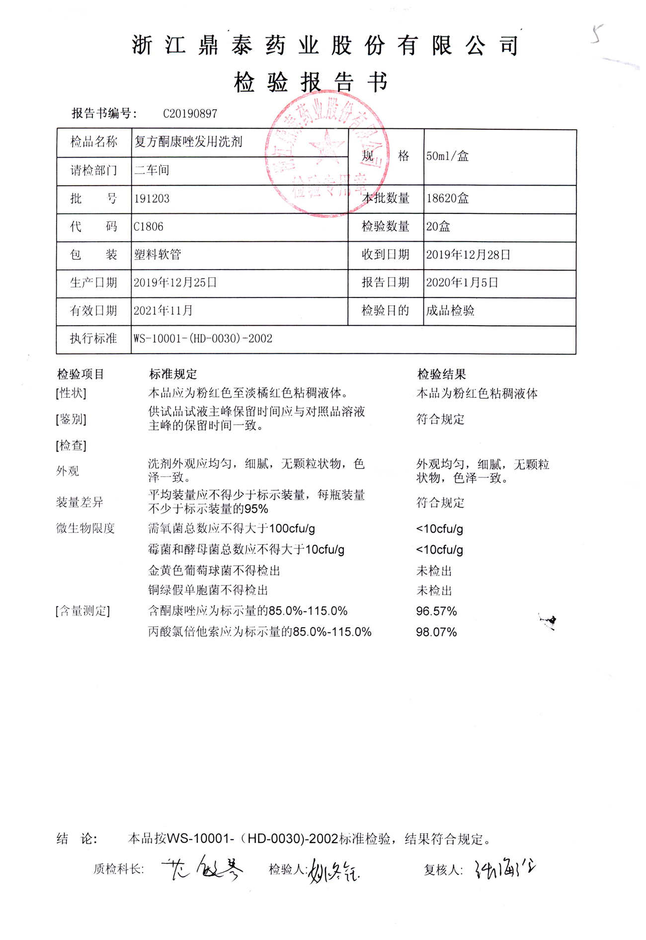| 復(fù)方酮康唑發(fā)用洗劑 | 50ml | 191203 | 查看詳情 |