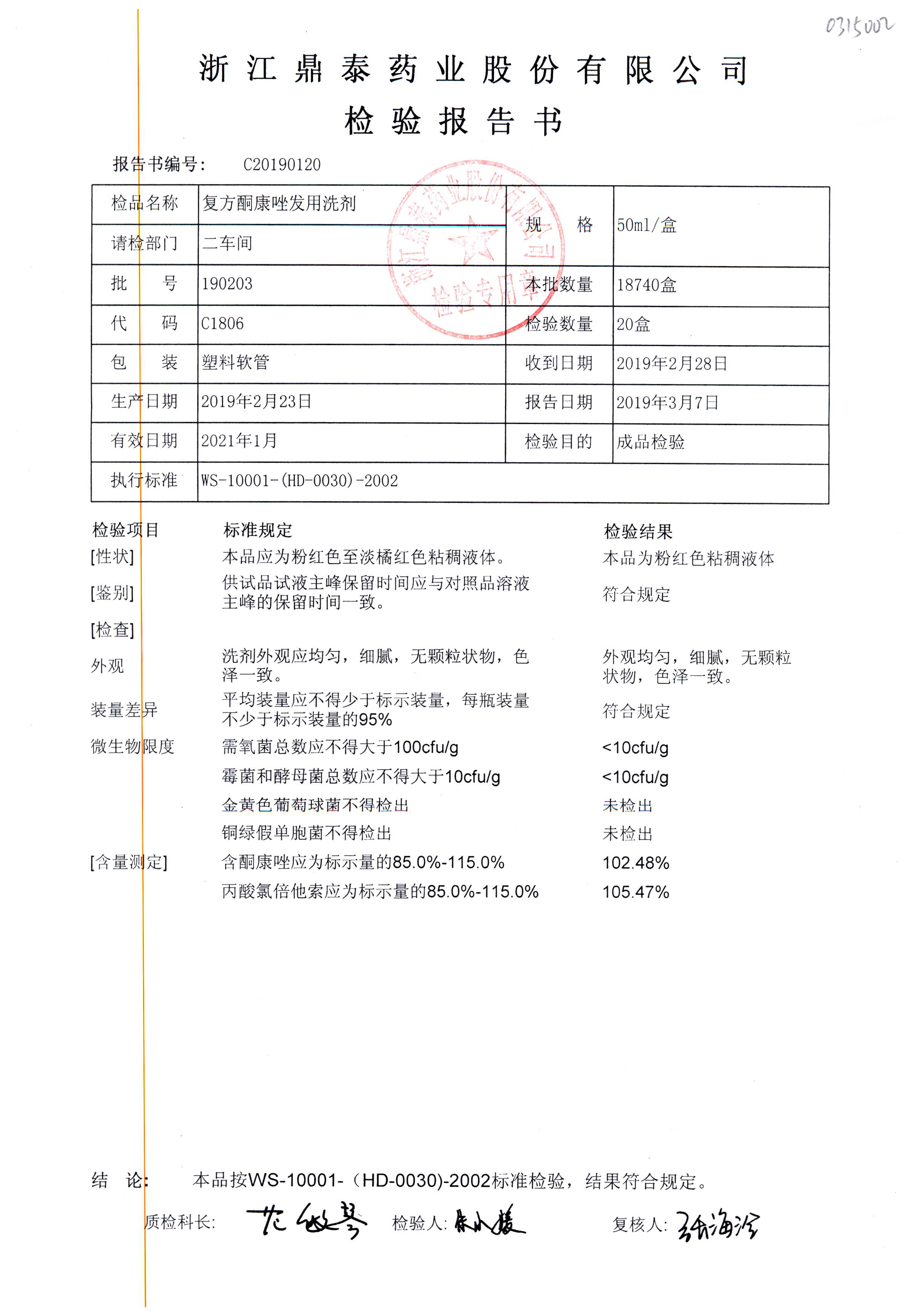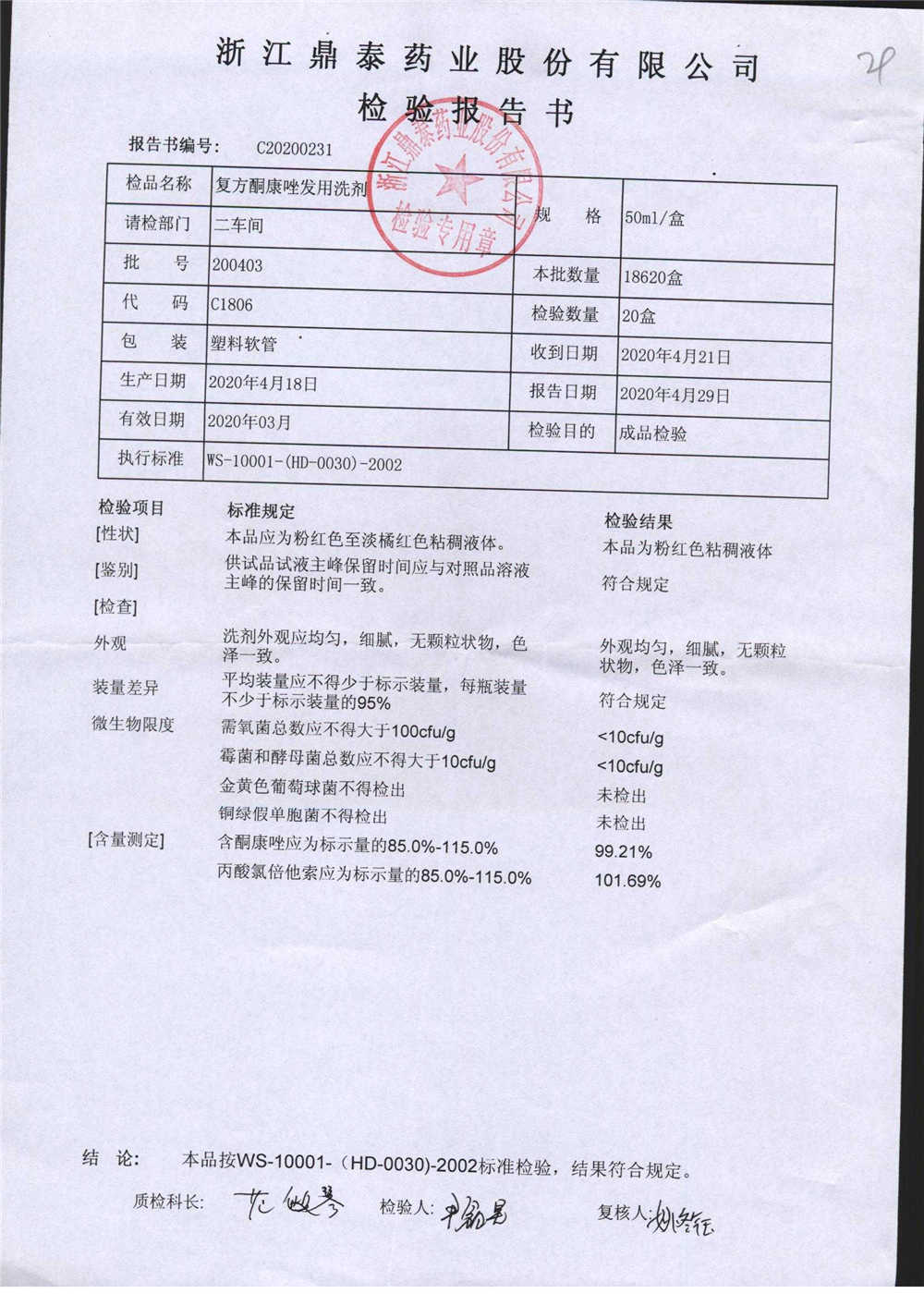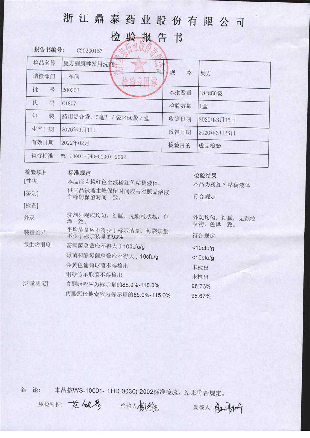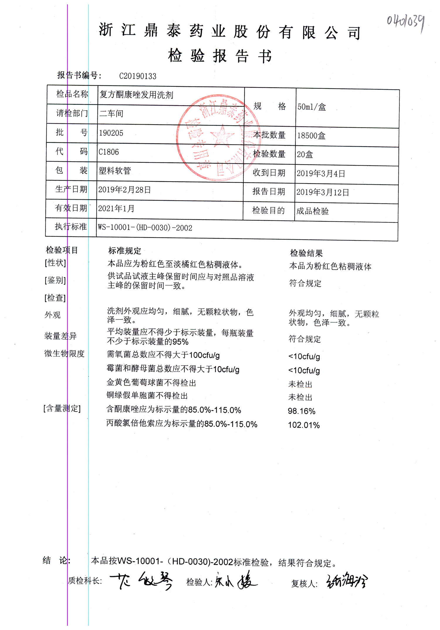 | 復(fù)方酮康唑發(fā)用洗劑 | 50ml | 191203 | 查看詳情 |