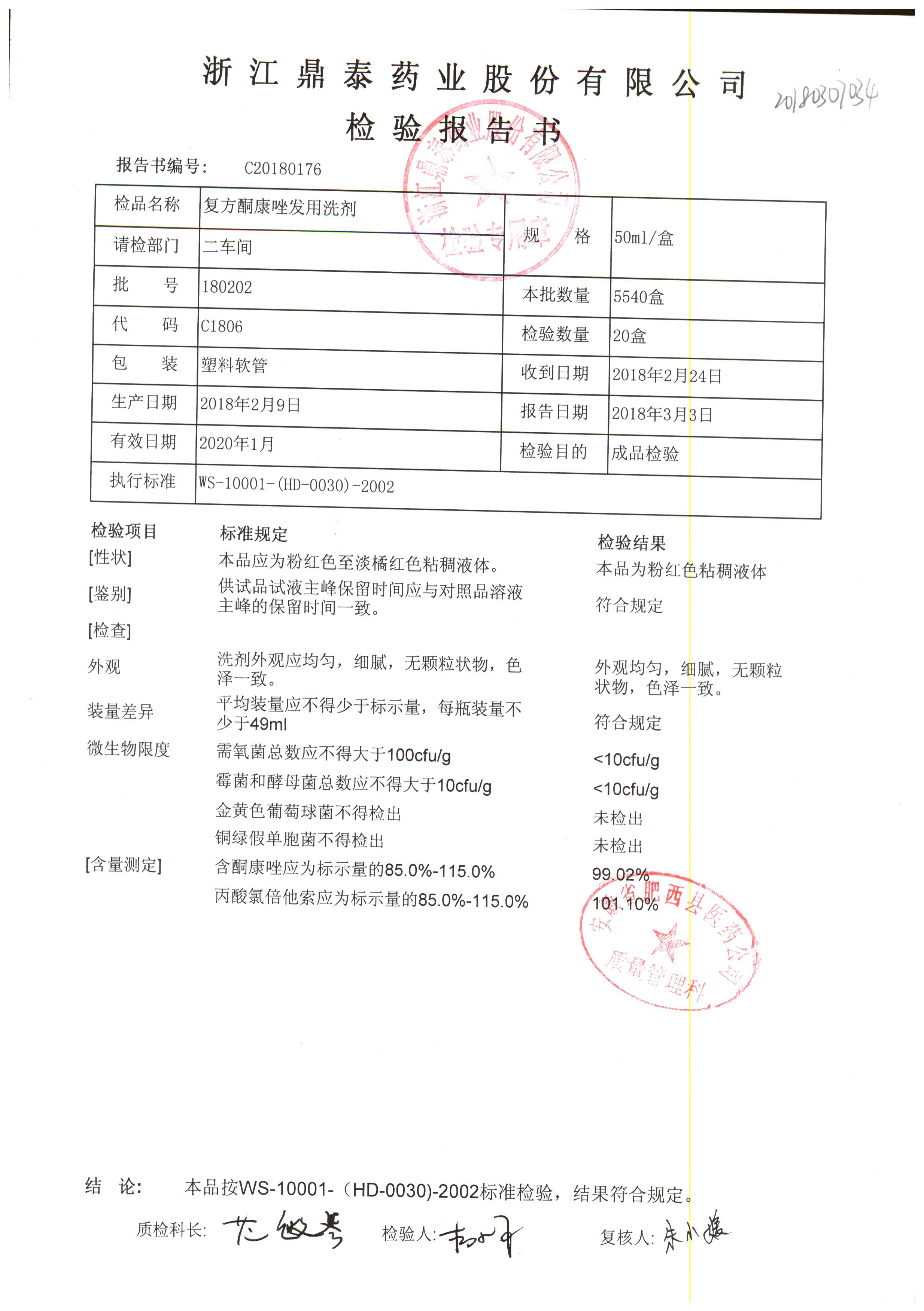 | 復(fù)方酮康唑發(fā)用洗劑 | 50ml | 180202 | 查看詳情 |