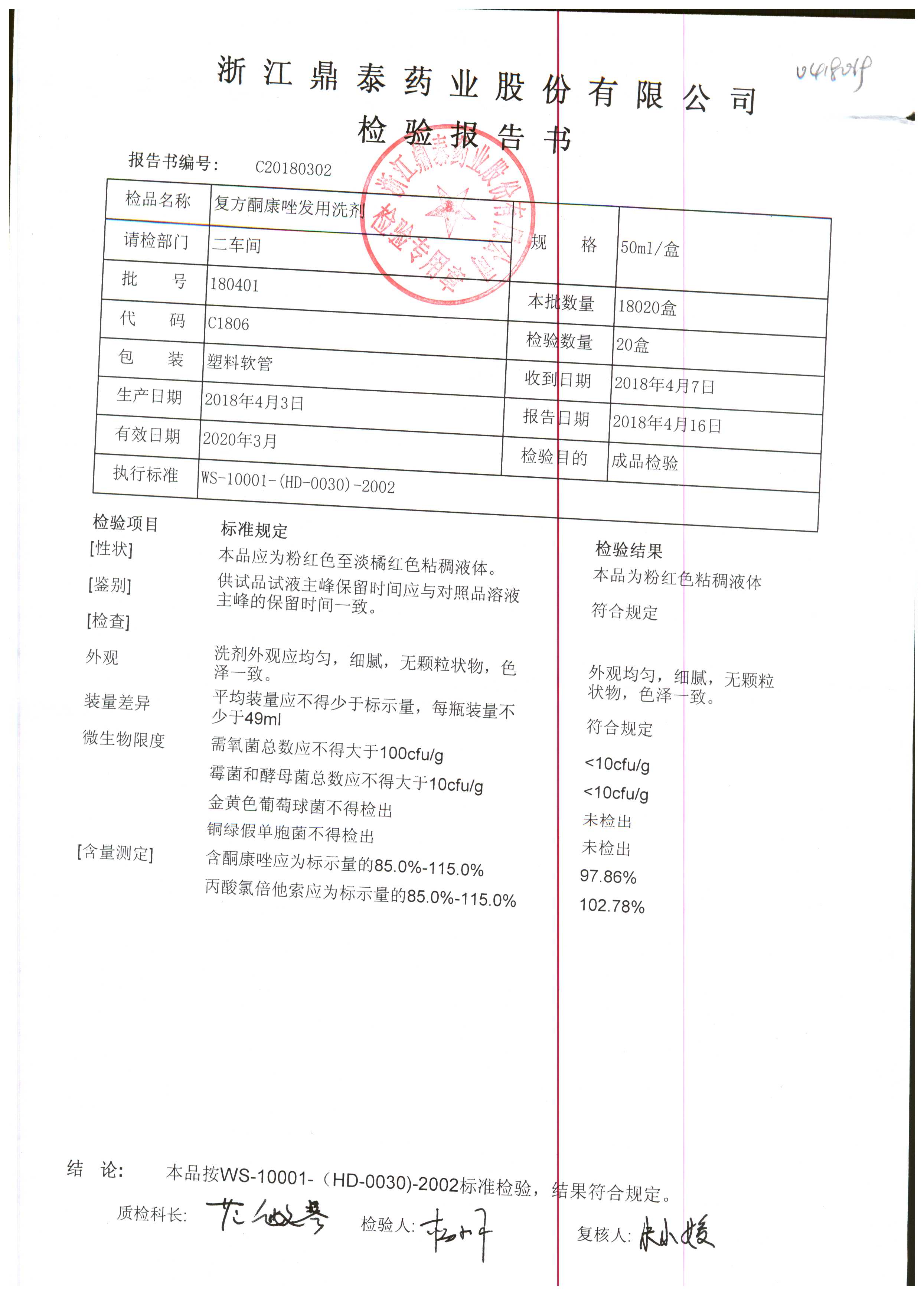 | 復(fù)方酮康唑發(fā)用洗劑 | 50ml | 180401 | 查看詳情 |
