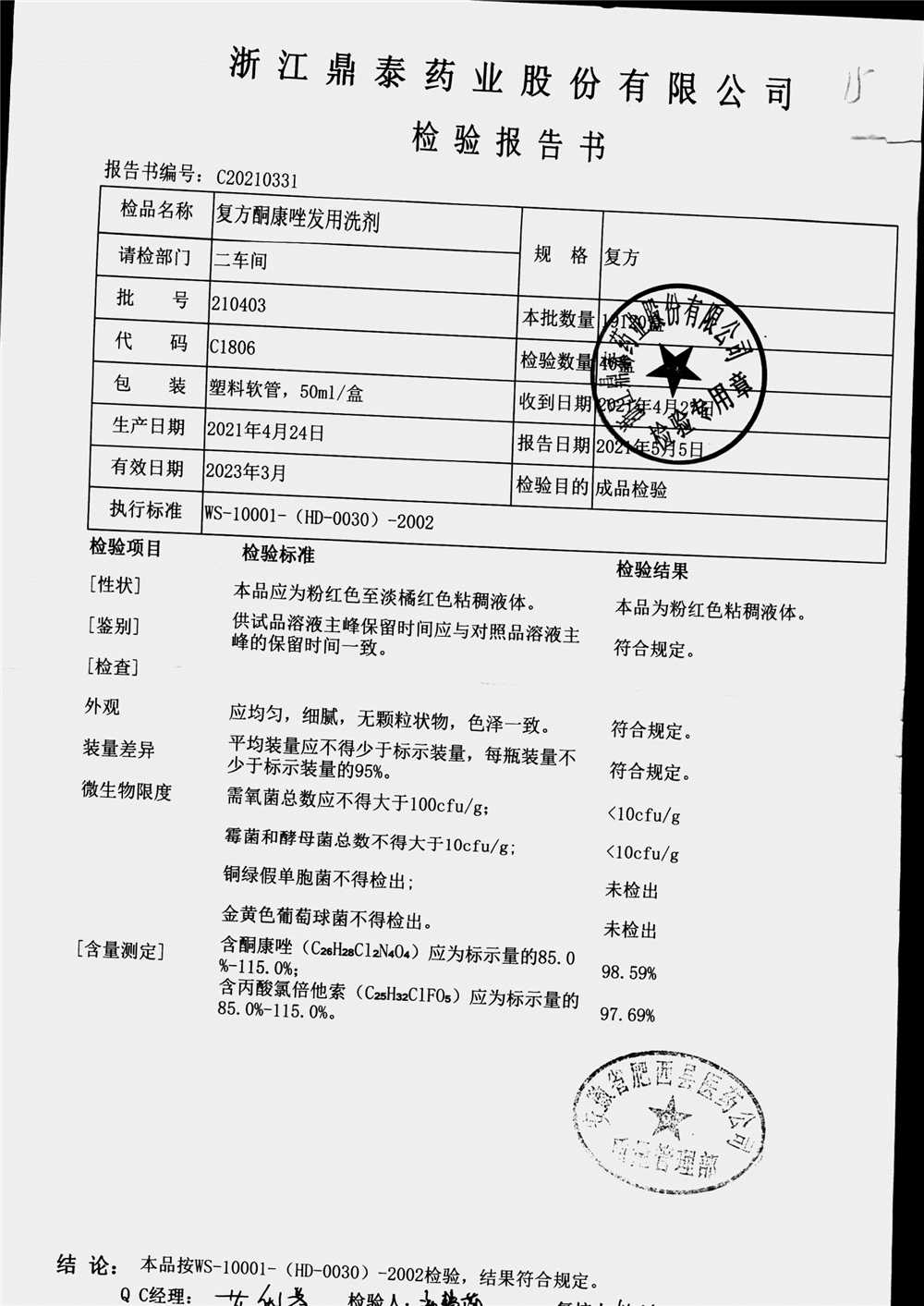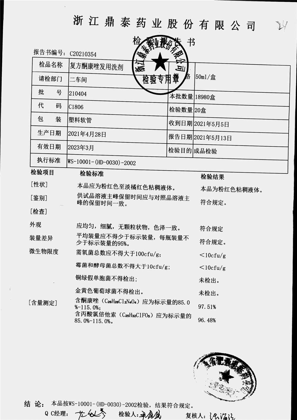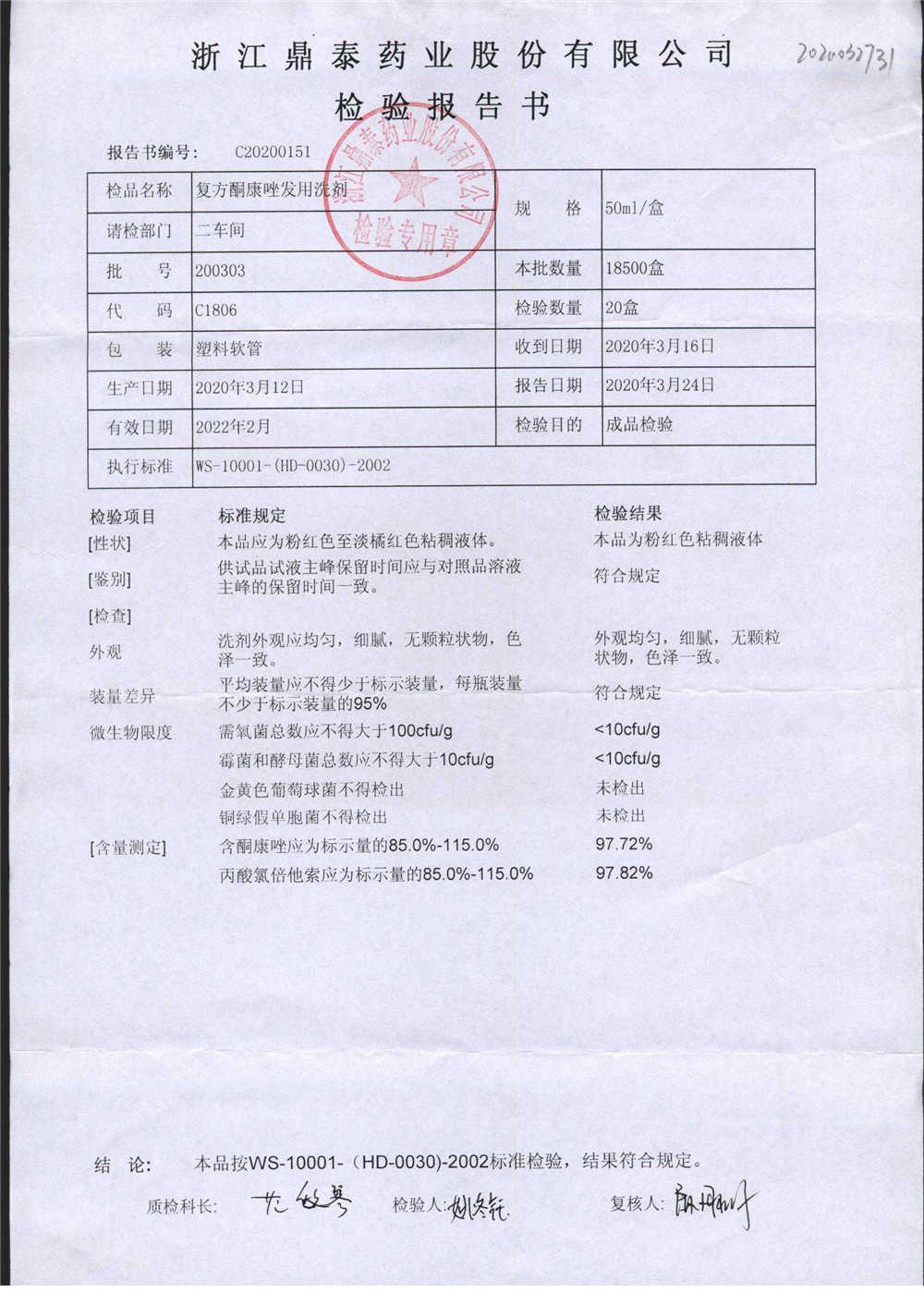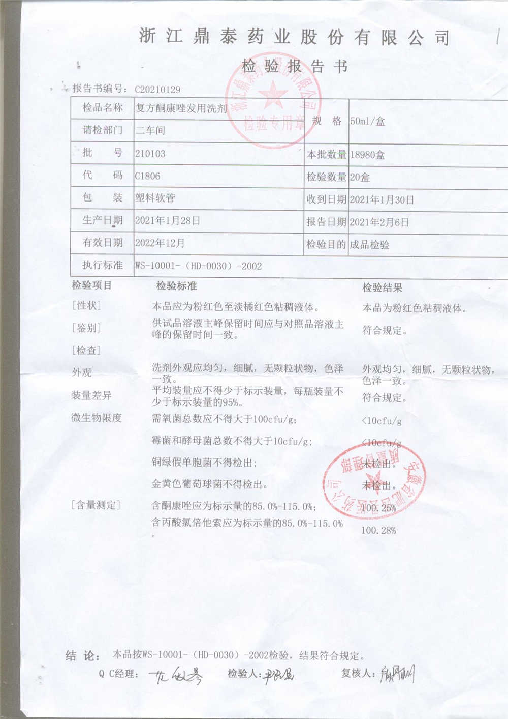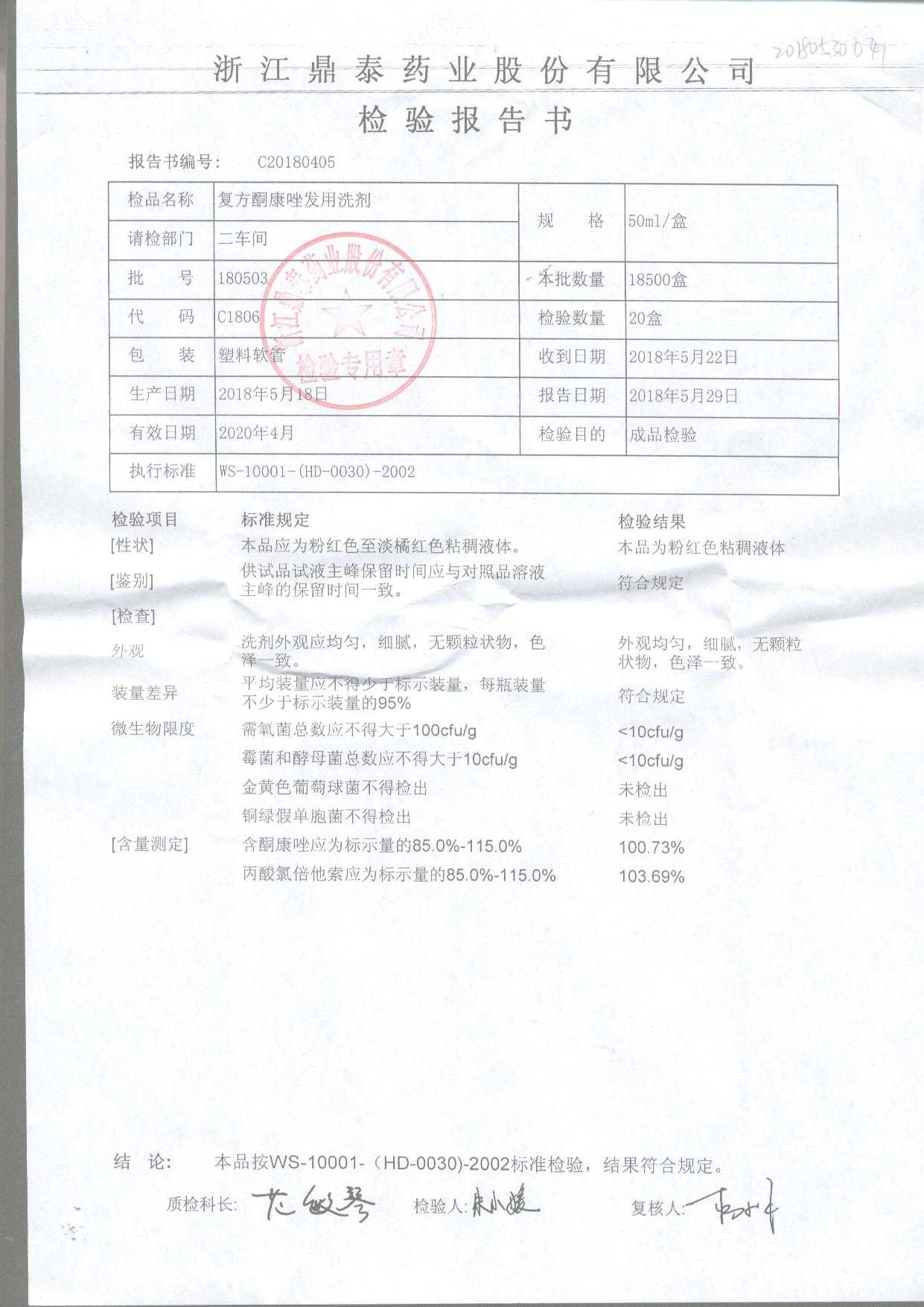 | 復(fù)方酮康唑發(fā)用洗劑 | 50ml | 210403 | 查看詳情 |