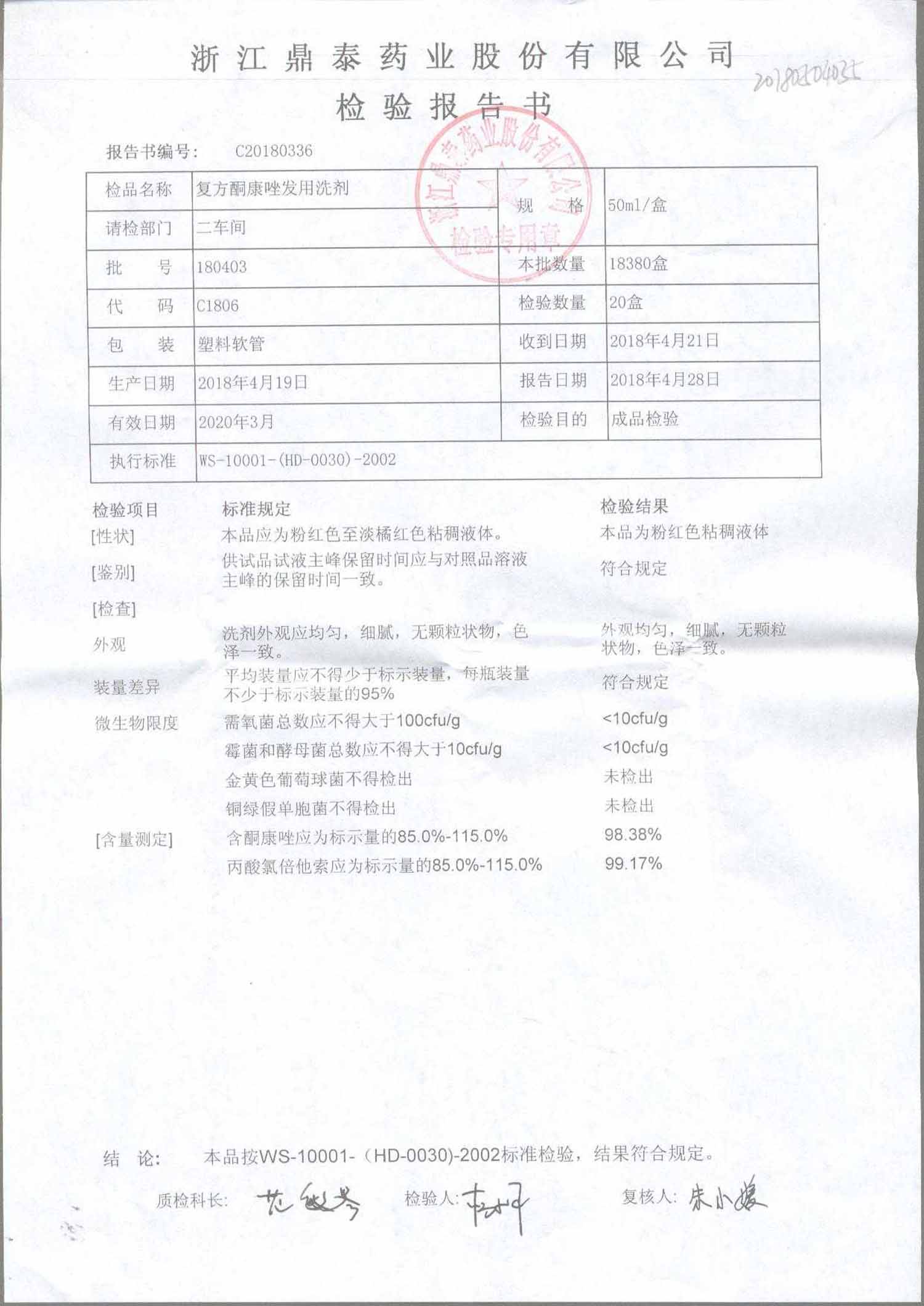 | 復(fù)方酮康唑發(fā)用洗劑 | 50ml | 180403 | 查看詳情 |