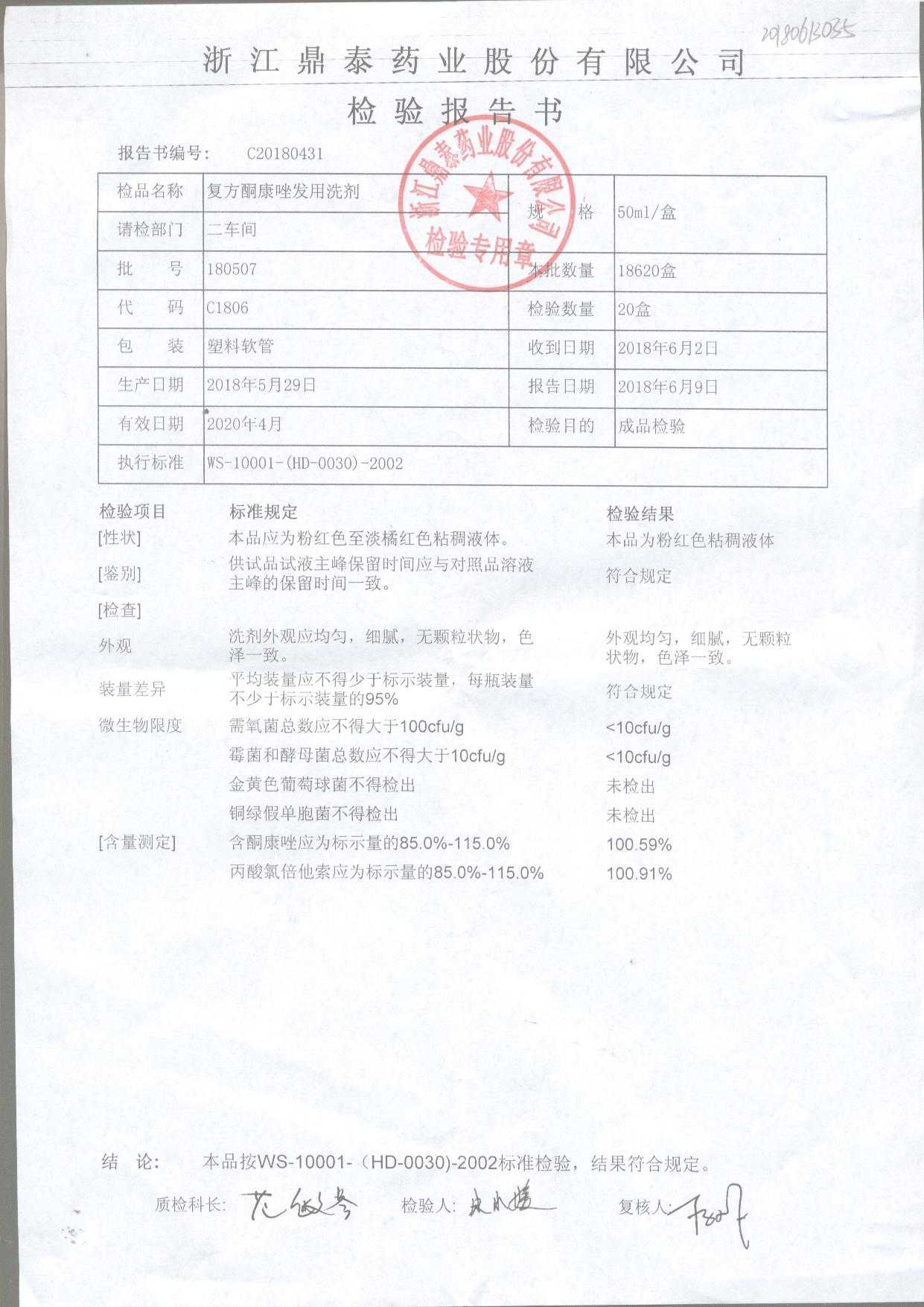 | 復(fù)方酮康唑發(fā)用洗劑 | 50ml | 180603 | 查看詳情 |