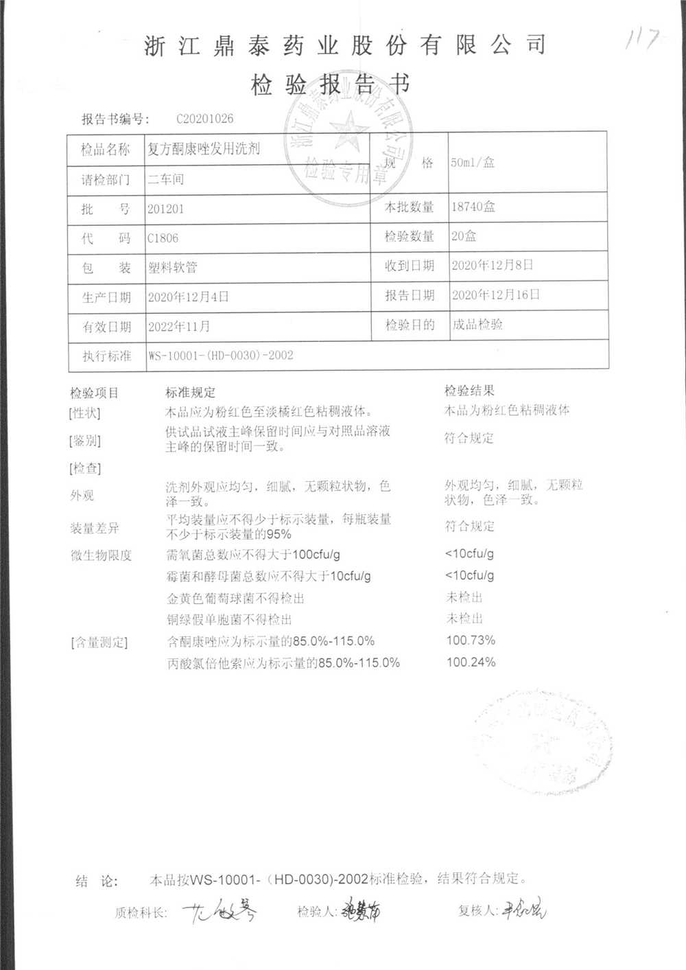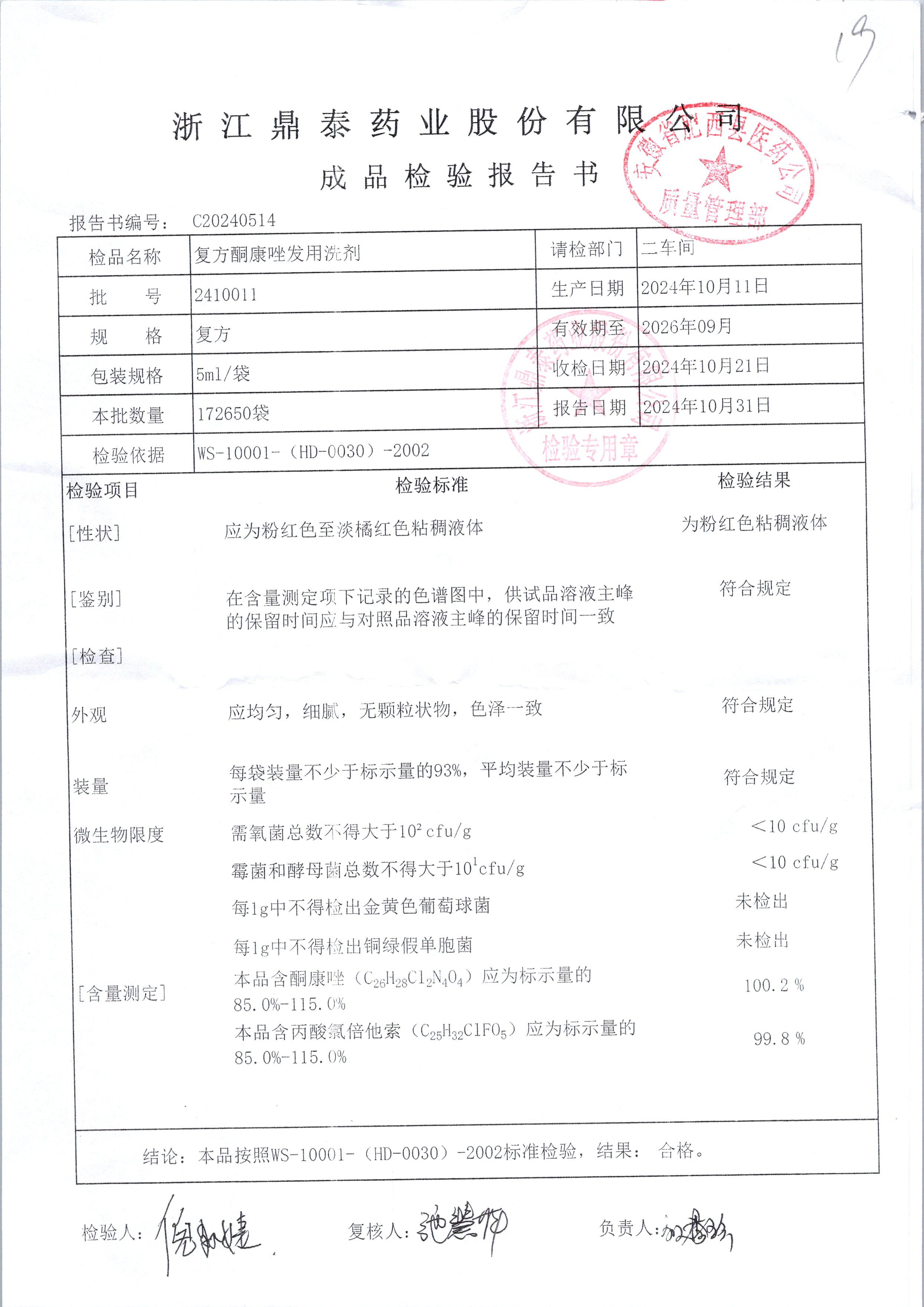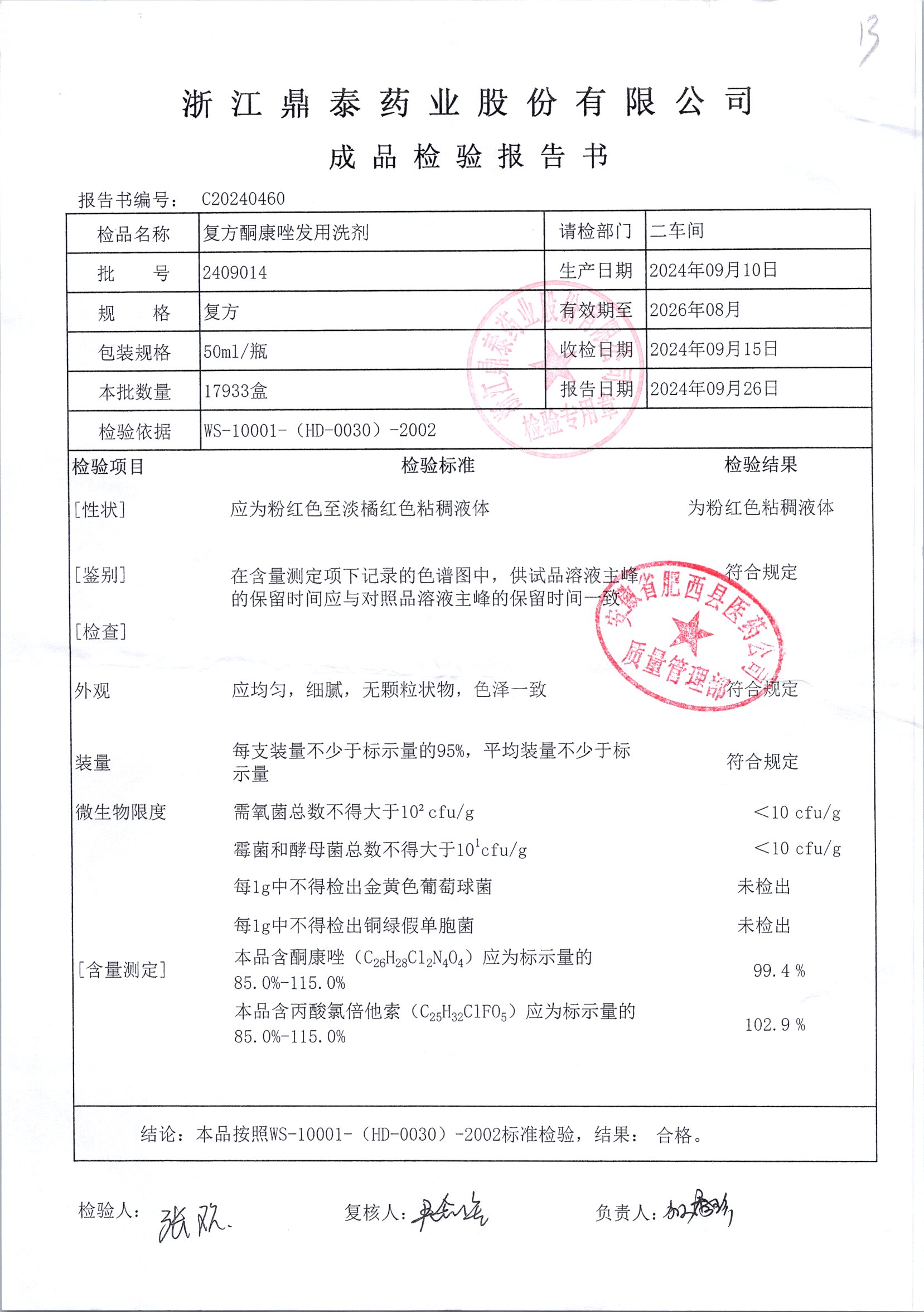 | 復(fù)方酮康唑發(fā)用洗劑 | 50ml | 211201 | 查看詳情 |