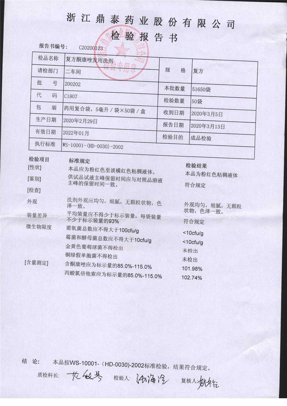 | 復(fù)方酮康唑發(fā)用洗劑 | 50ml | 200802 | 查看詳情 |