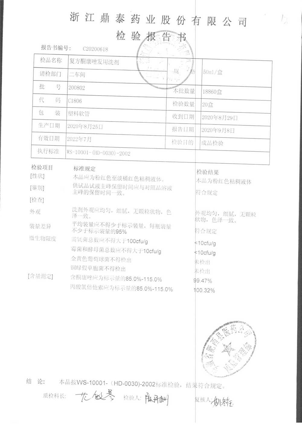 | 復(fù)方酮康唑發(fā)用洗劑 | 50ml | 210901 | 查看詳情 |