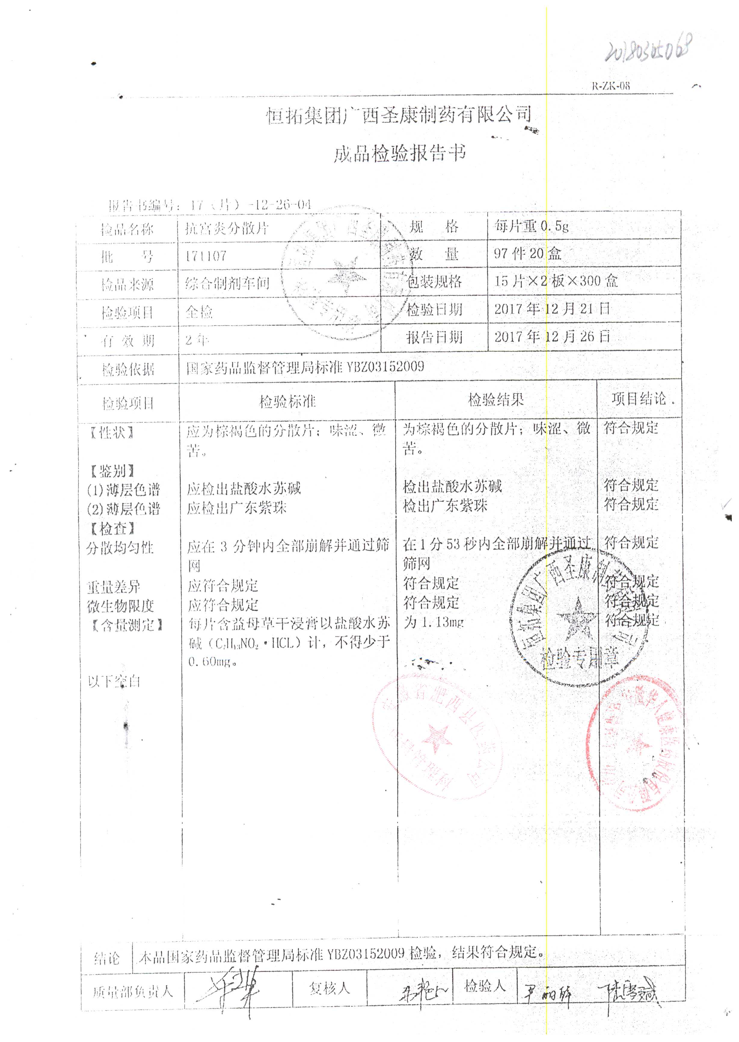| 抗宮炎分散片 | 0.5g*30片 | 171107 | 查看詳情 |