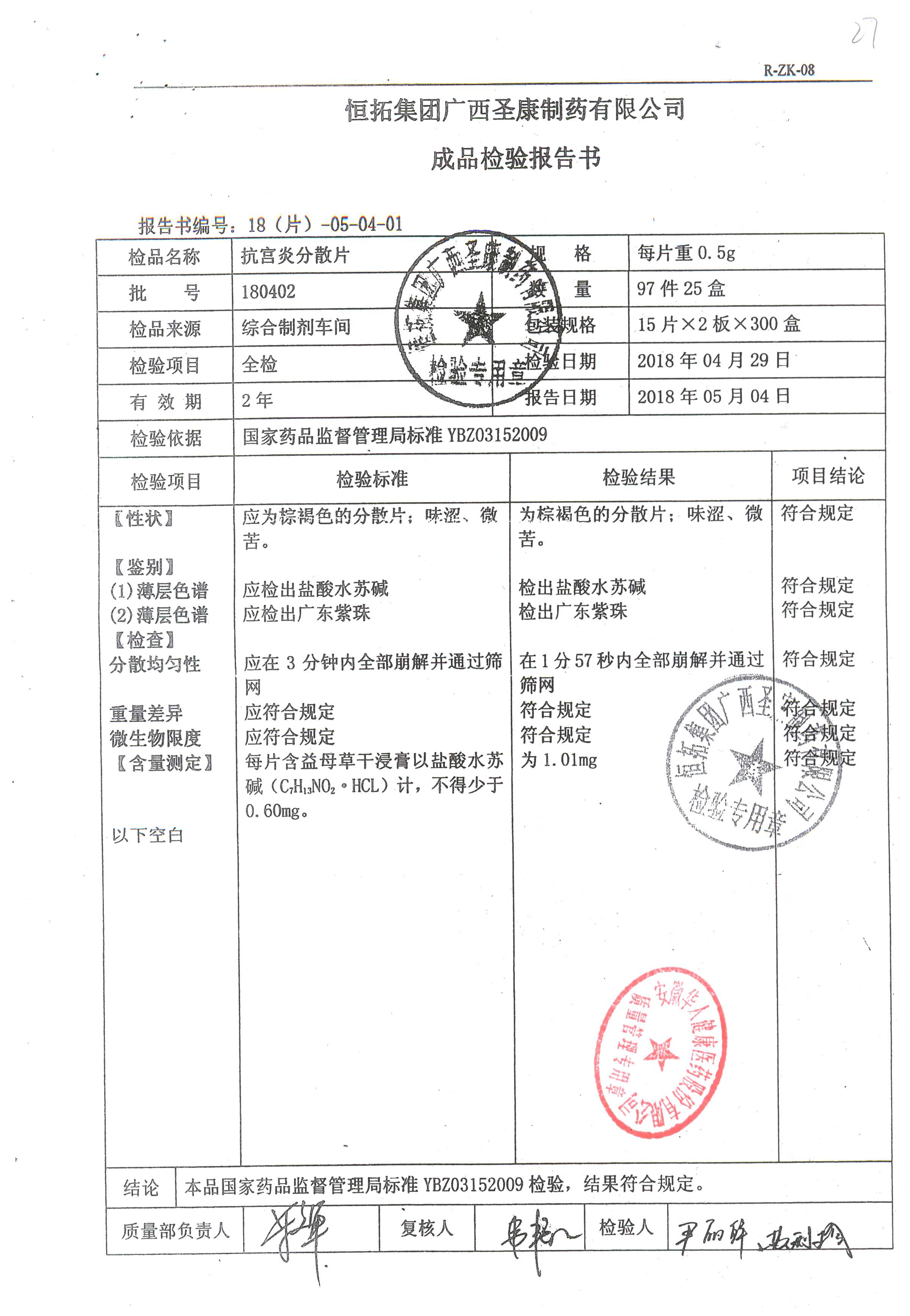 | 抗宮炎分散片 | 0.5g*30片 | 180302 | 查看詳情 |