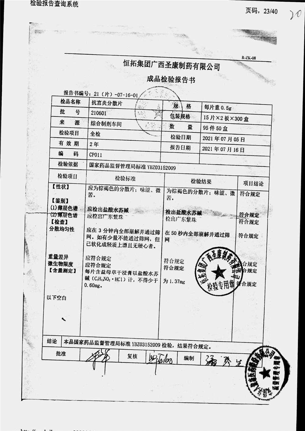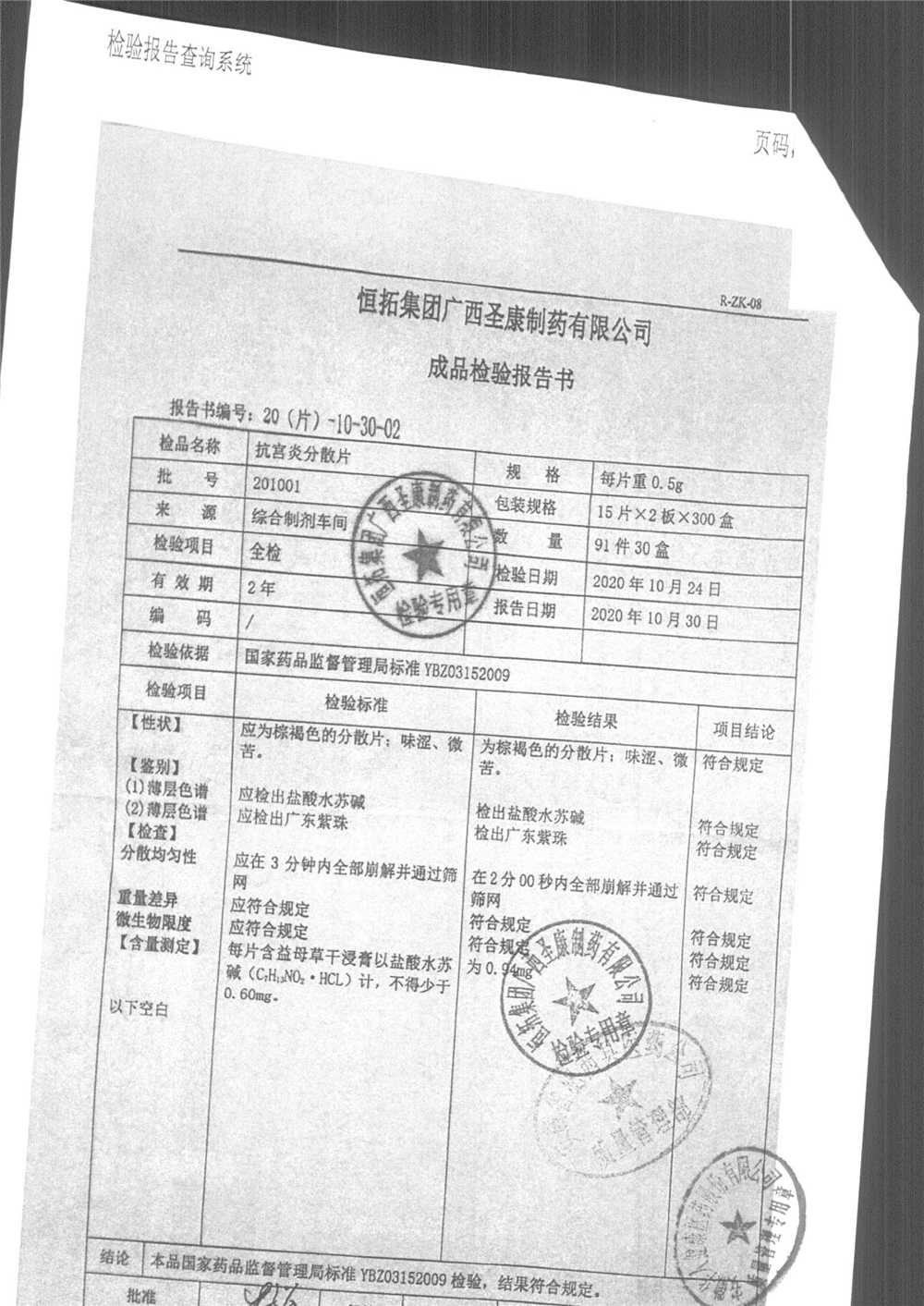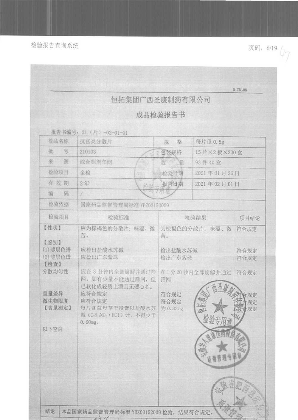 | 抗宮炎分散片 | 0.5g*30片 | 210601 | 查看詳情 |