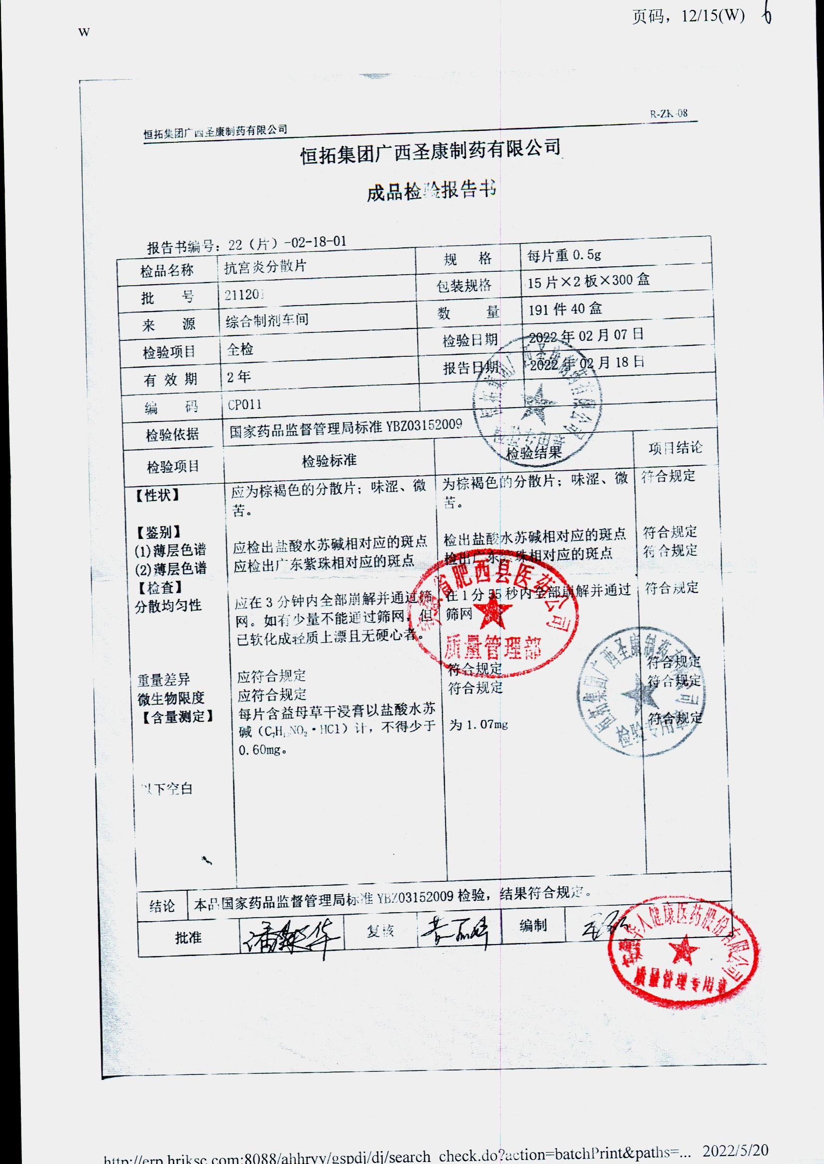 | 抗宮炎分散片 | 0.5g*30片 | 211201 | 查看詳情 |