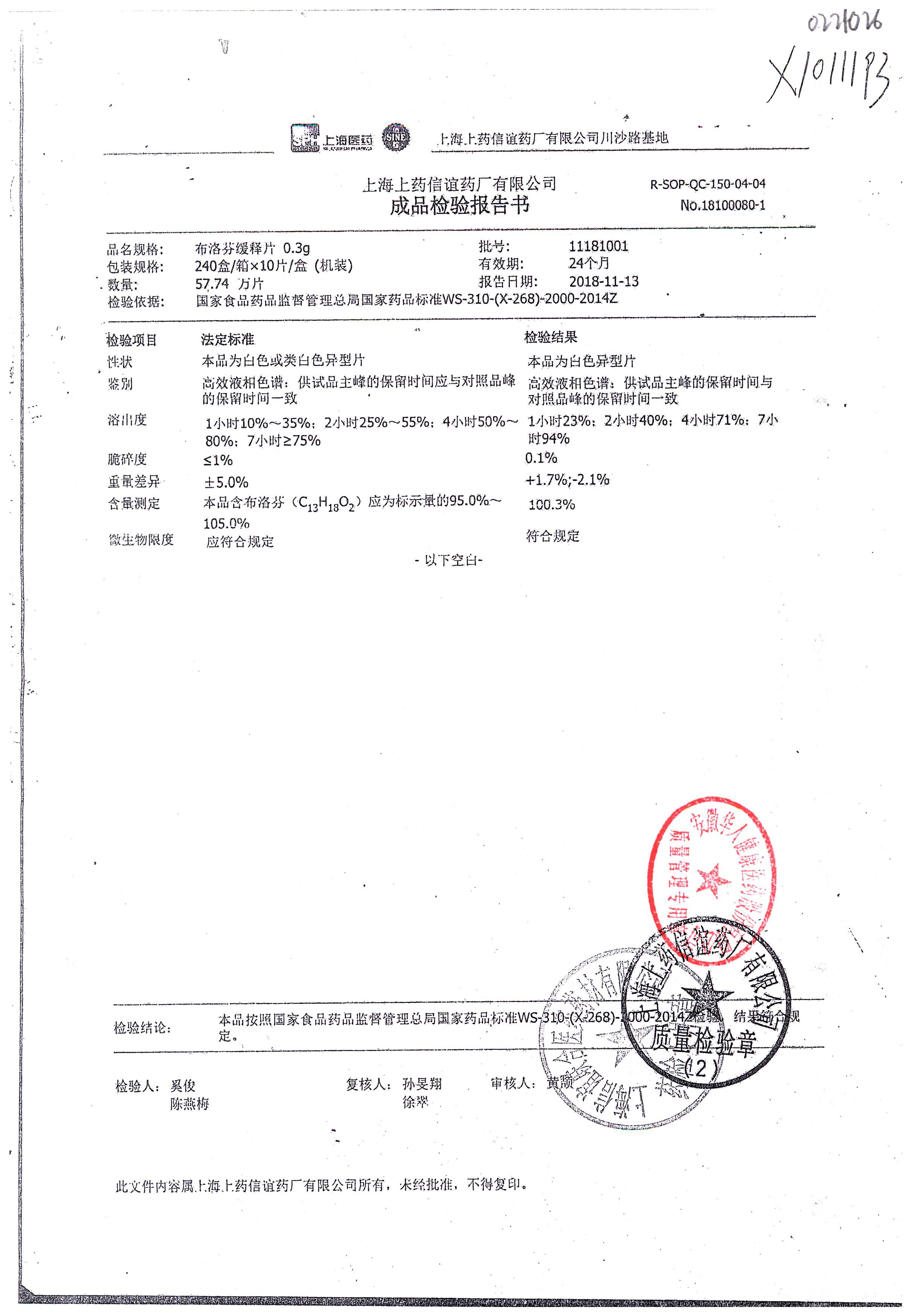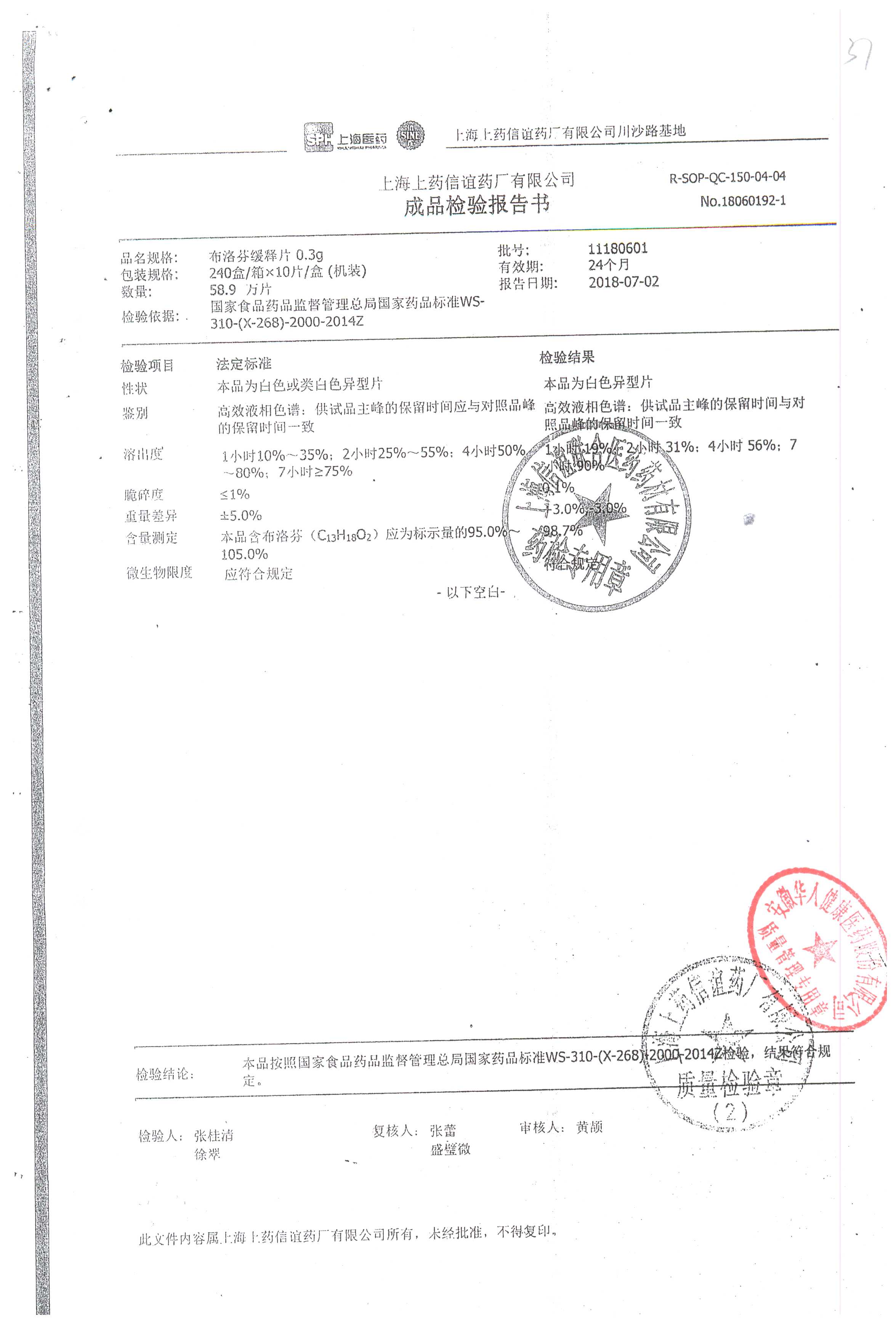 名稱 規(guī)格 批號(hào) 藥檢報(bào)告