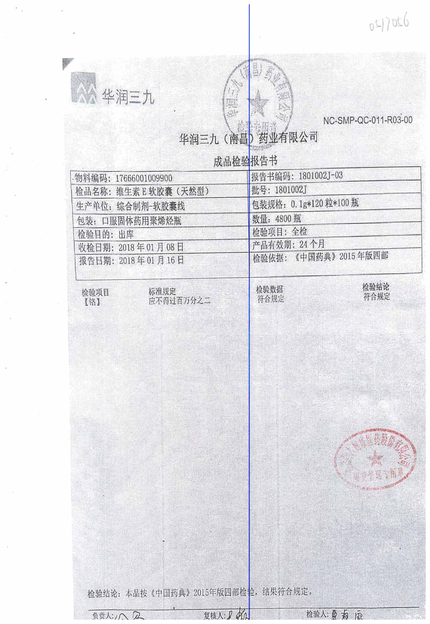 | 維生素E軟膠囊 | 0.1g*120粒 | 1801006J(2/2) | 查看詳情 |