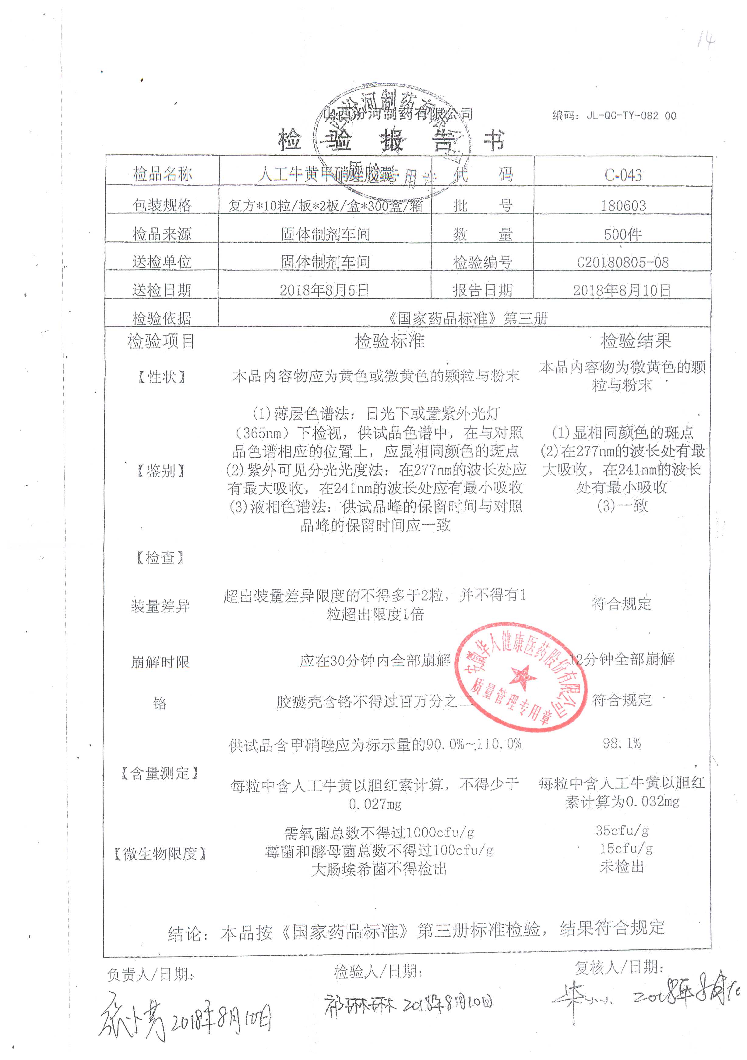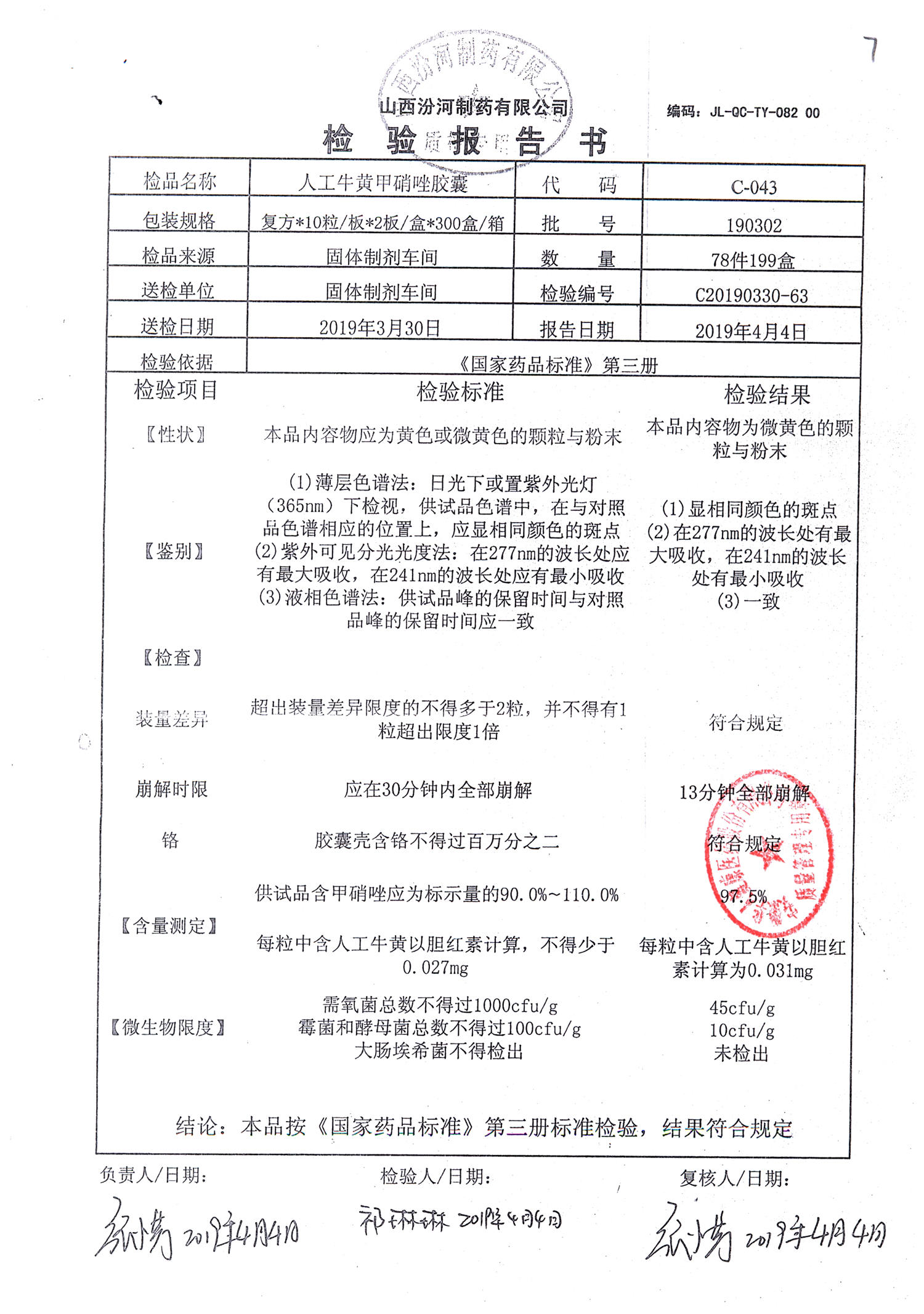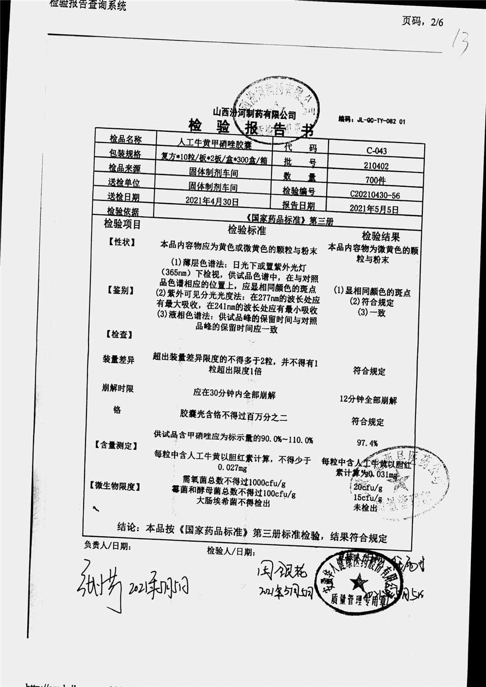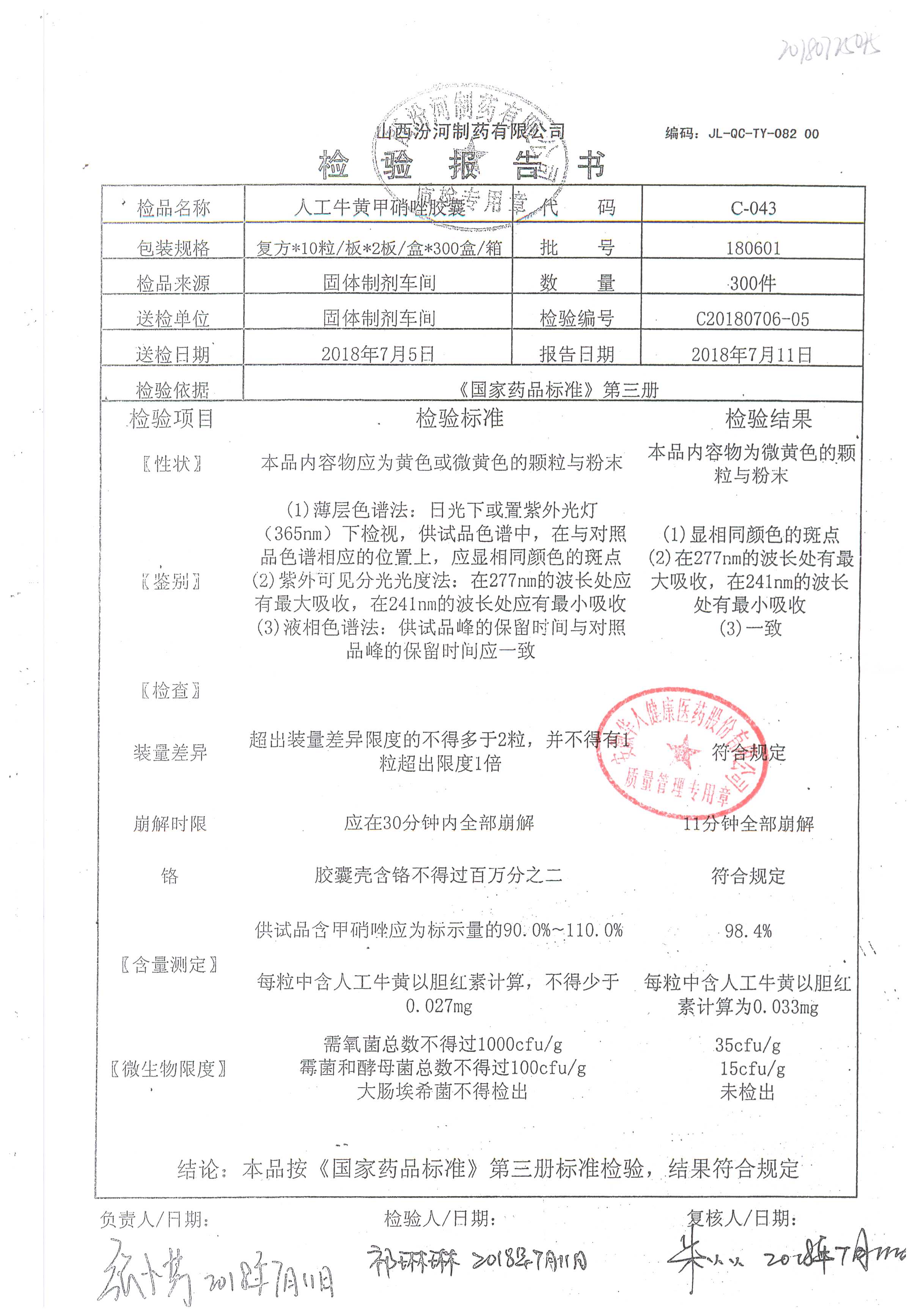 | 人工牛黃甲硝唑膠囊 | 復(fù)方*20粒 | 220302/1 | 查看詳情 |