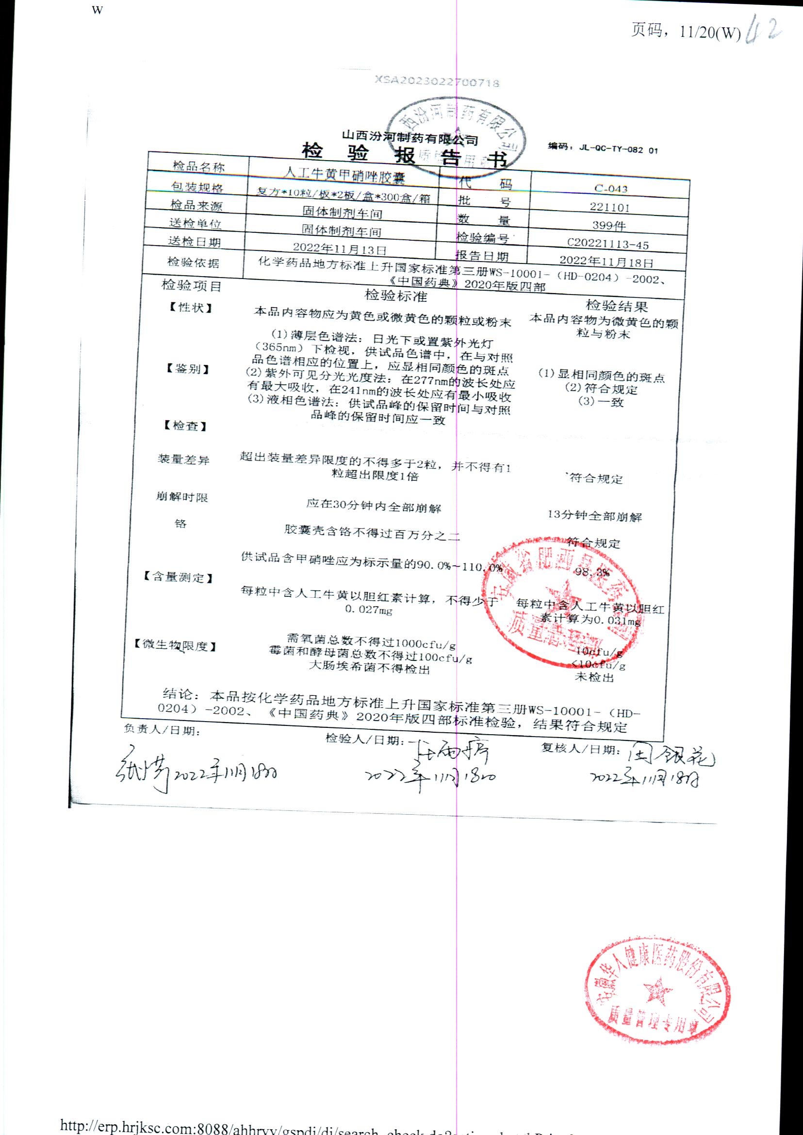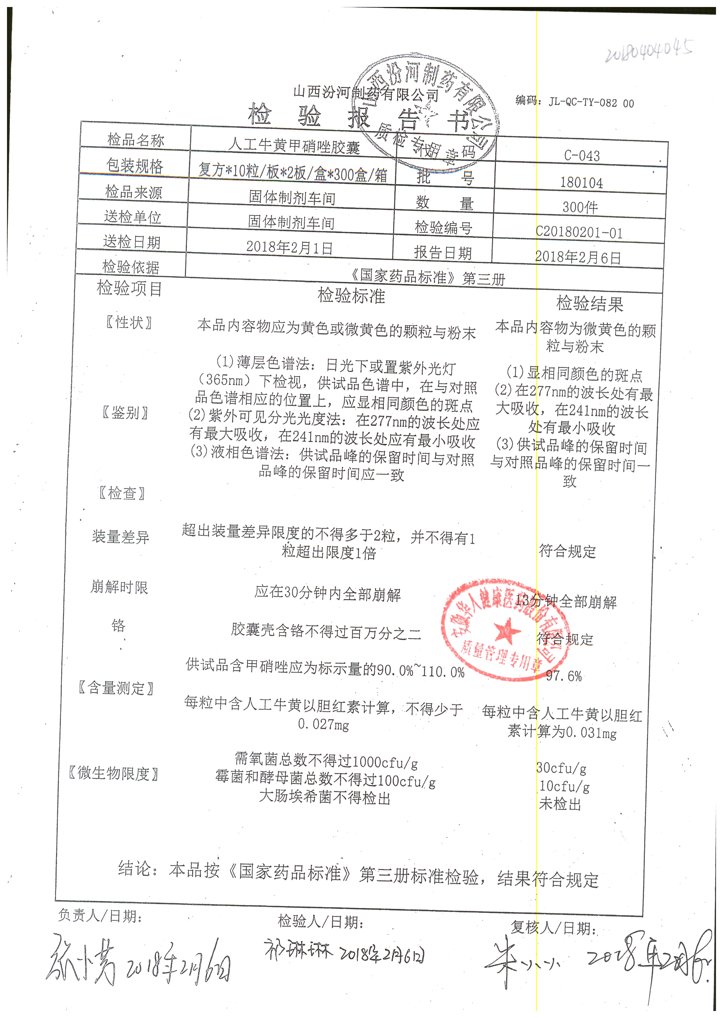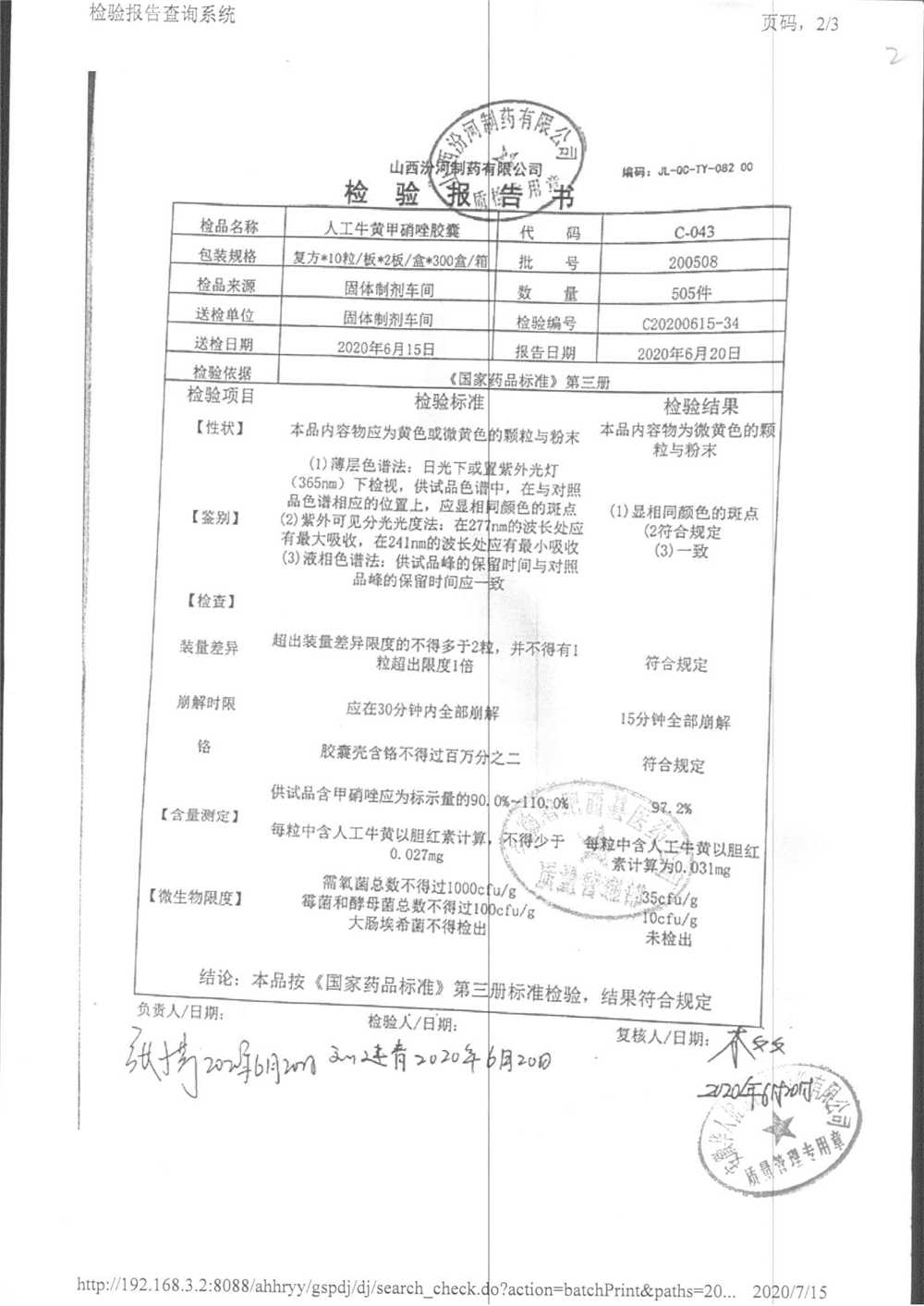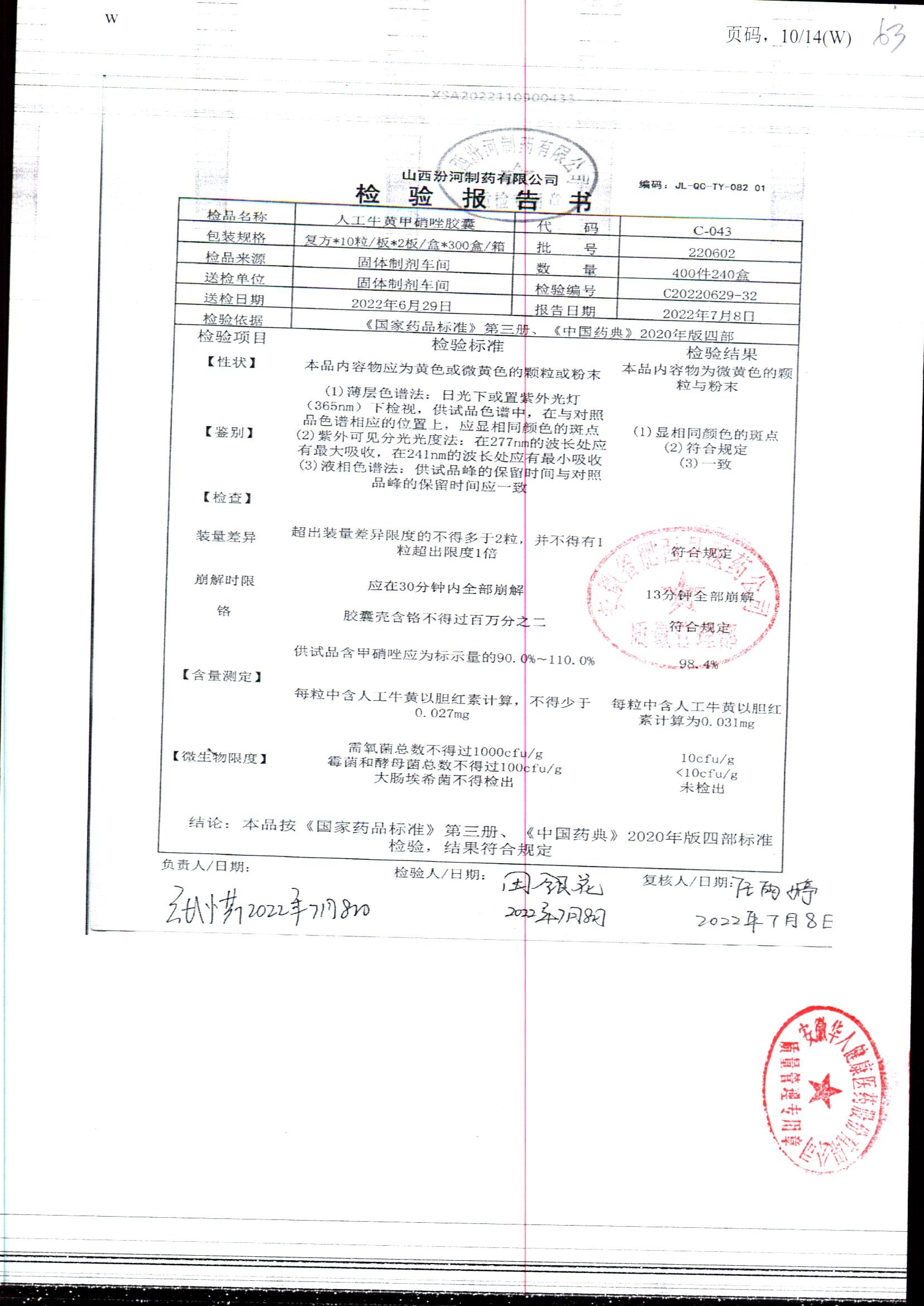 | 人工牛黃甲硝唑膠囊 | 復(fù)方*20粒 | 220302/1 | 查看詳情 |