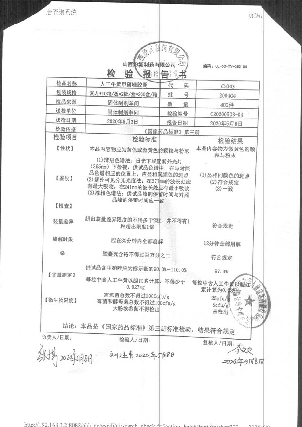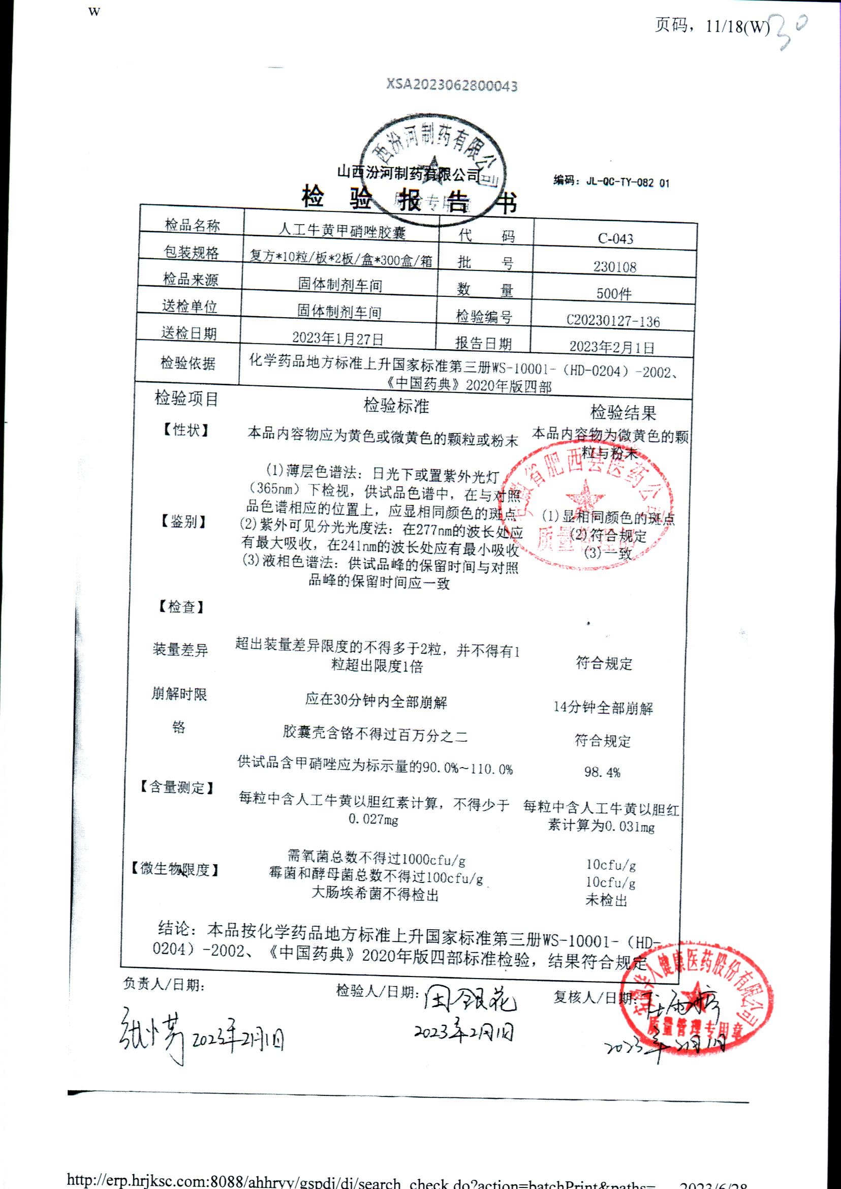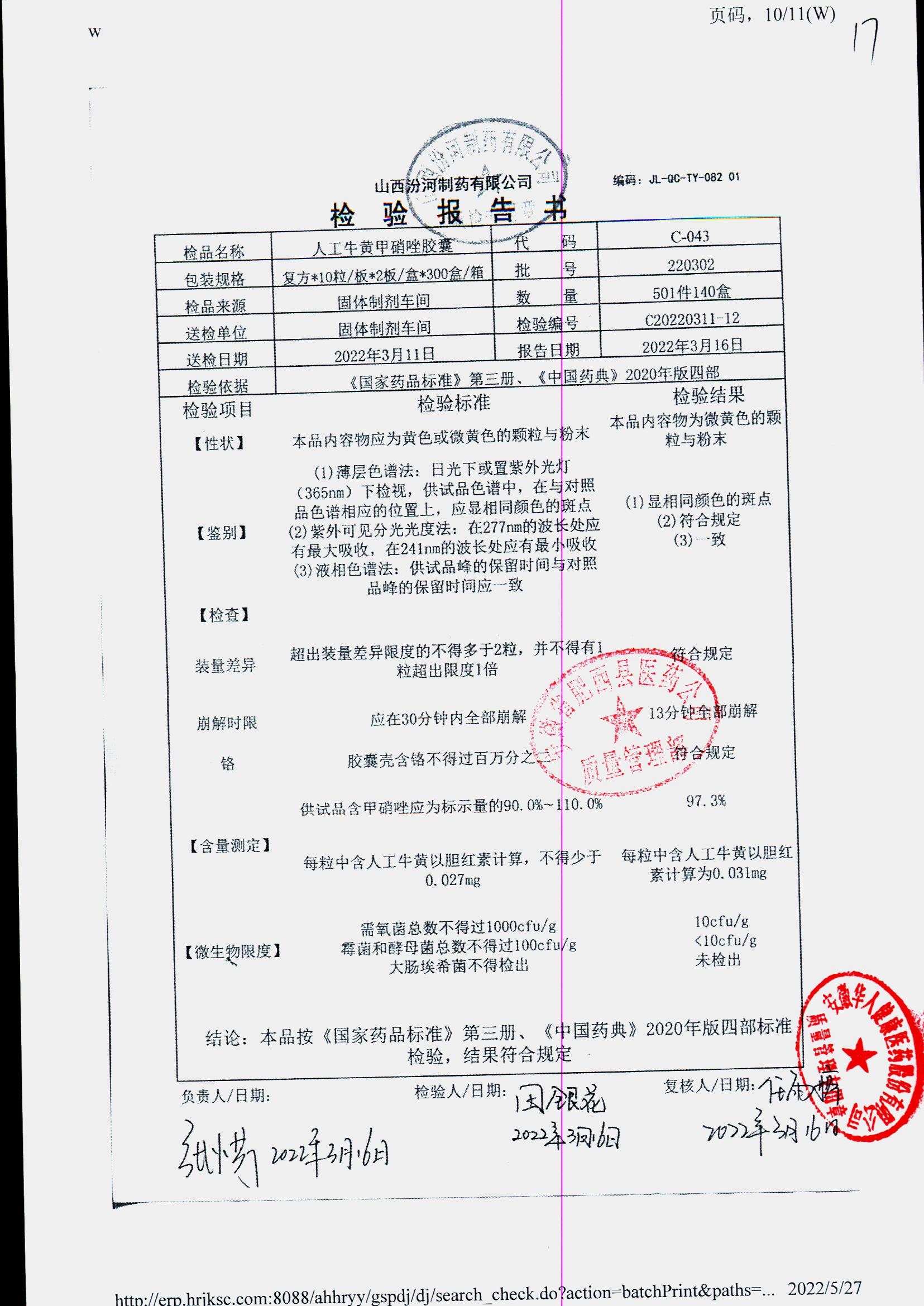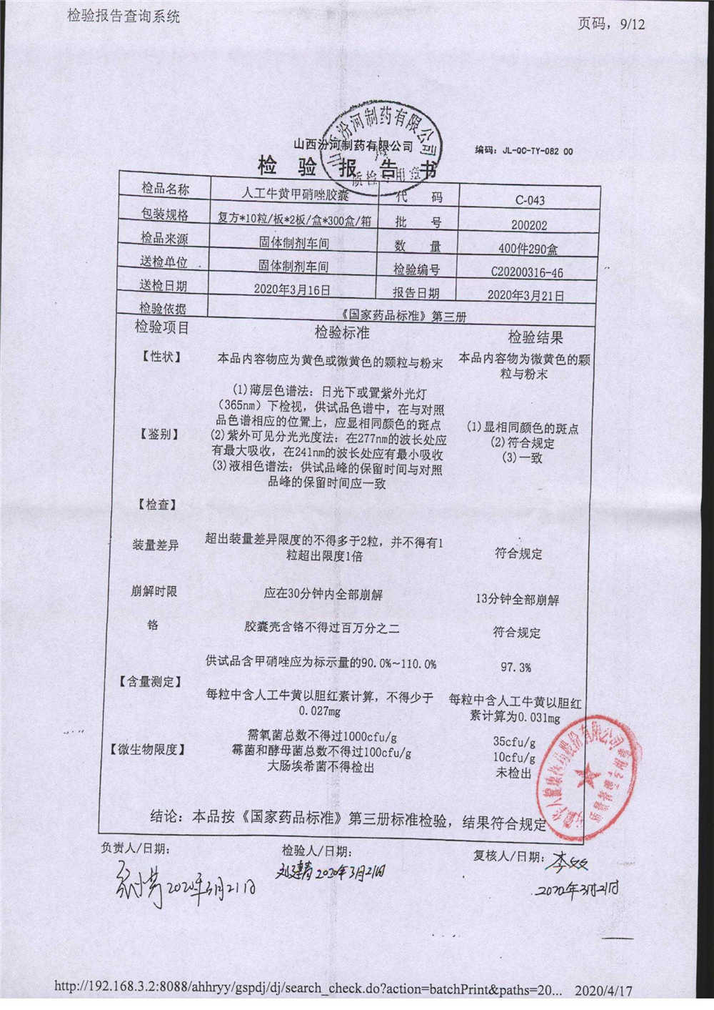 | 人工牛黃甲硝唑膠囊 | 復(fù)方*20粒 | 220302/1 | 查看詳情 |