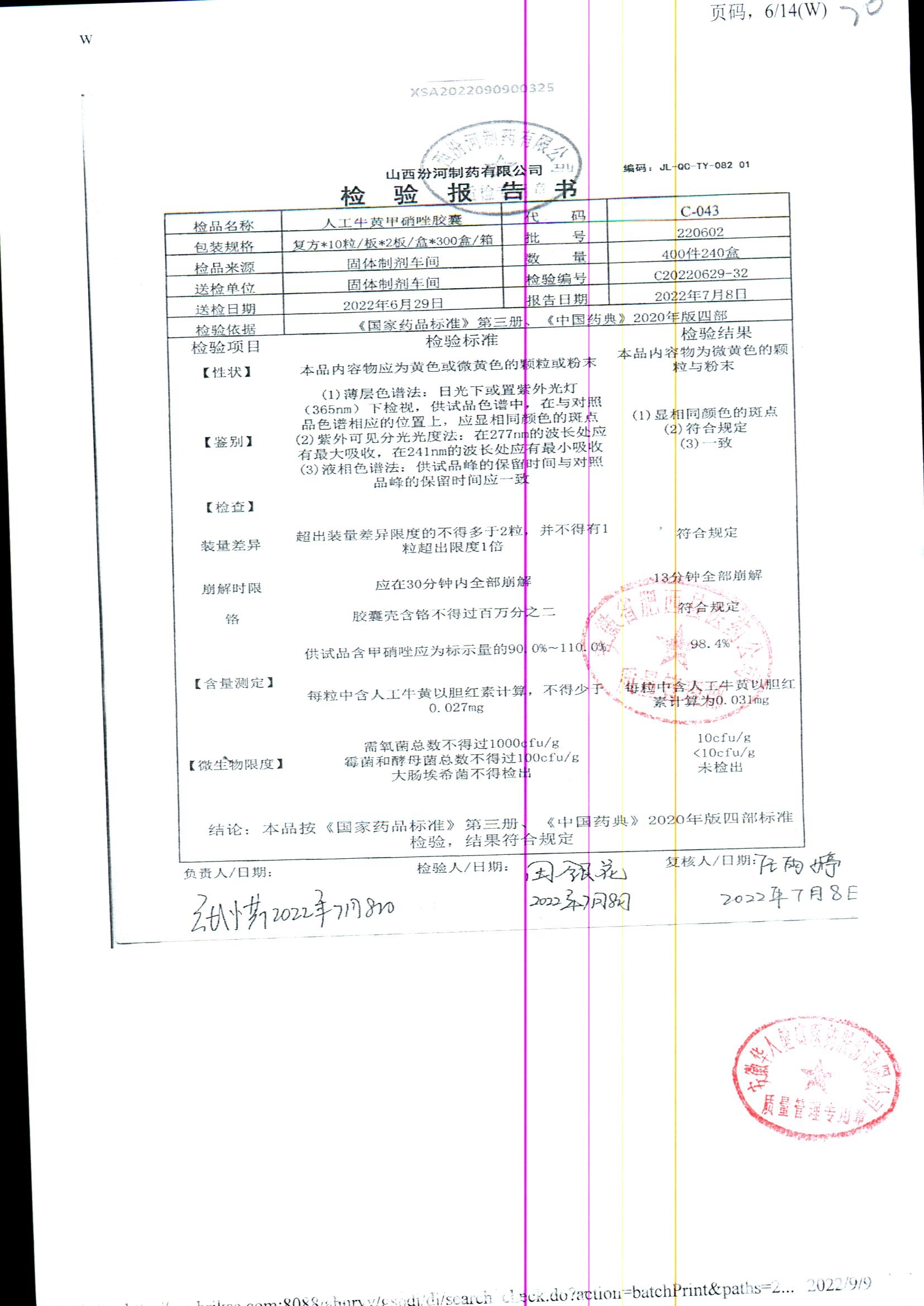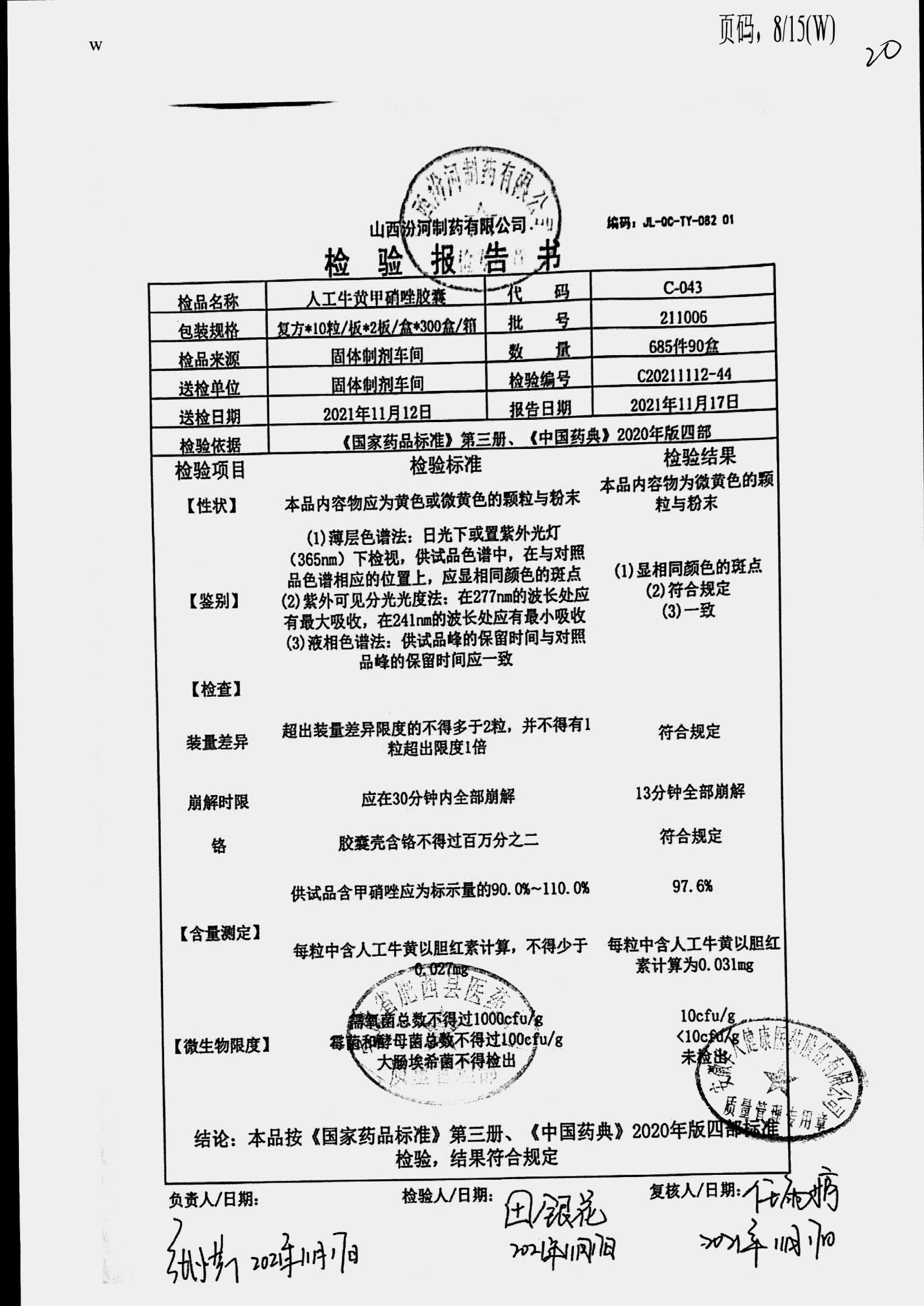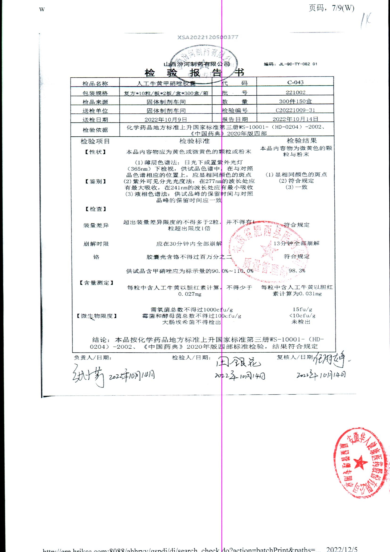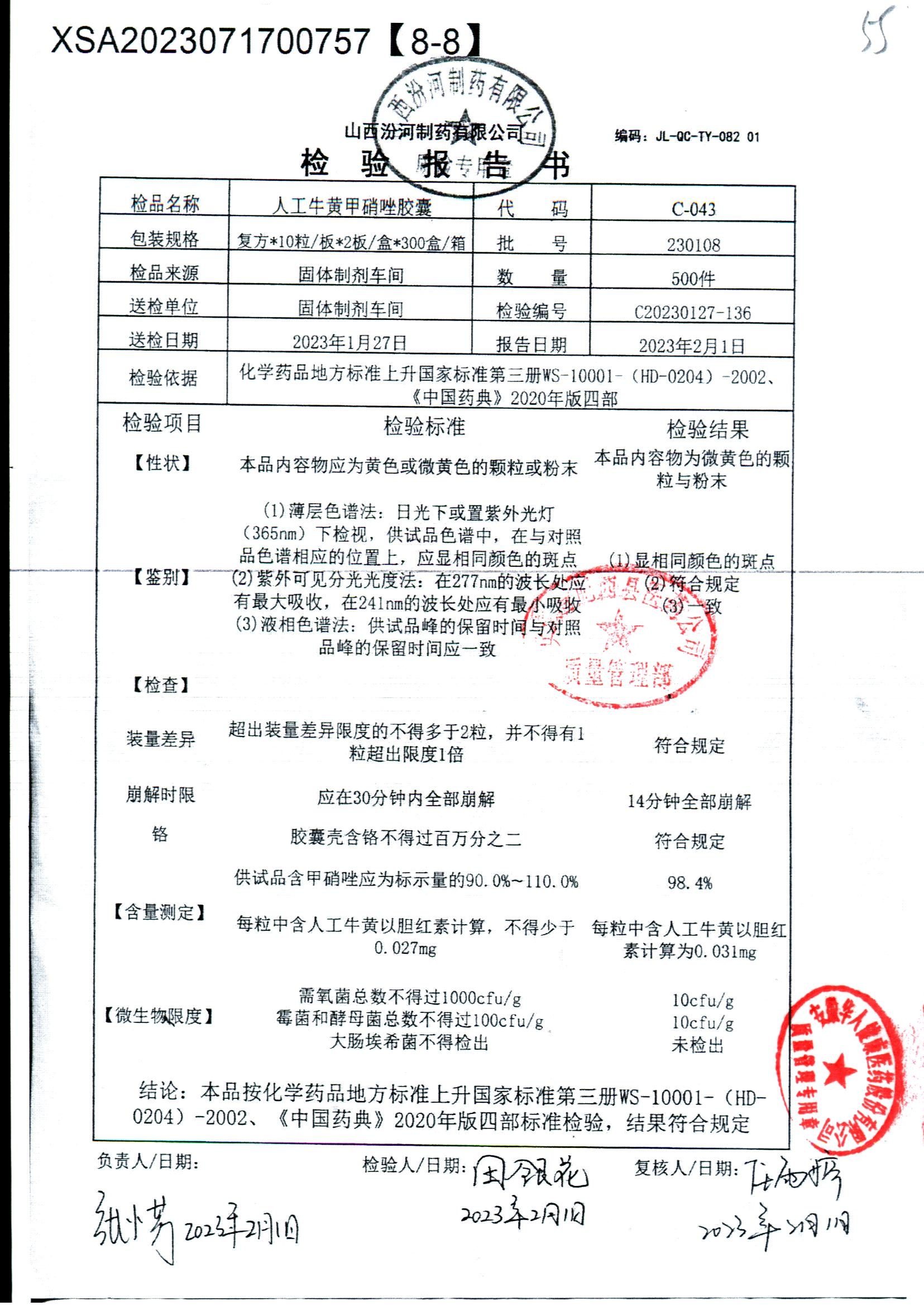 | 人工牛黃甲硝唑膠囊 | 復(fù)方*20粒 | 220302/1 | 查看詳情 |