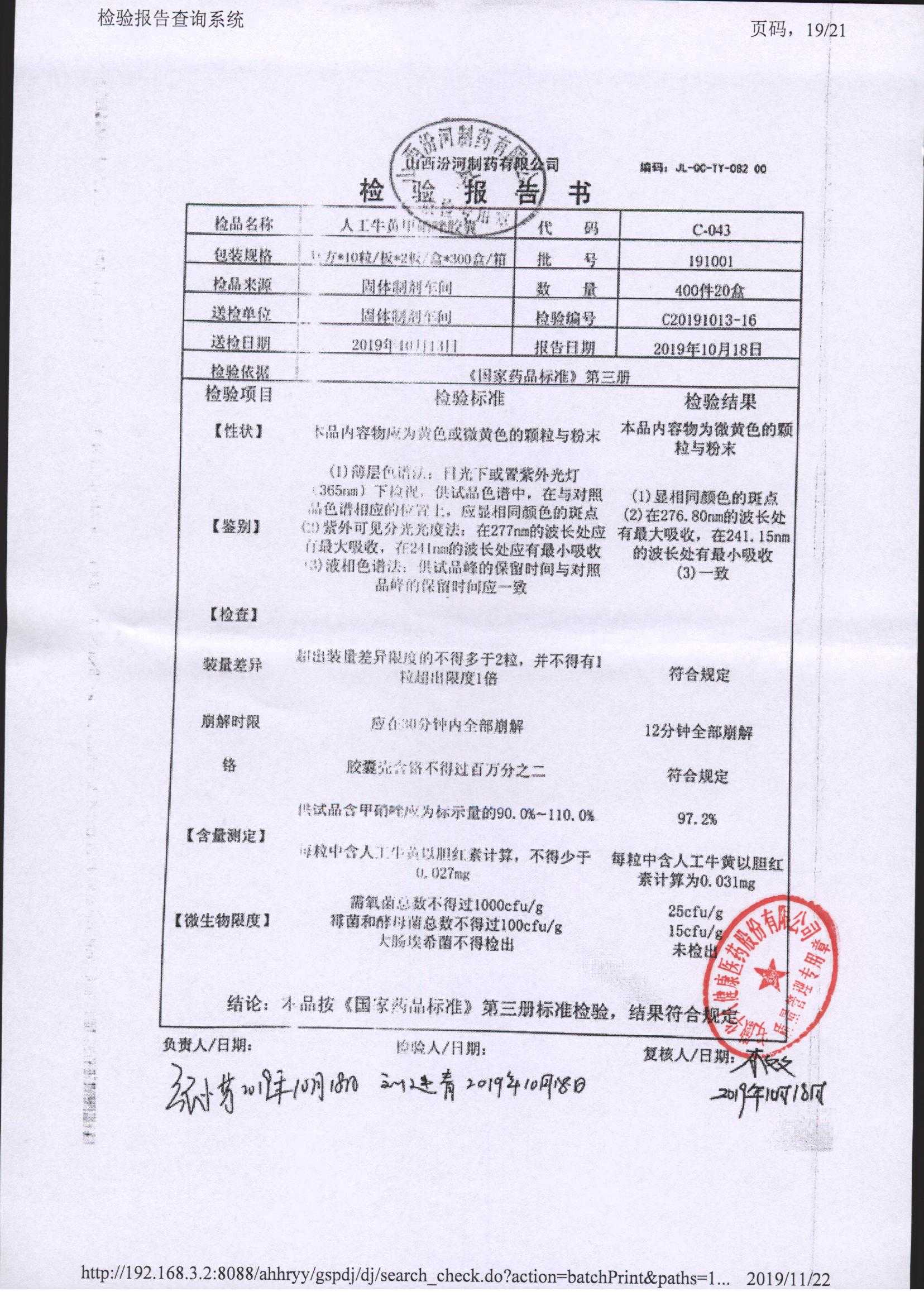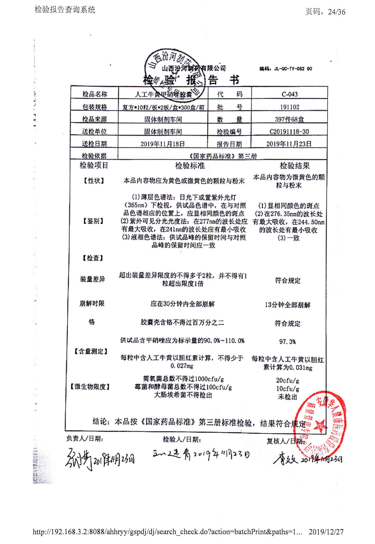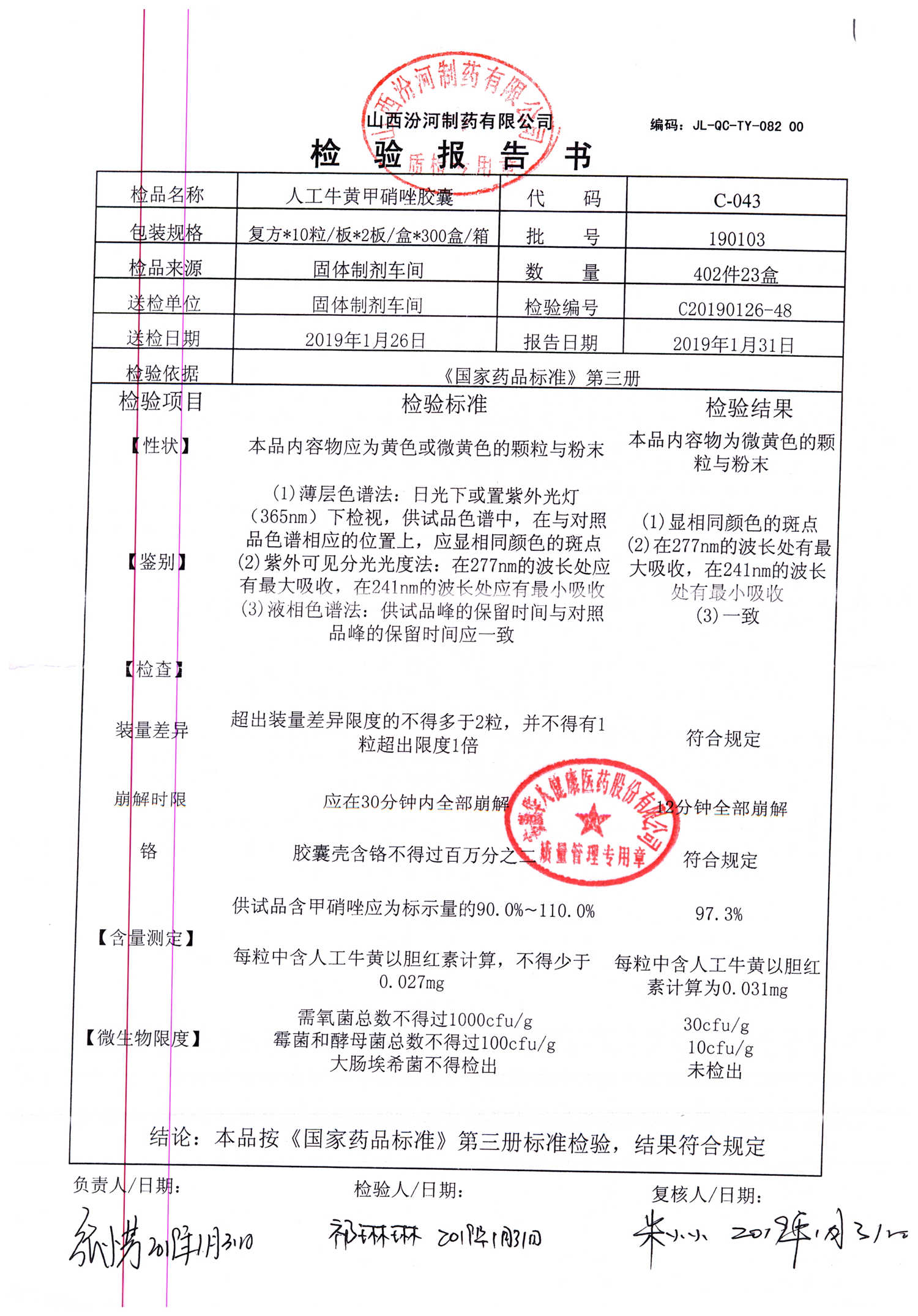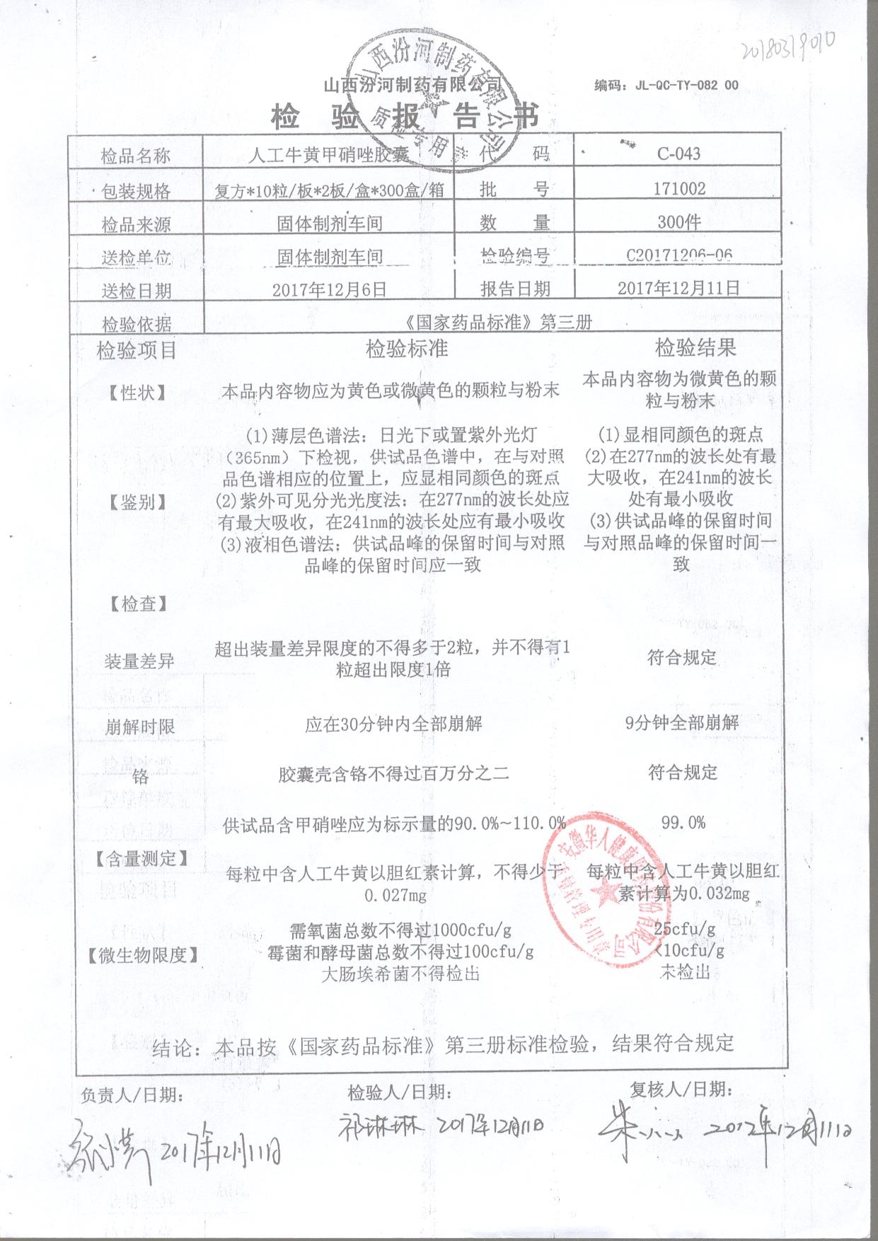 | 人工牛黃甲硝唑膠囊 | 復(fù)方*20粒 | 191203 | 查看詳情 |
