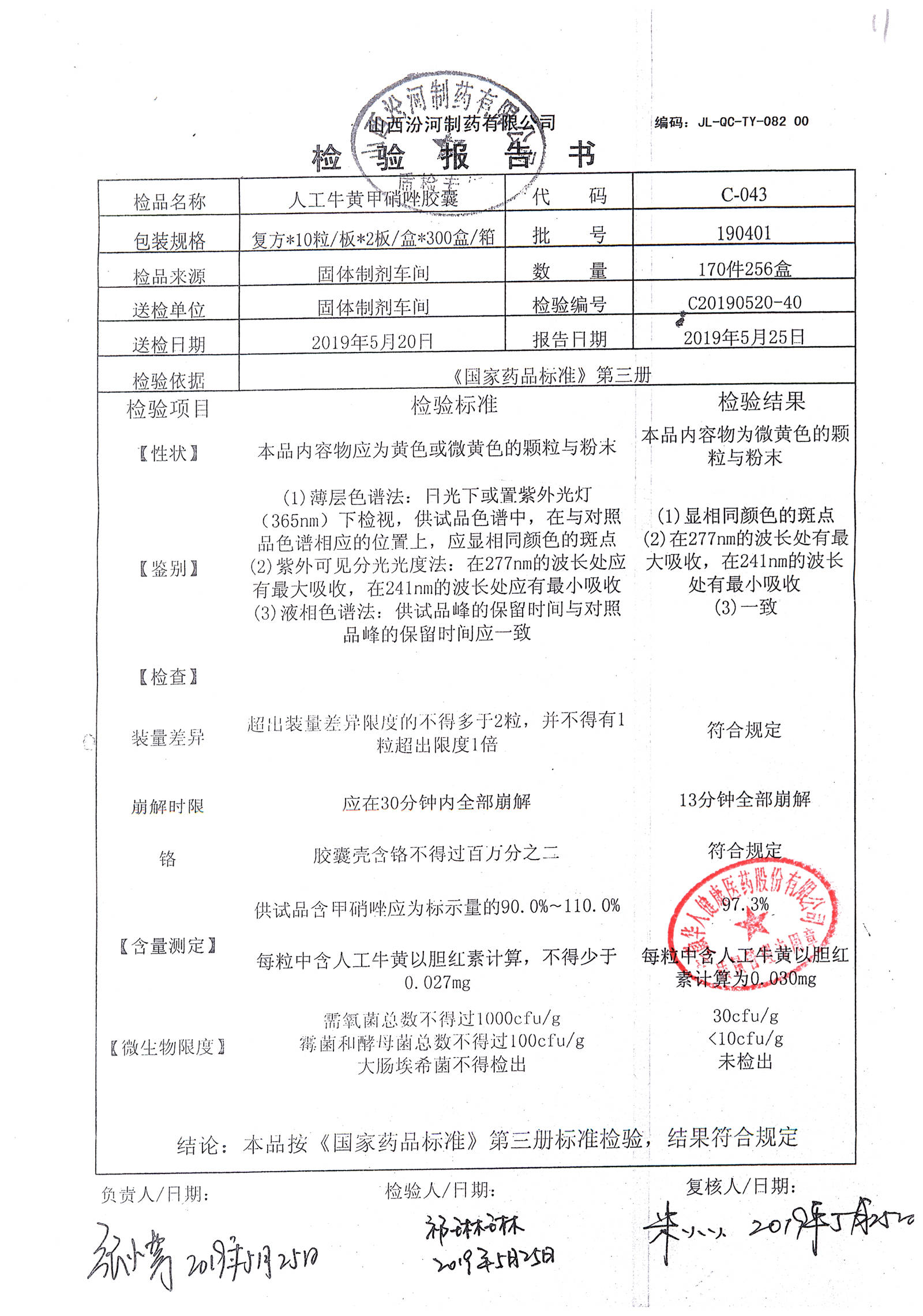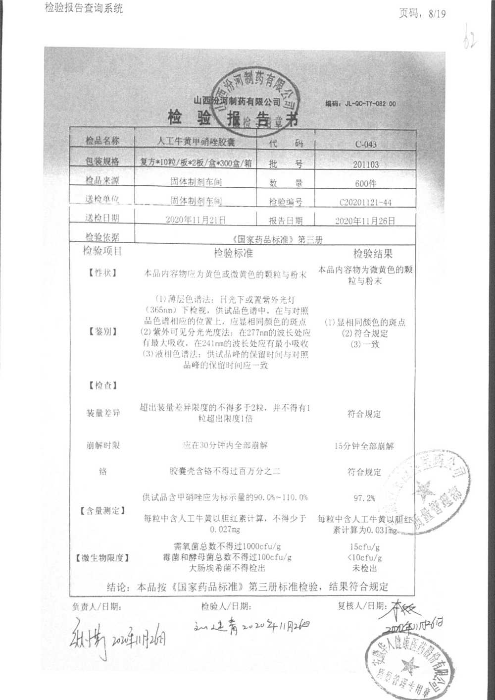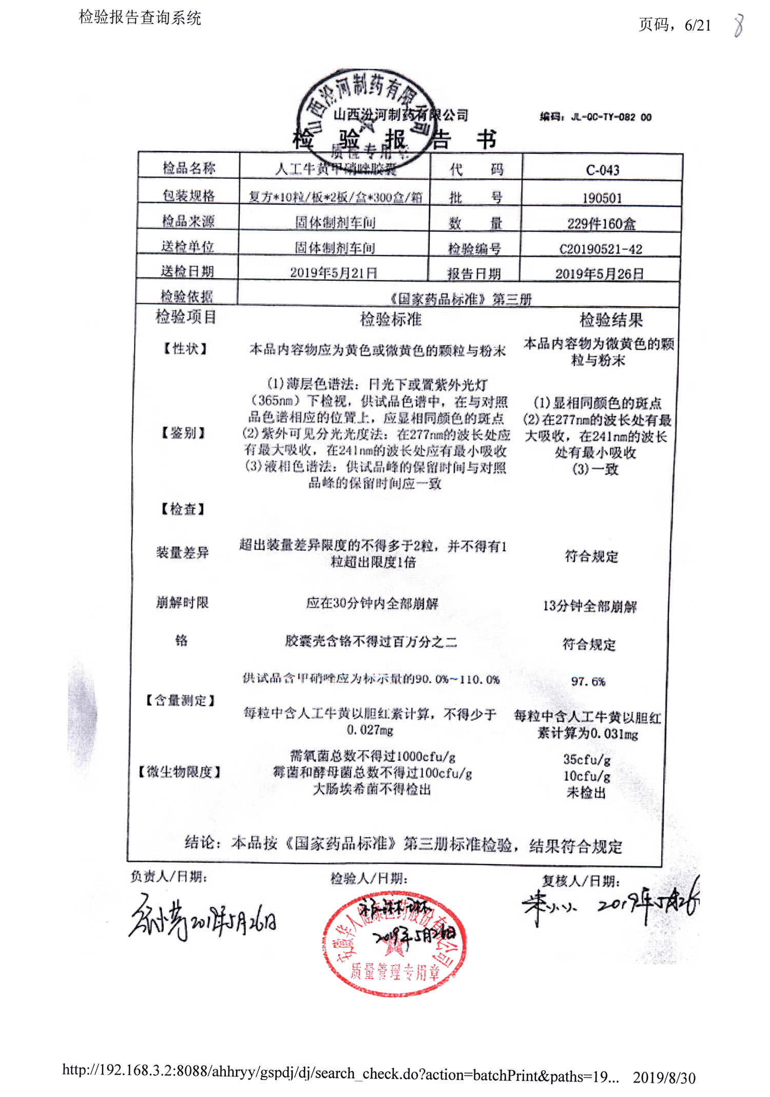 | 人工牛黃甲硝唑膠囊 | 復(fù)方*20粒 | 191203 | 查看詳情 |