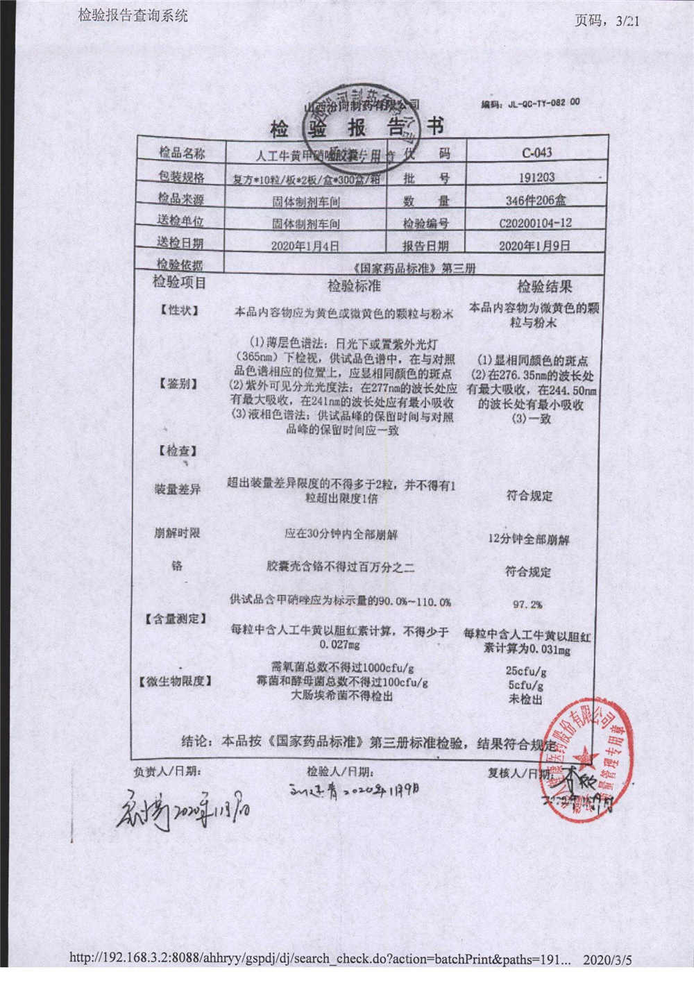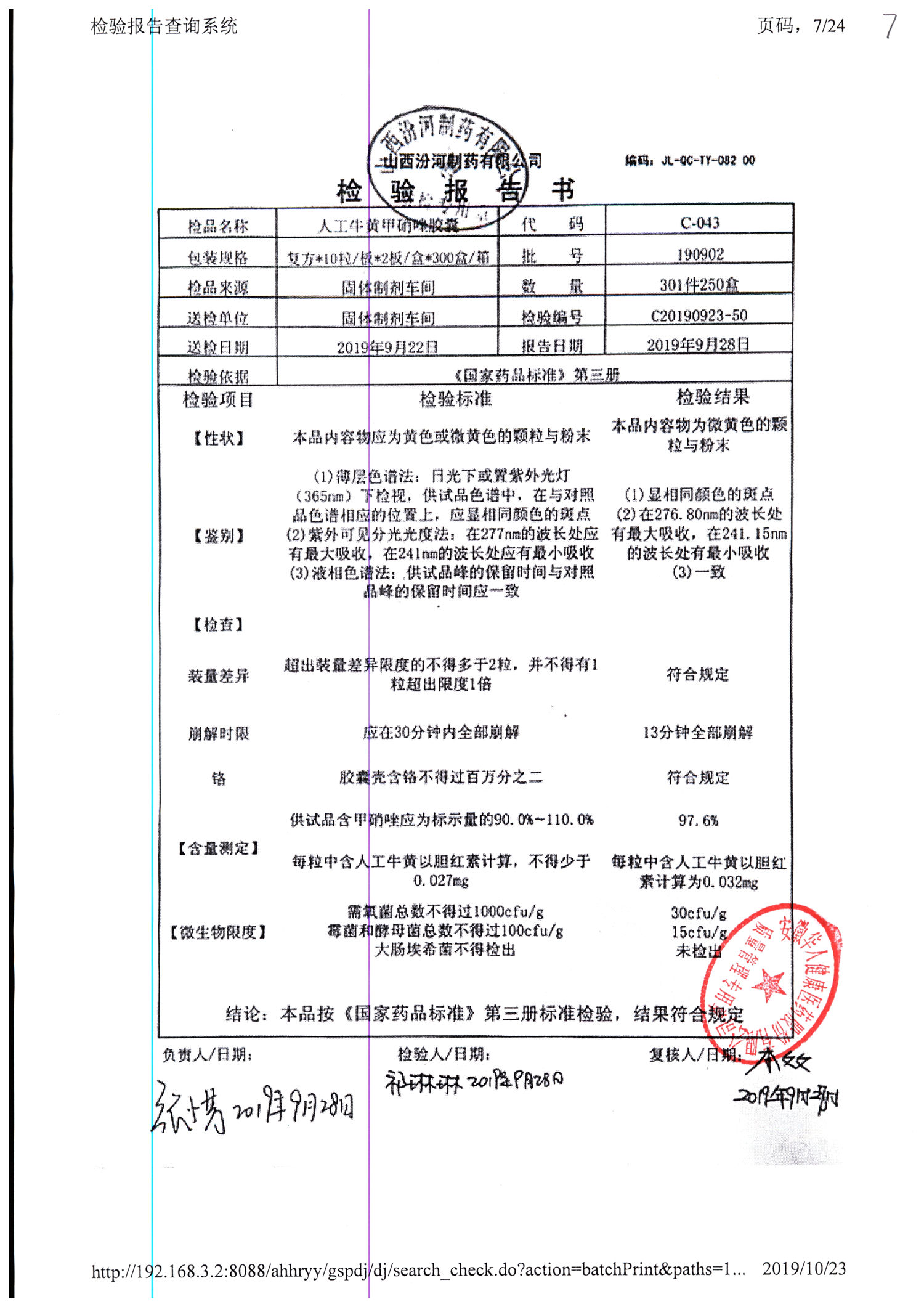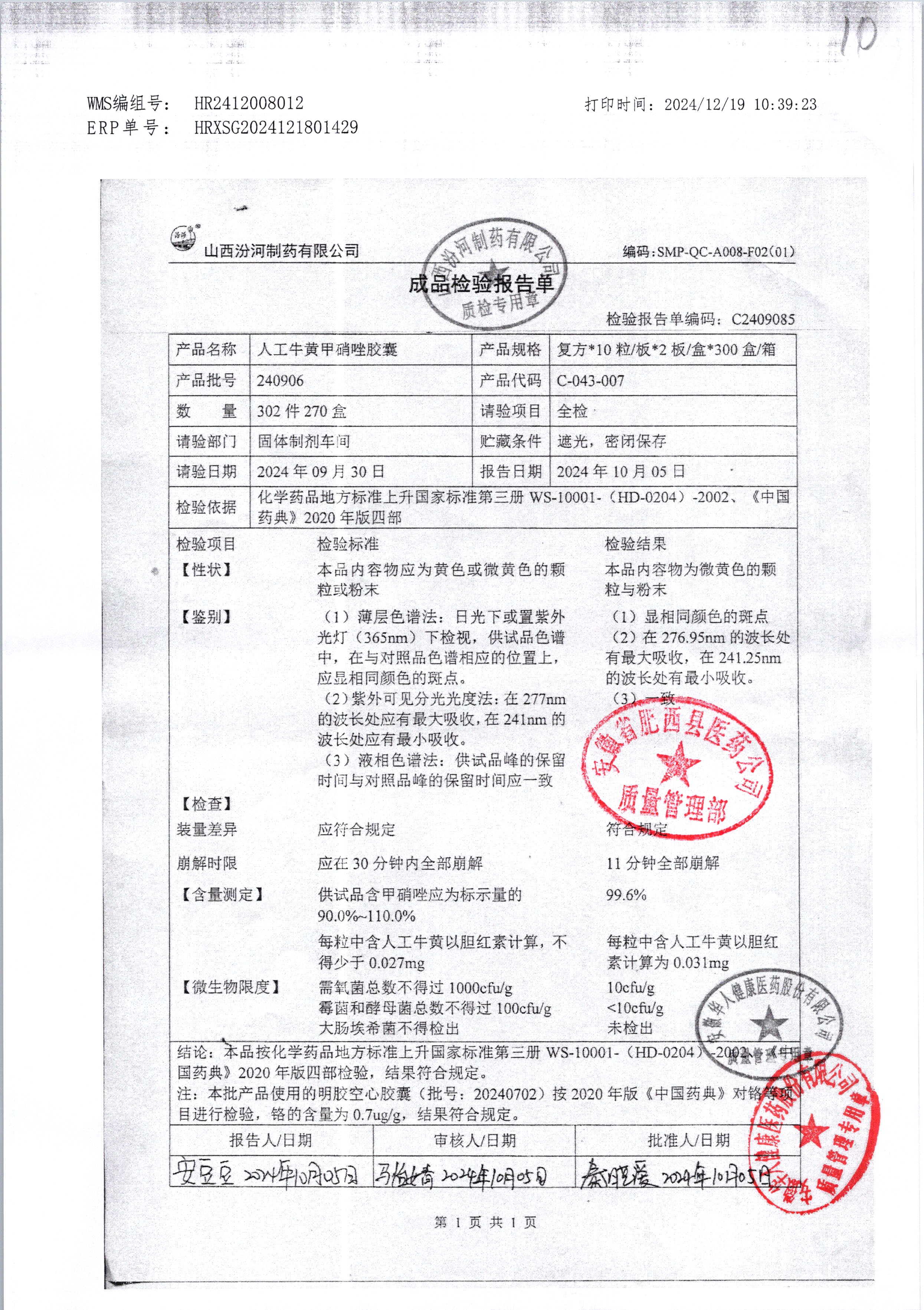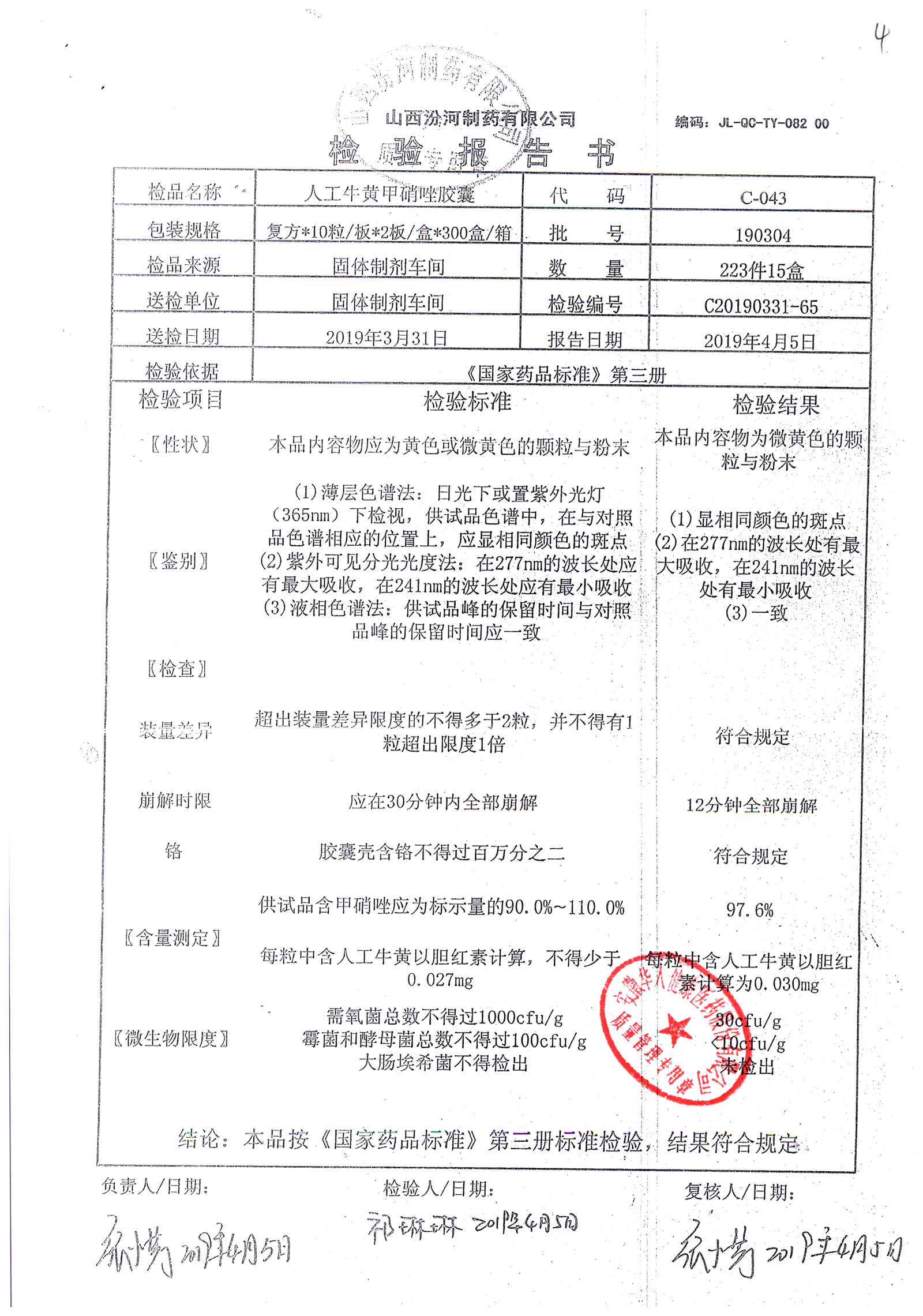 | 人工牛黃甲硝唑膠囊 | 復(fù)方*20粒 | 191203 | 查看詳情 |