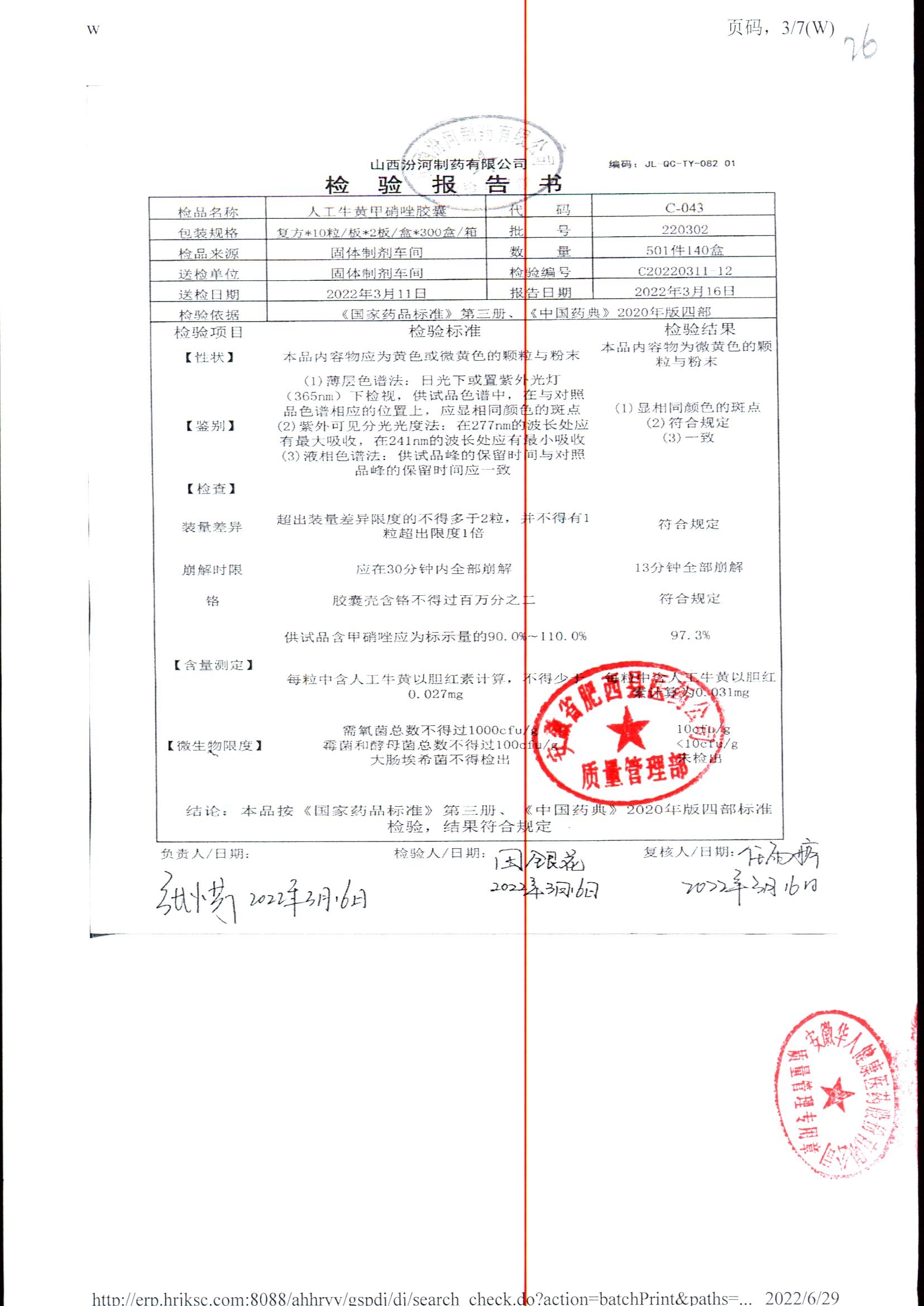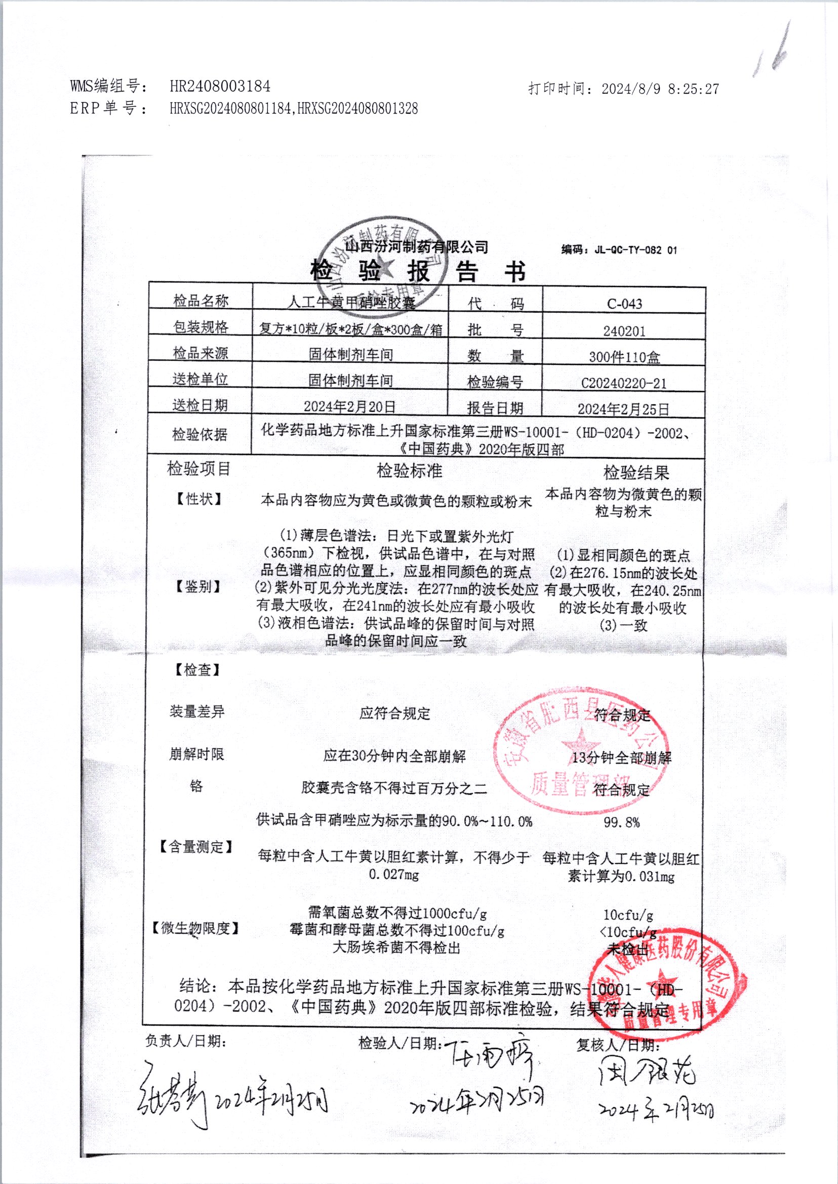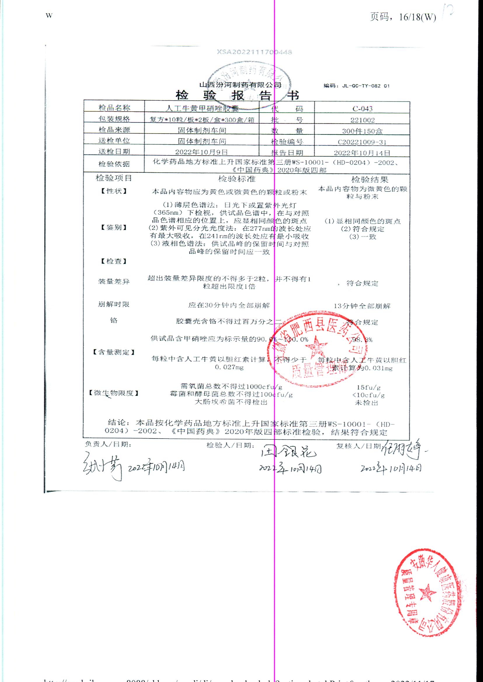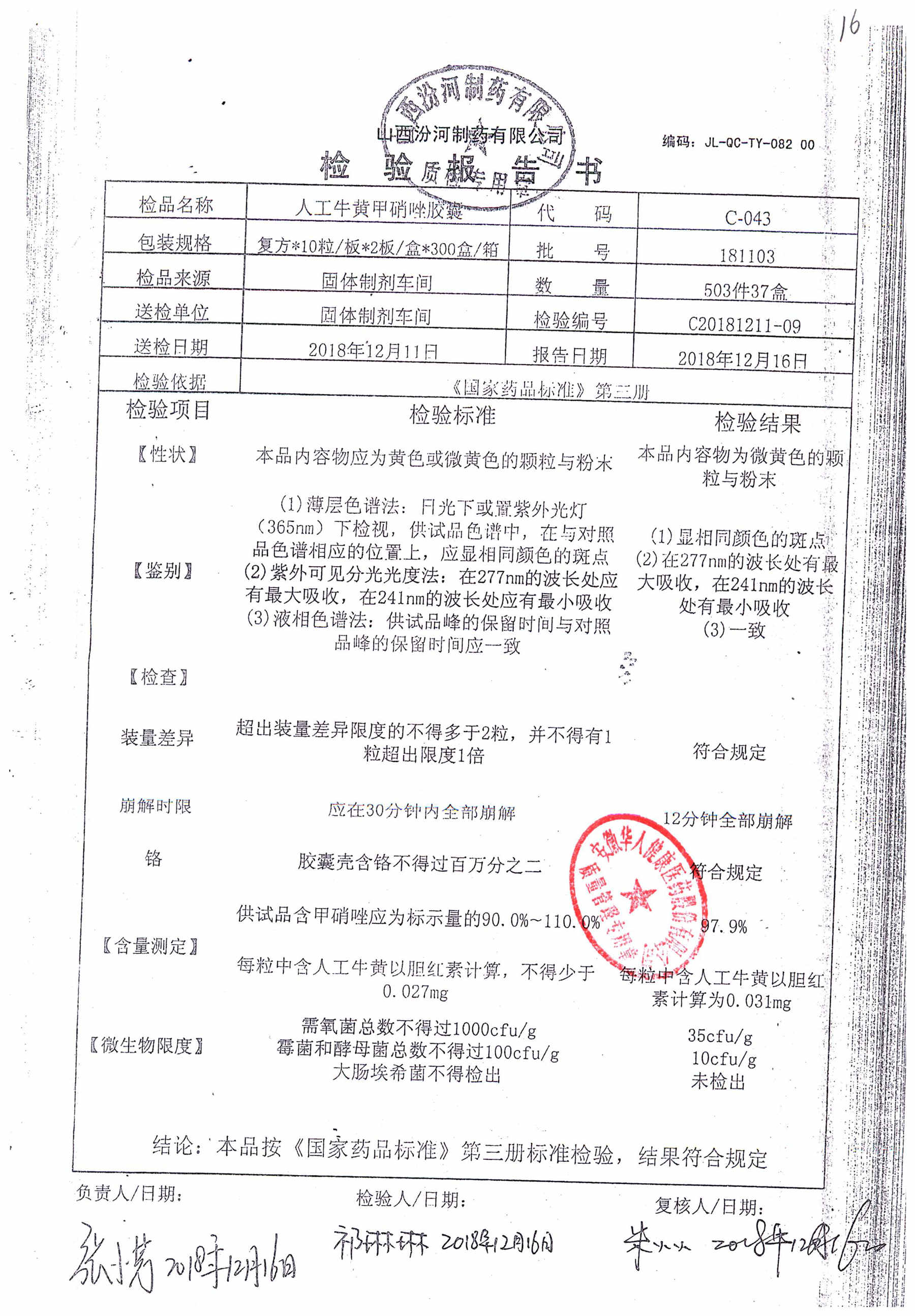 | 名稱 | 規(guī)格 | 批號 | 藥檢報告 |