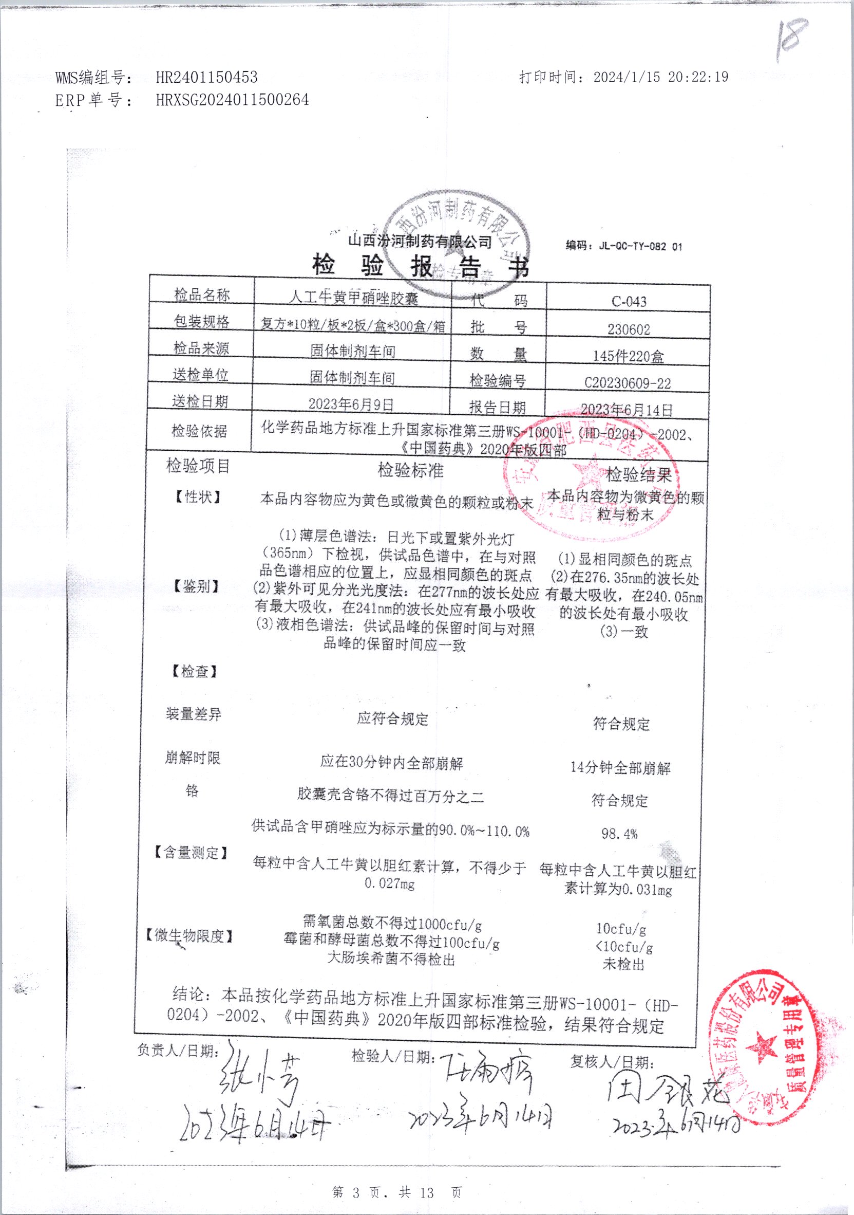| 人工牛黃甲硝唑膠囊 | 復(fù)方*20粒 | 240703 | 查看詳情 |
