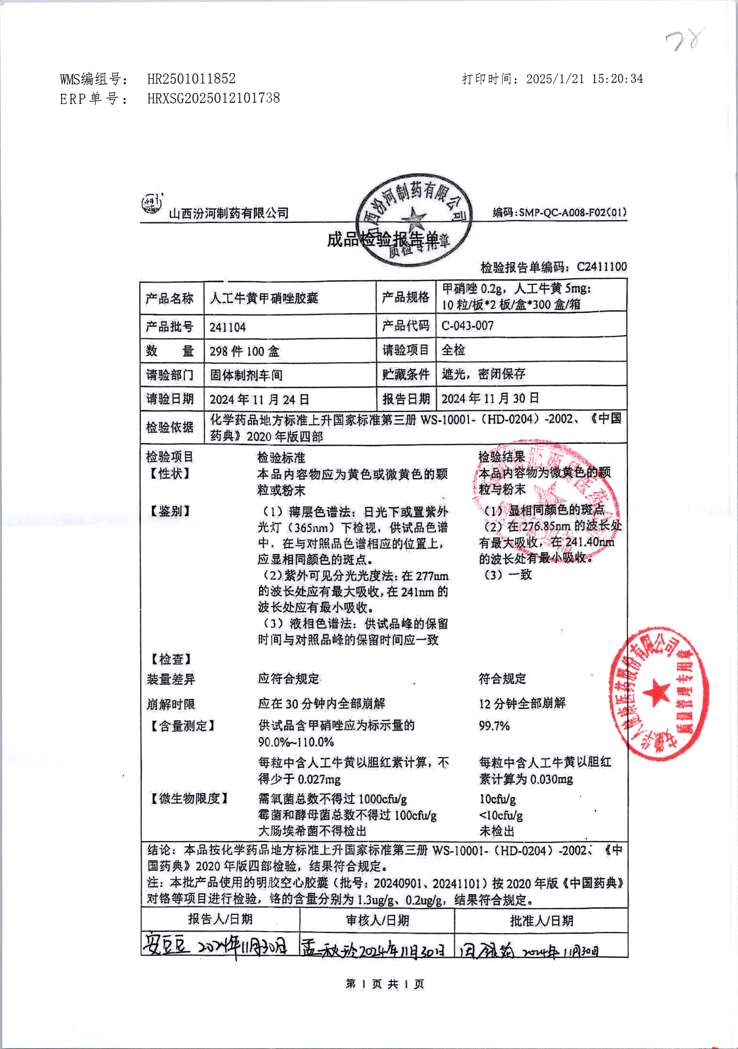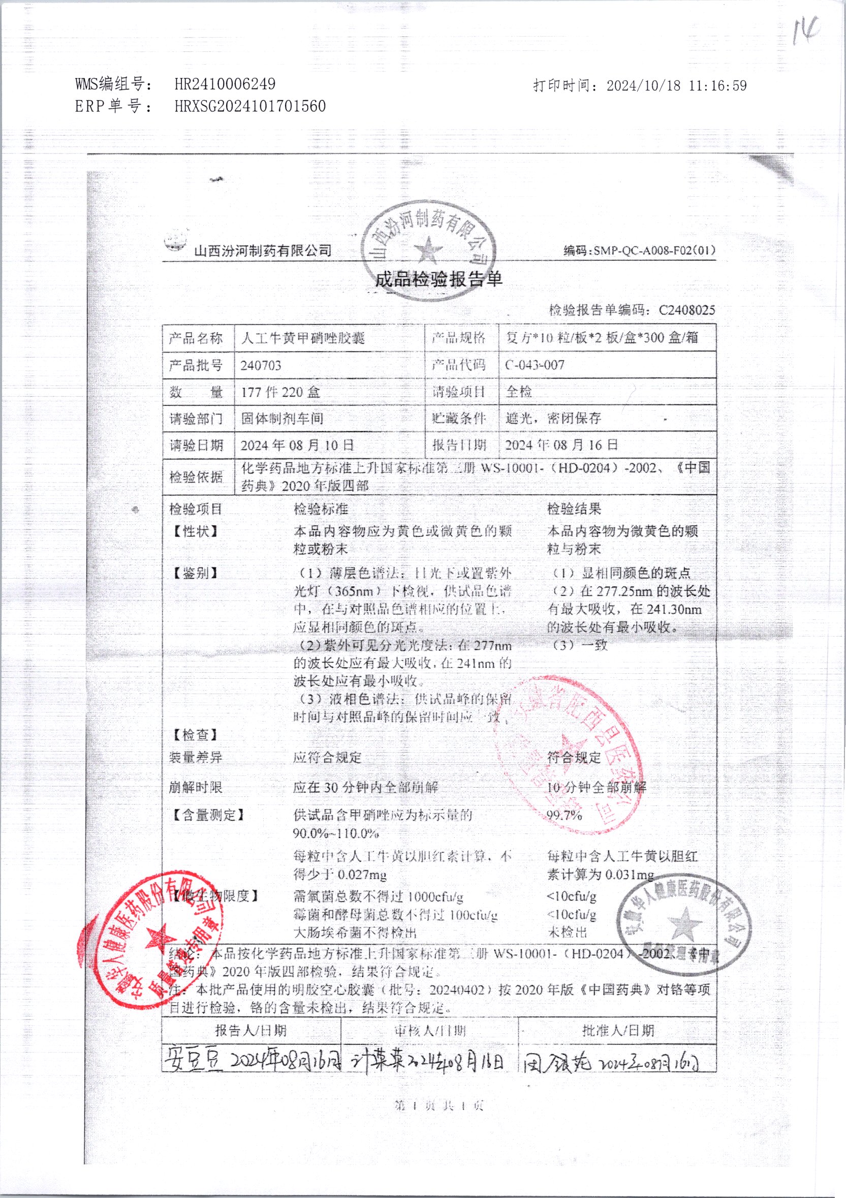 | 人工牛黃甲硝唑膠囊 | 復(fù)方*20粒 | 241104 | 查看詳情 |