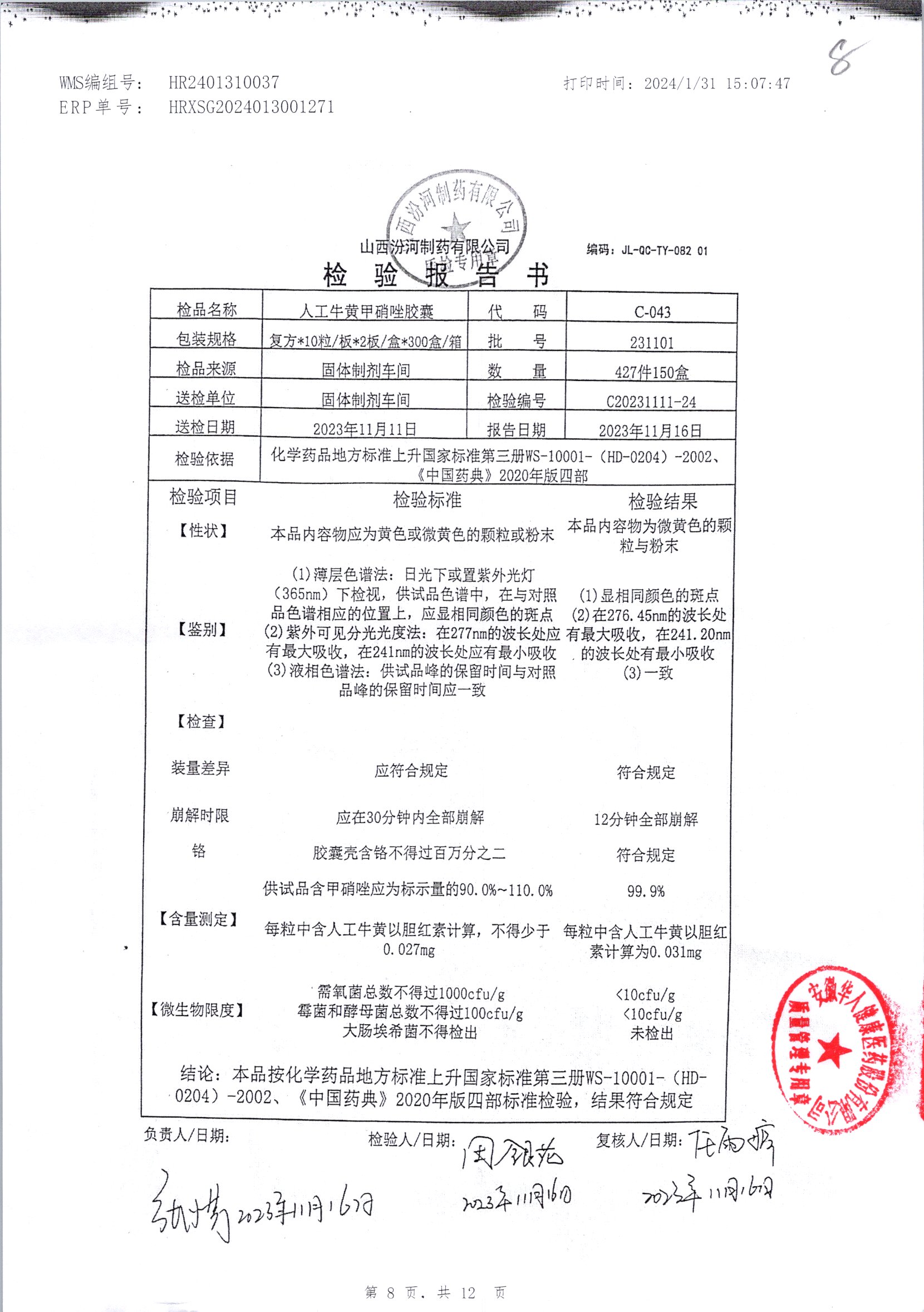 | 人工牛黃甲硝唑膠囊 | 復(fù)方*20粒 | 240201 | 查看詳情 |