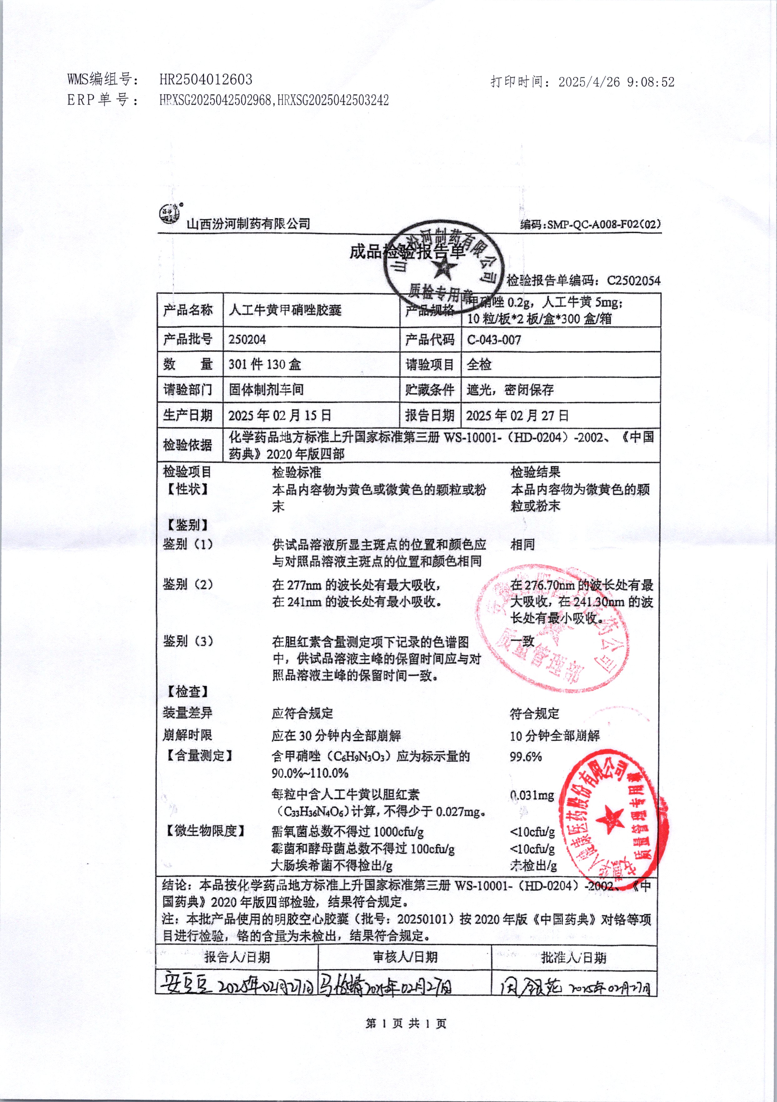 | 人工牛黃甲硝唑膠囊 | 復(fù)方*20粒 | 250504 | 查看詳情 |