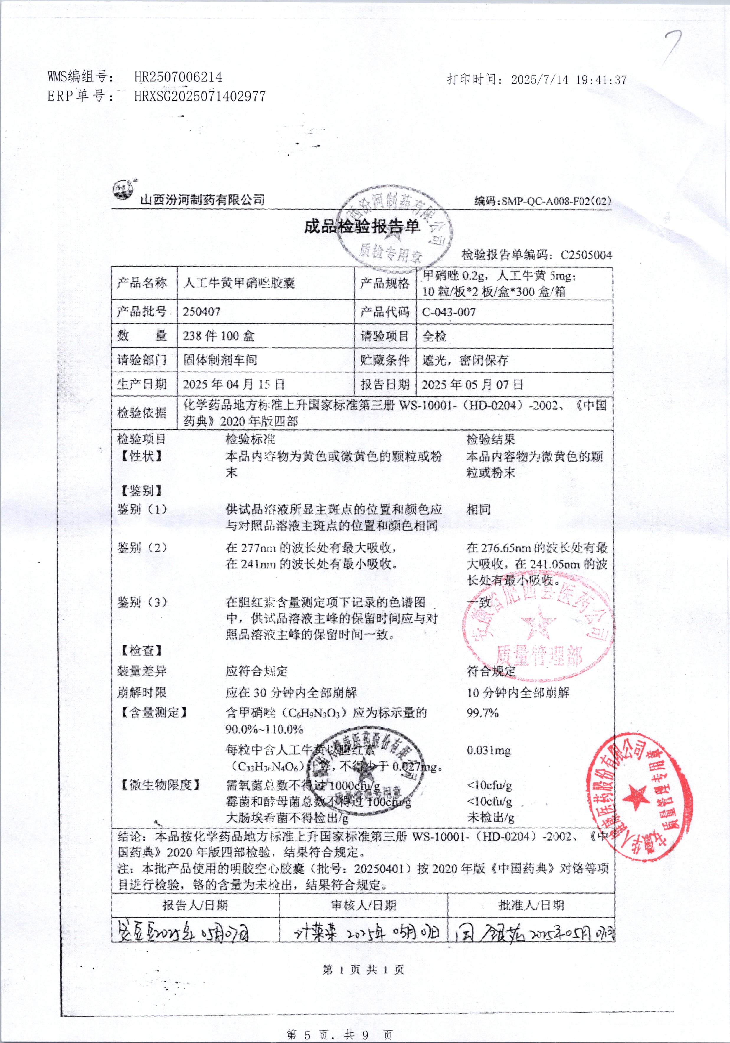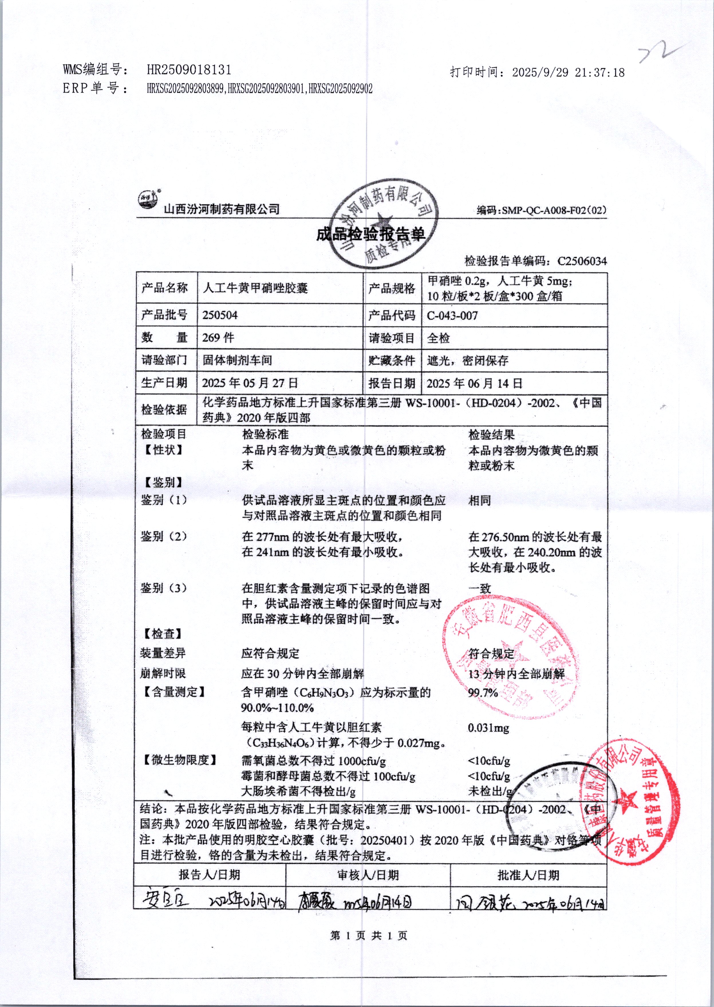 | 人工牛黃甲硝唑膠囊 | 復(fù)方*20粒 | 250407 | 查看詳情 |