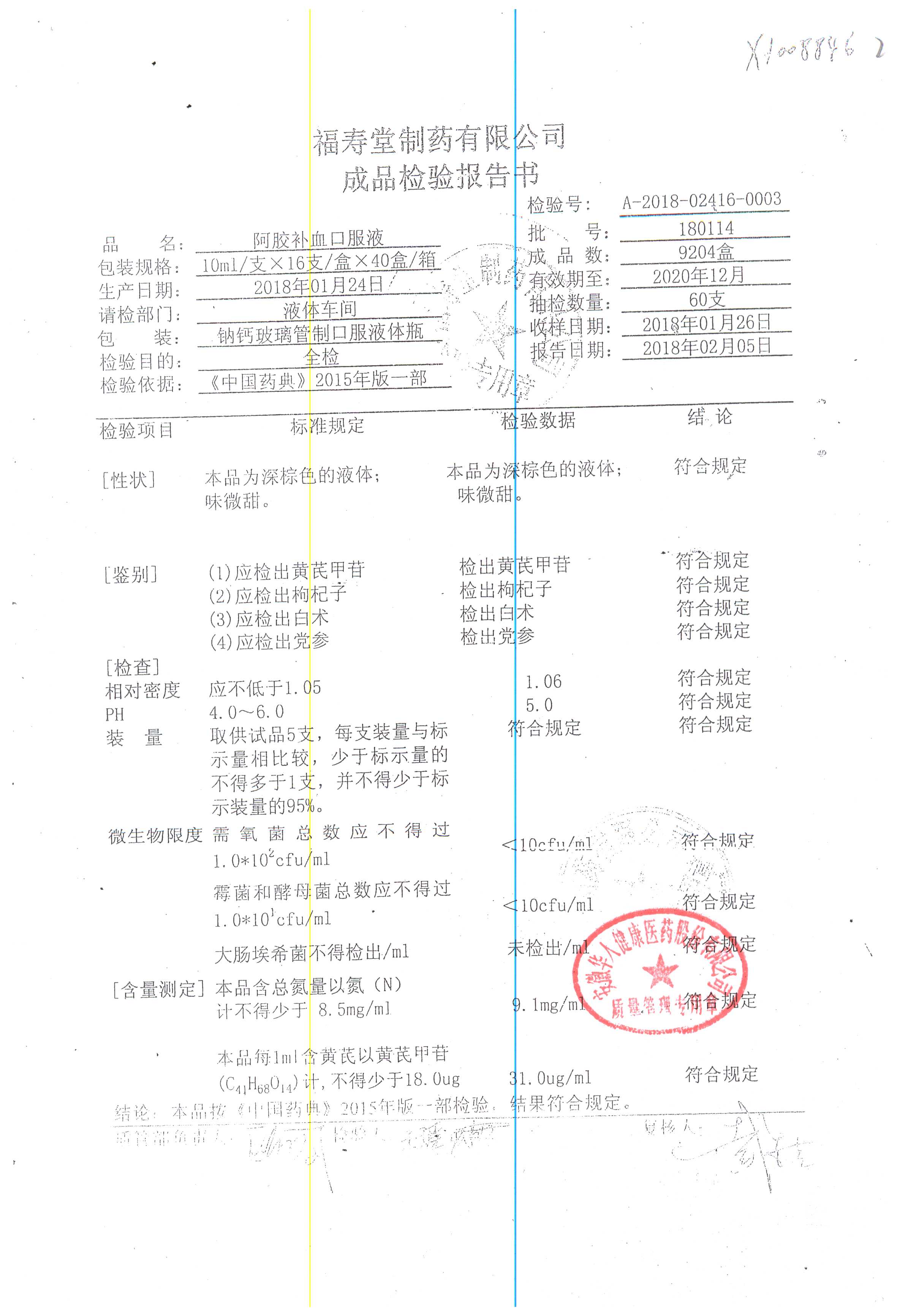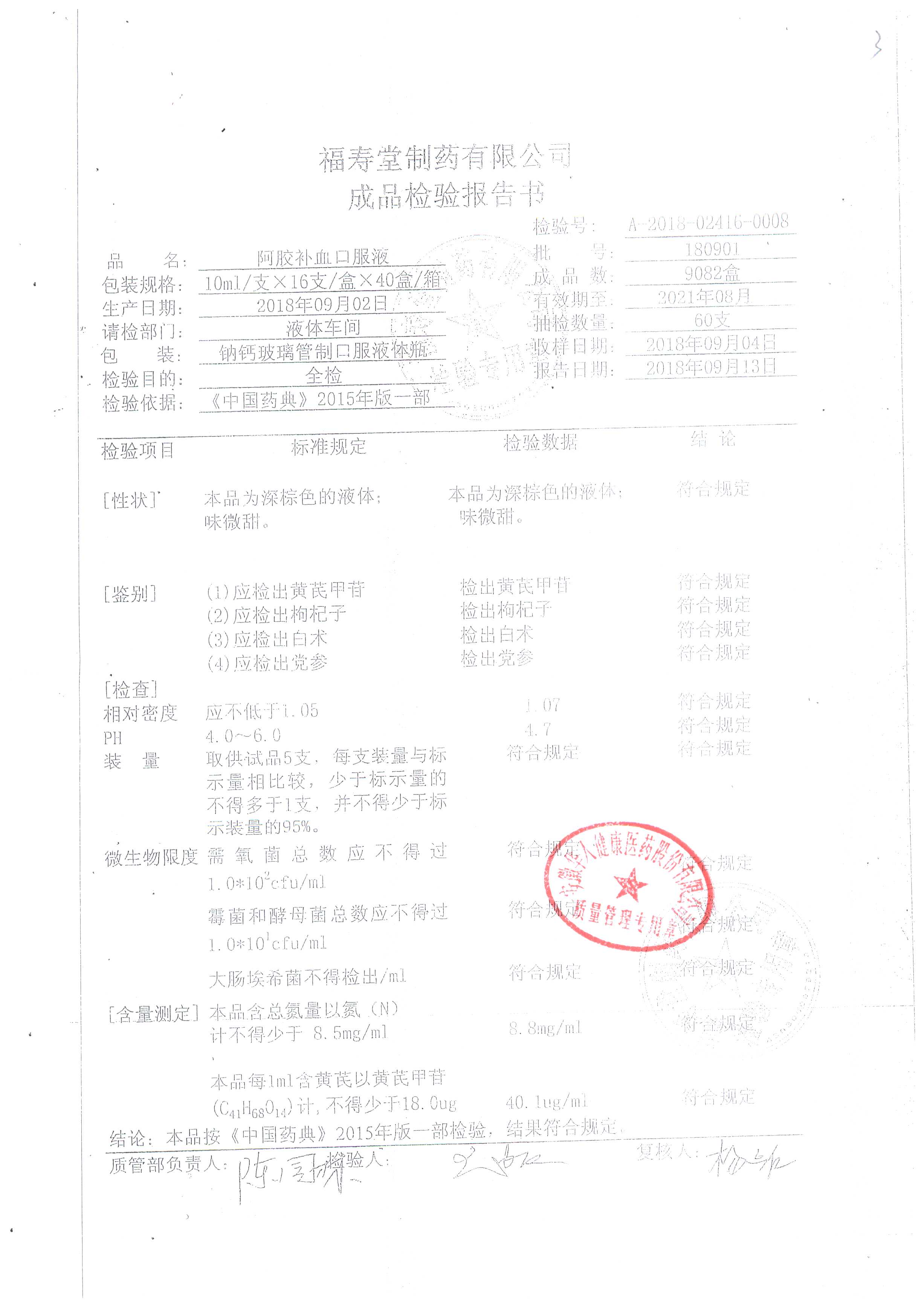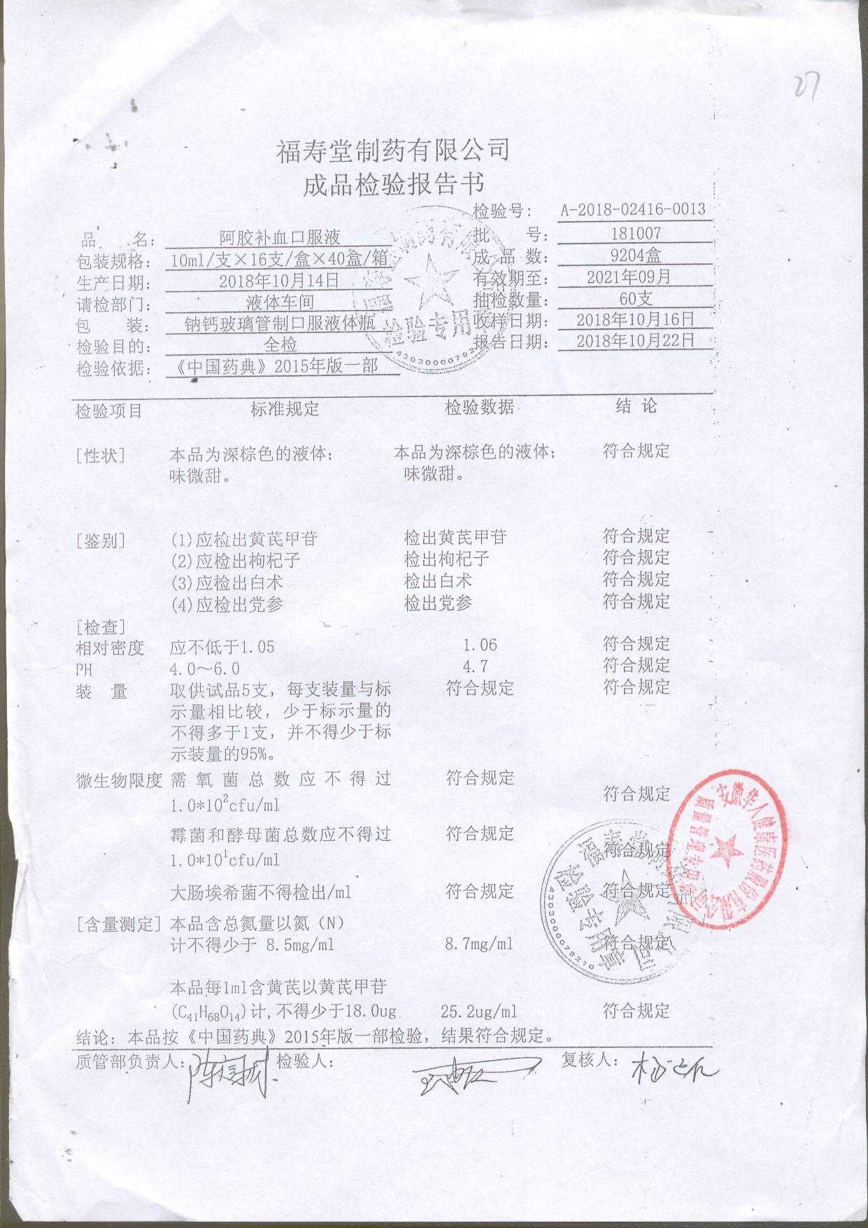 | 阿膠補(bǔ)血口服液 | 10ml*16支 | 180901 | 查看詳情 |