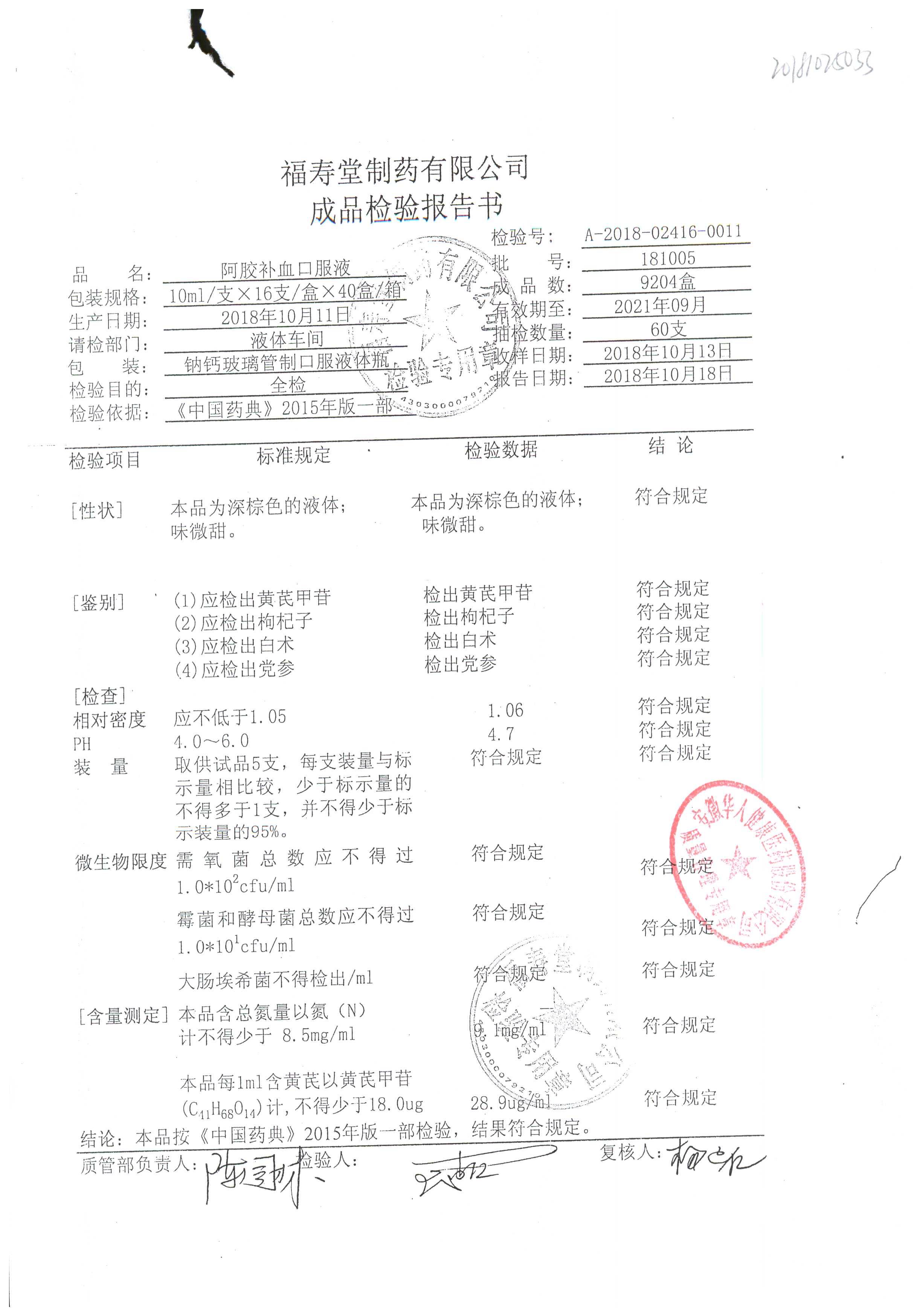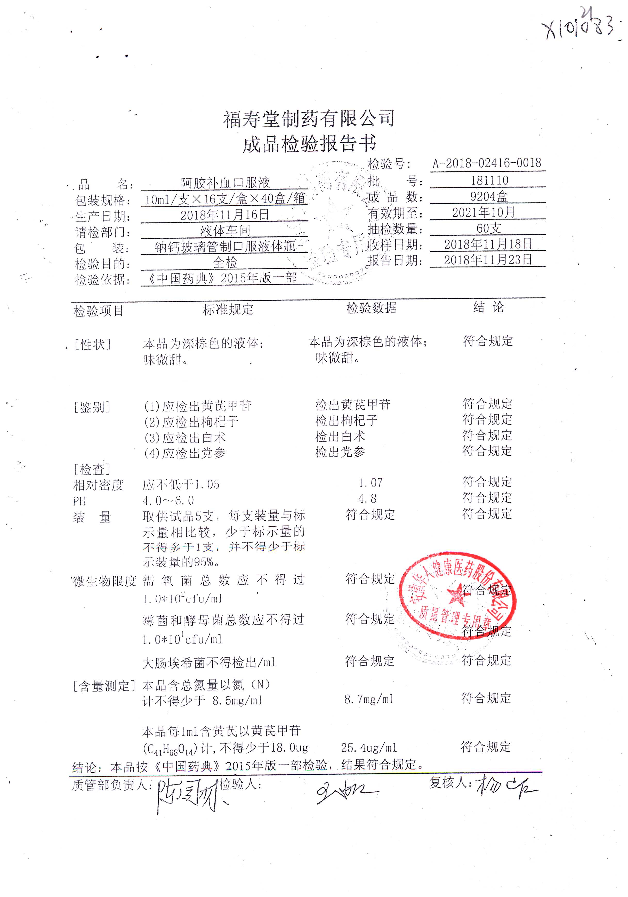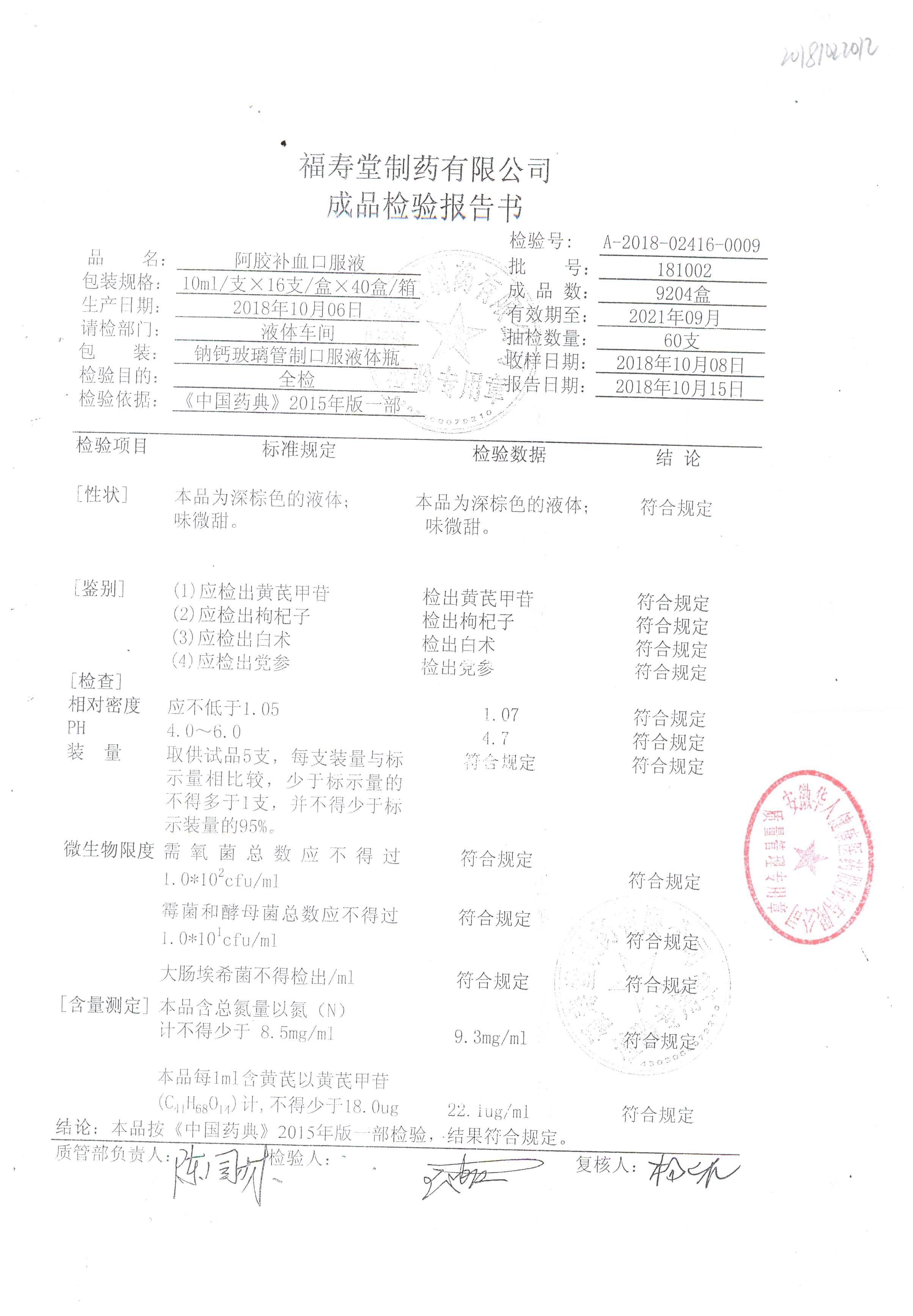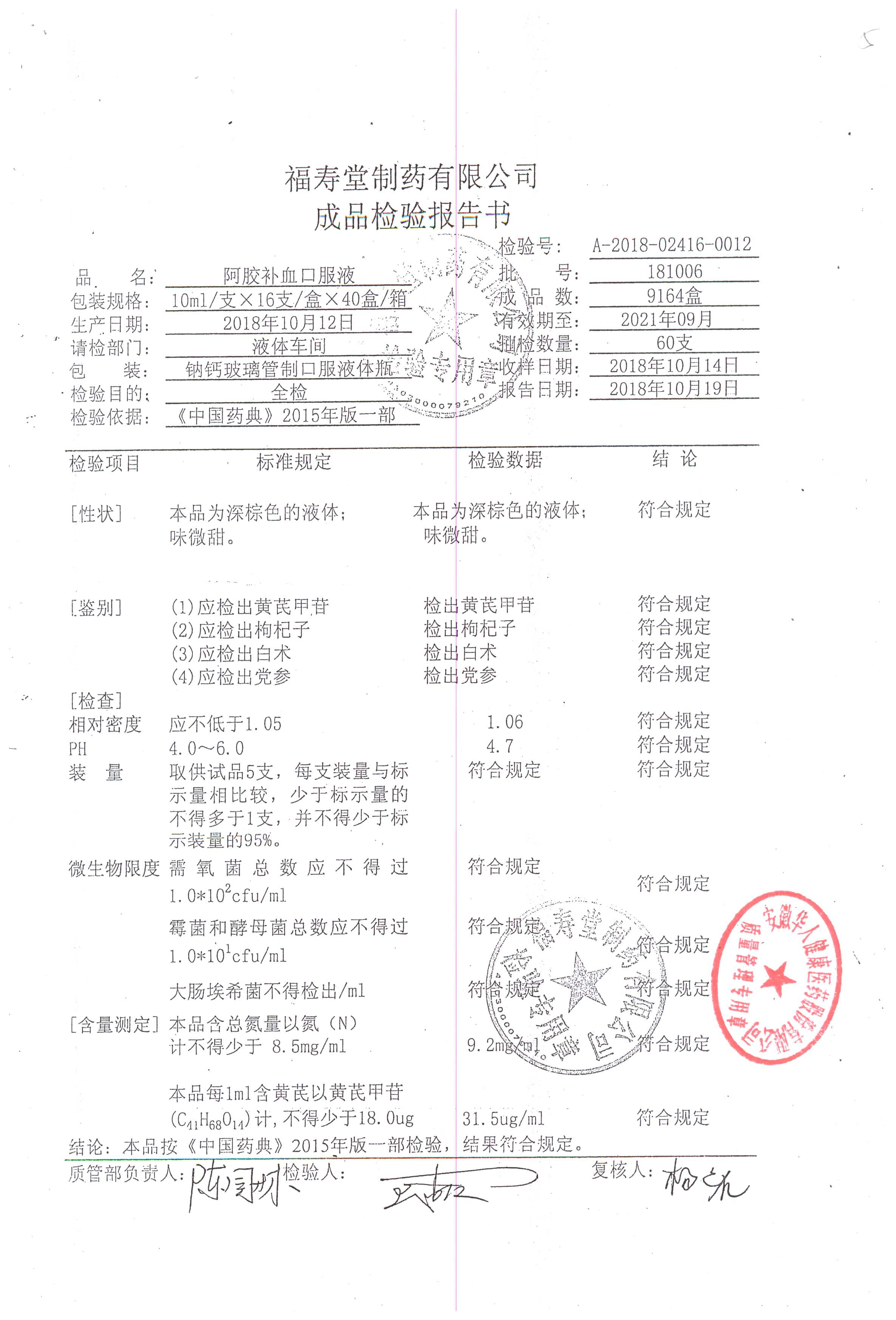 | 阿膠補(bǔ)血口服液 | 10ml*16支 | 180901 | 查看詳情 |