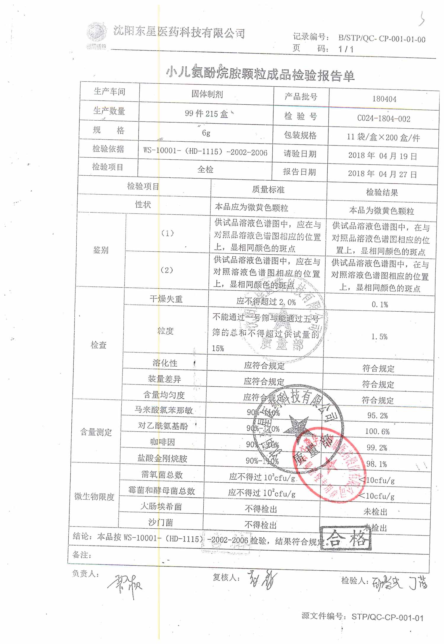 | 小兒氨酚烷胺顆粒 | 6g*11袋 | 180404 | 查看詳情 |
