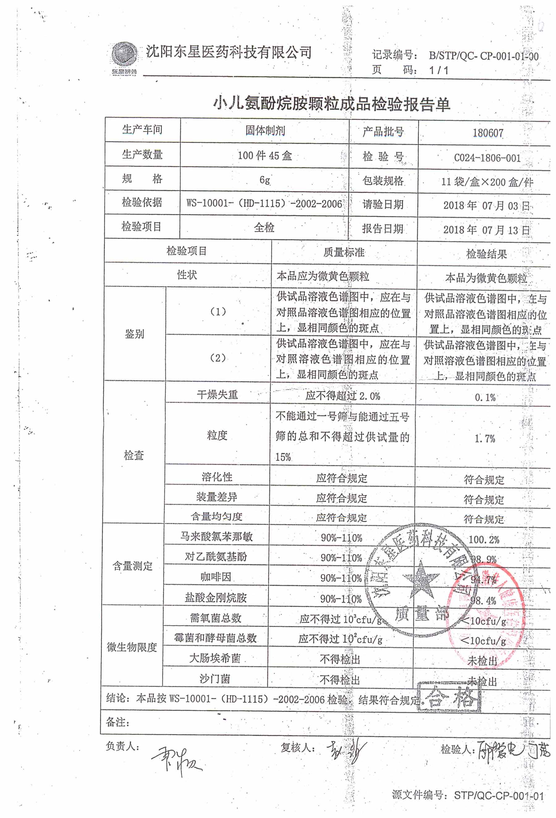| 小兒氨酚烷胺顆粒 | 6g*11袋 | 180607 | 查看詳情 |