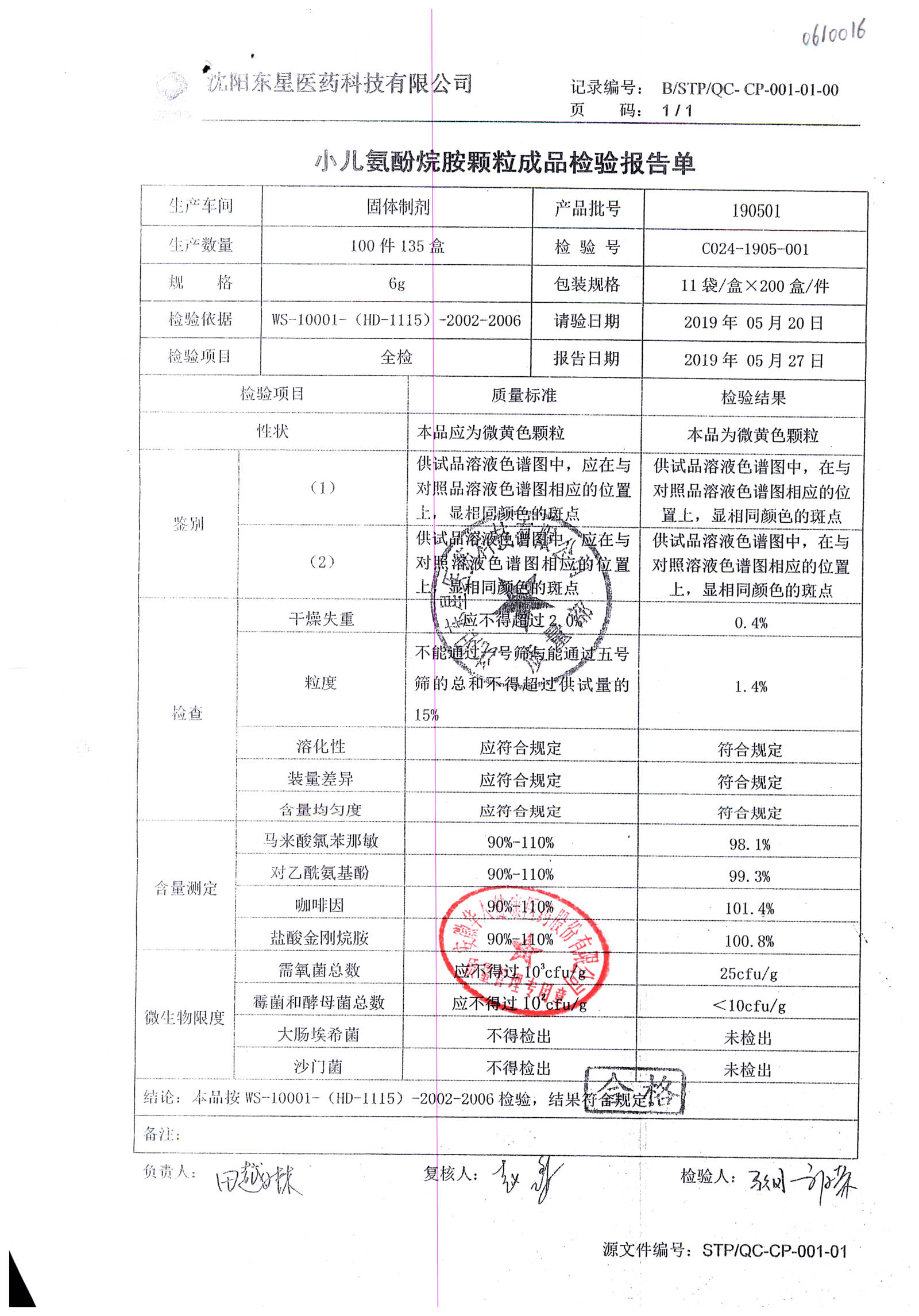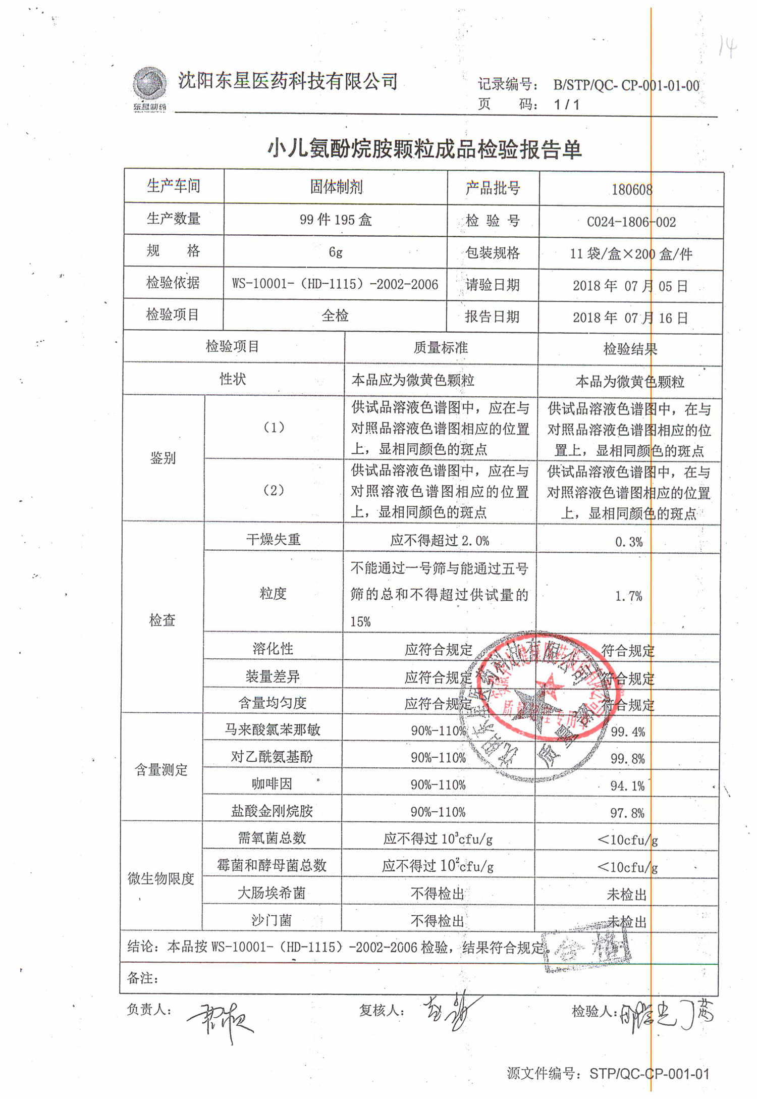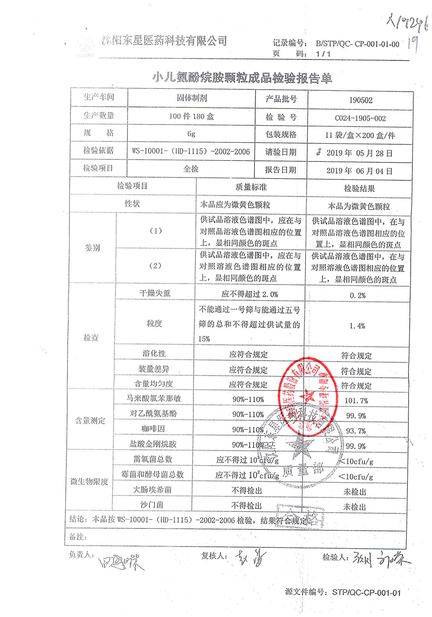 | 小兒氨酚烷胺顆粒 | 6g*11袋 | 190801 | 查看詳情 |