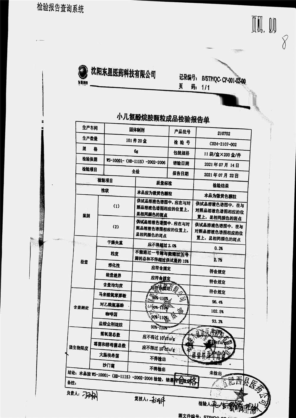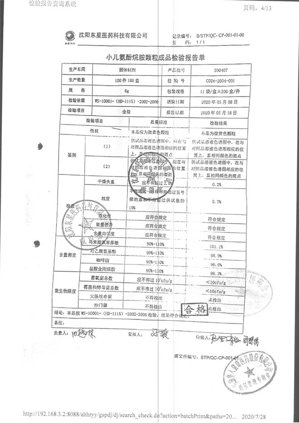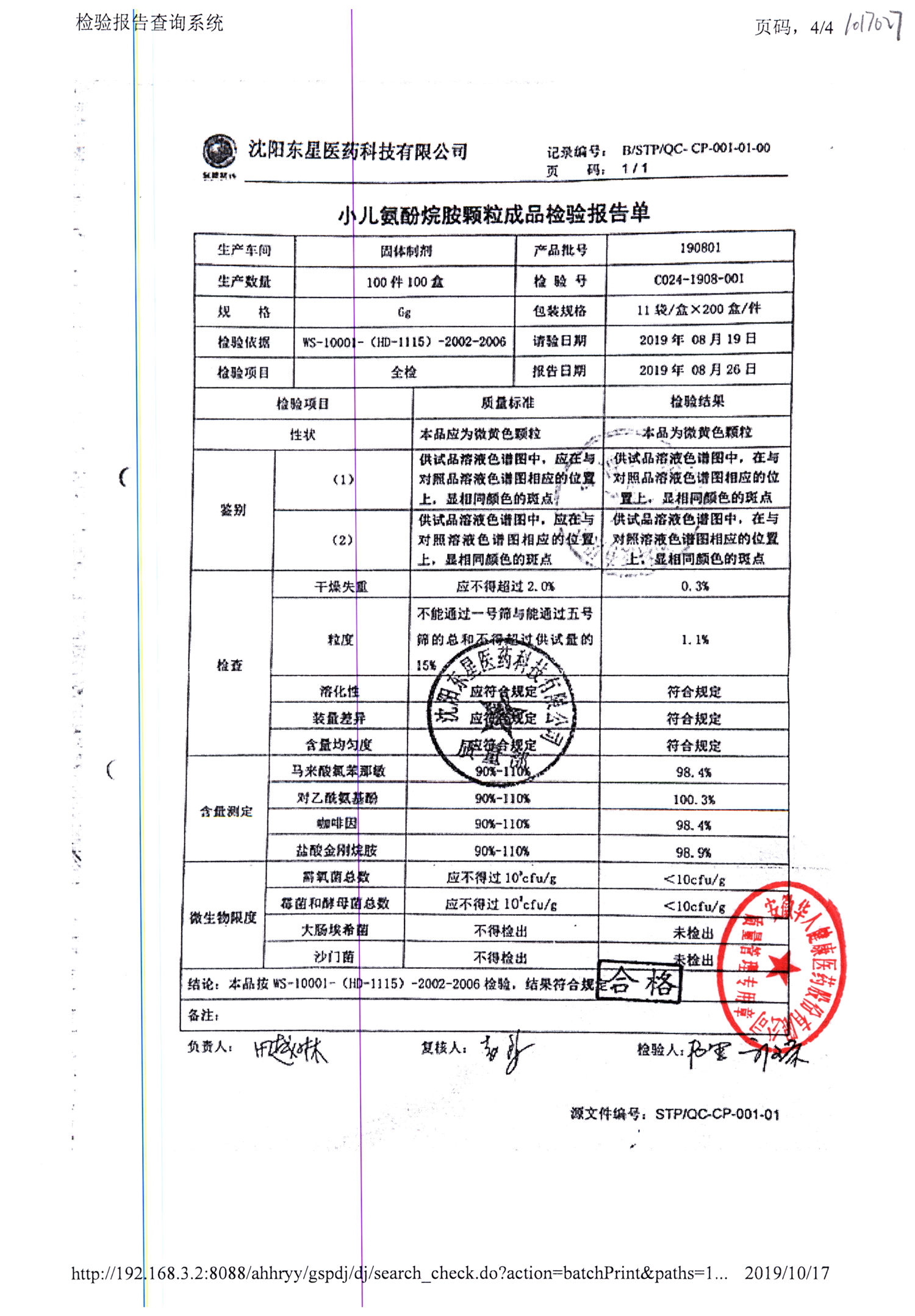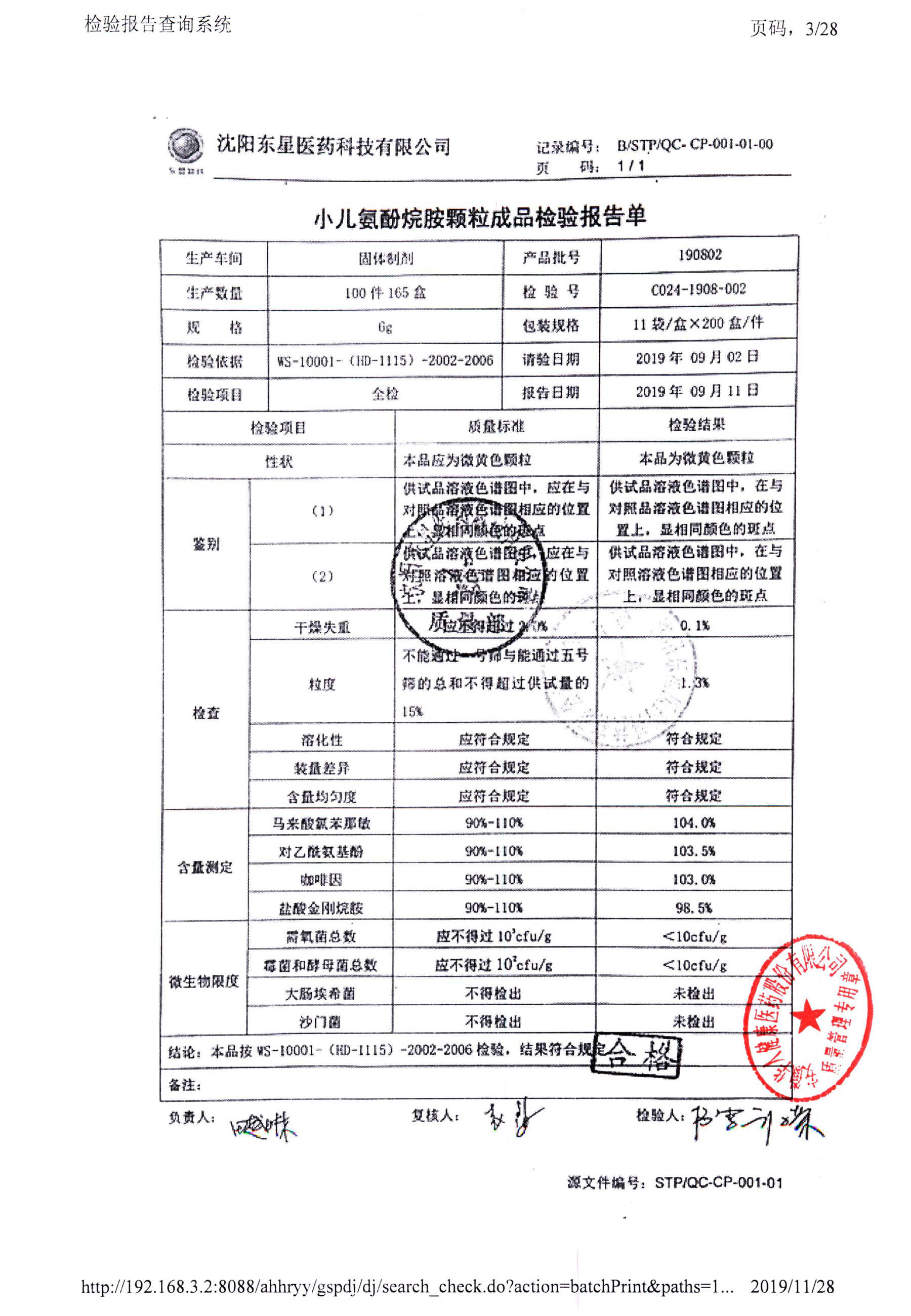 | 小兒氨酚烷胺顆粒 | 6g*11袋 | 190801 | 查看詳情 |
