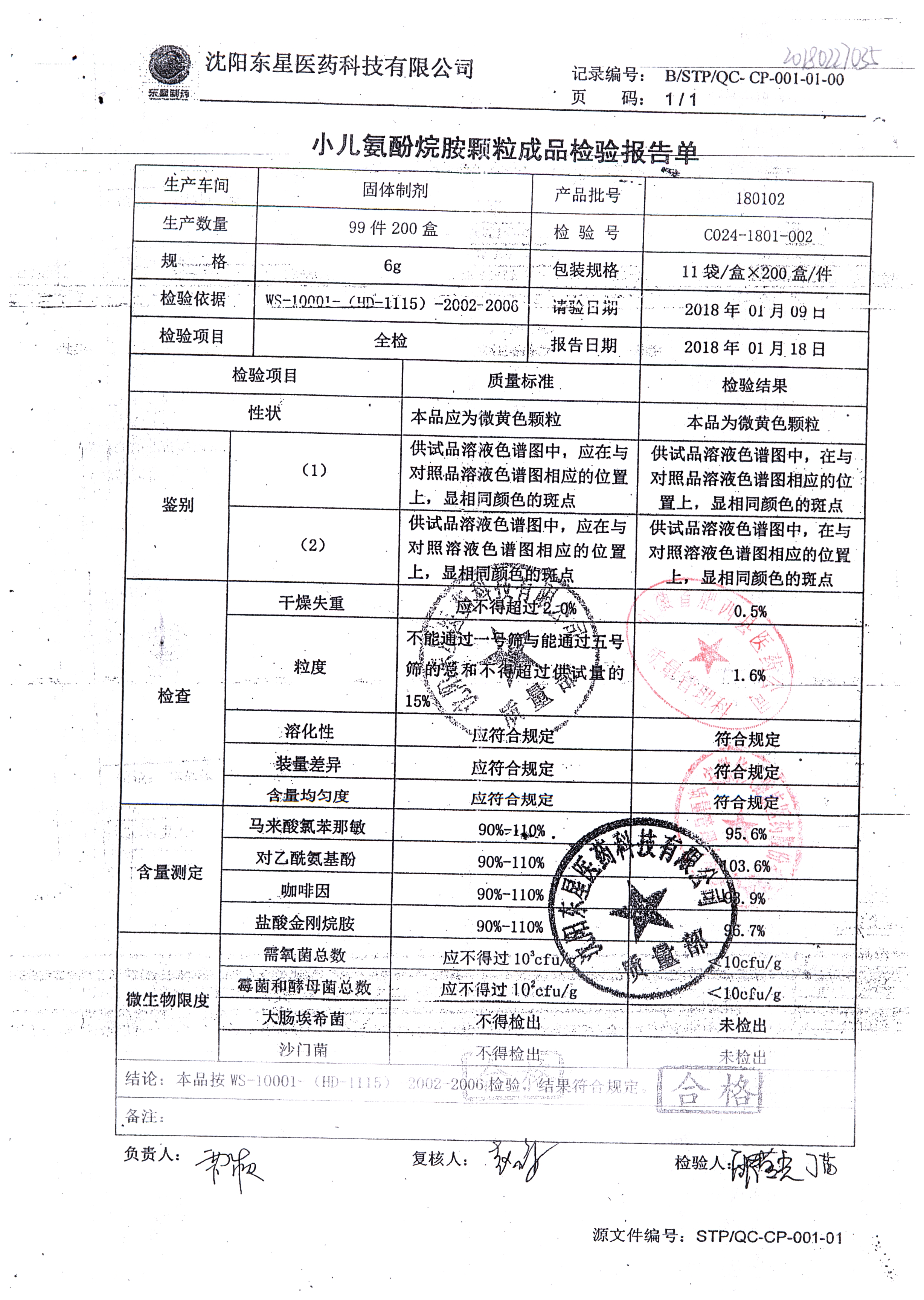 | 小兒氨酚烷胺顆粒 | 6g*11袋 | 181201 | 查看詳情 |