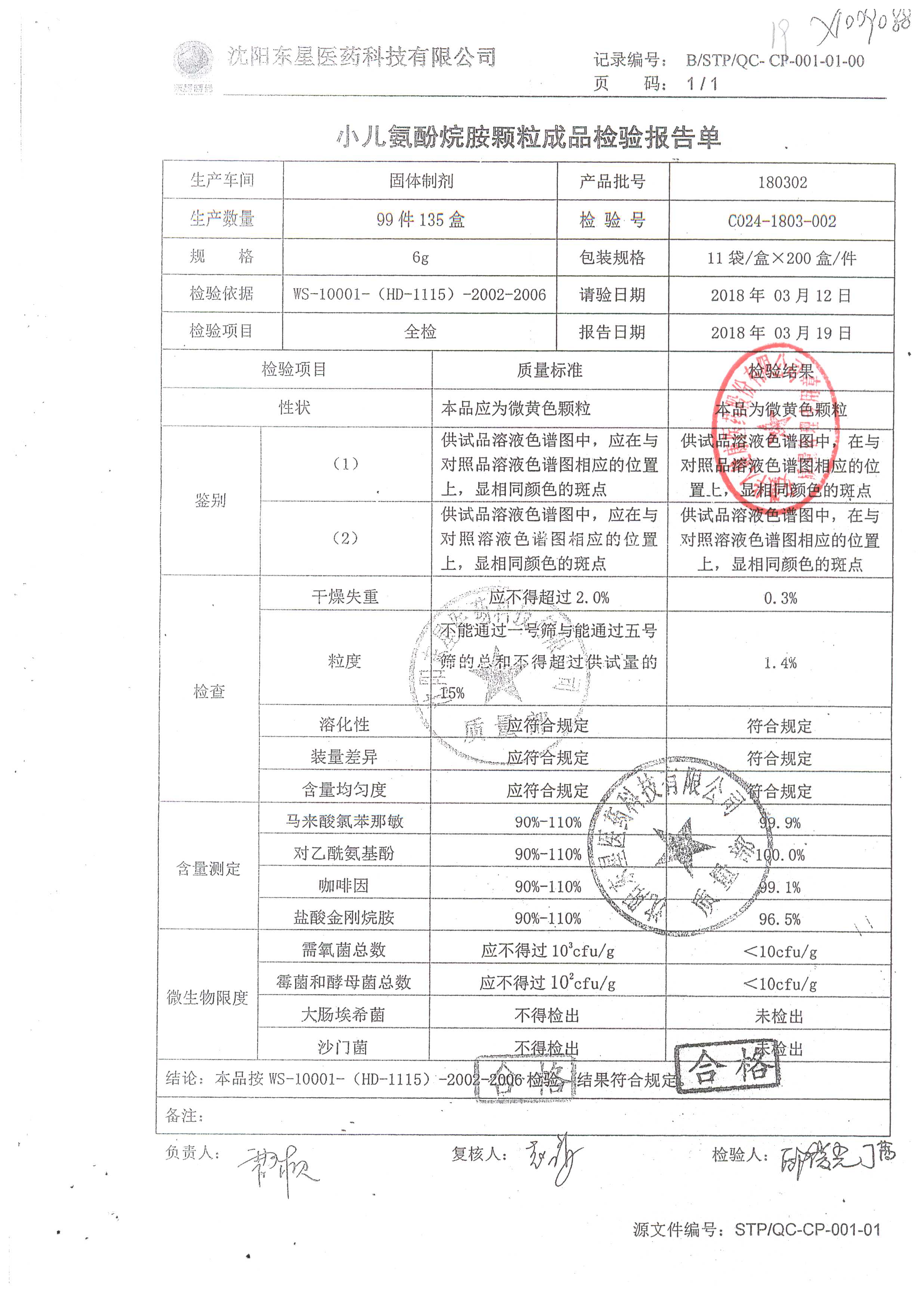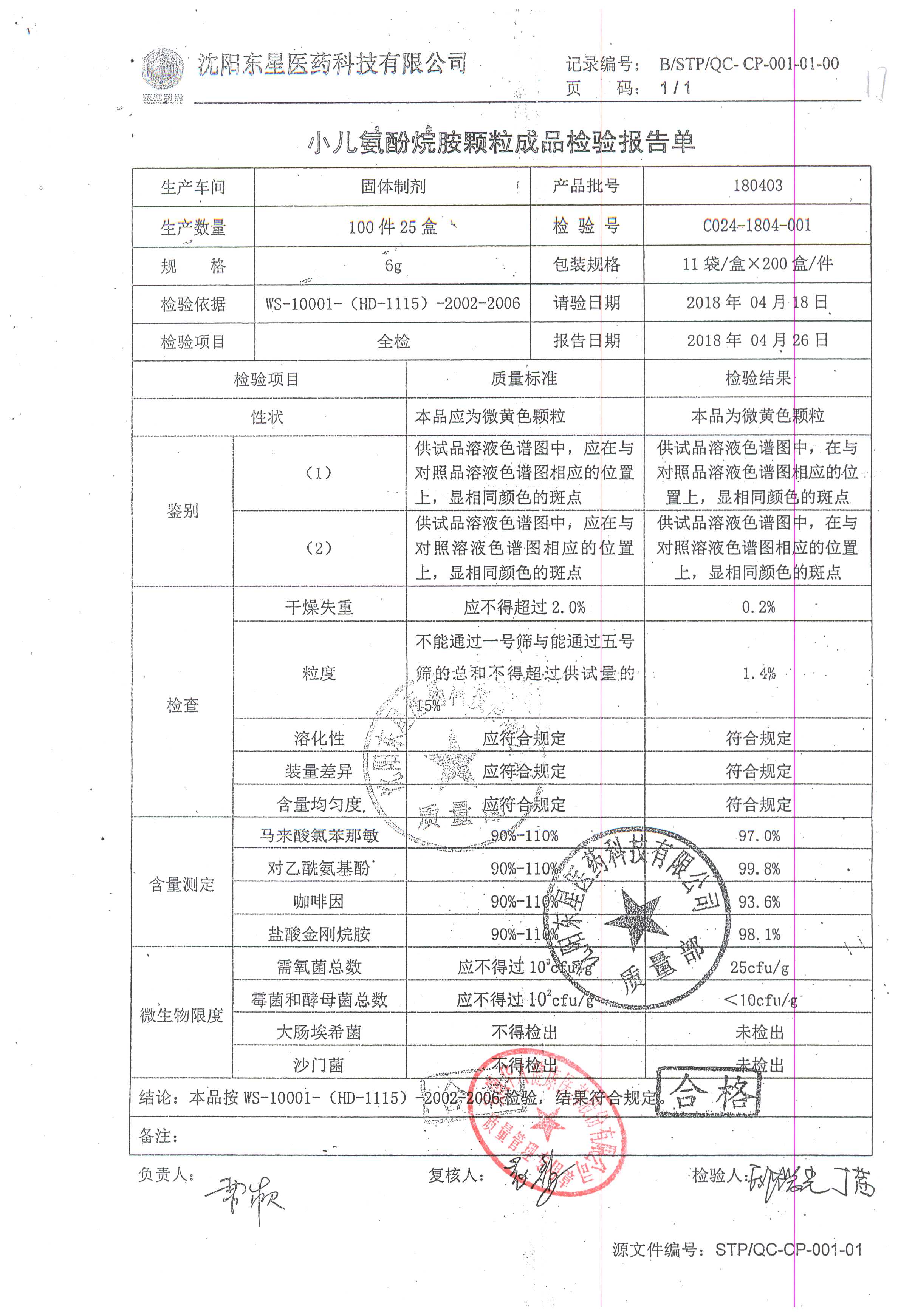 | 小兒氨酚烷胺顆粒 | 6g*11袋 | 180301 | 查看詳情 |