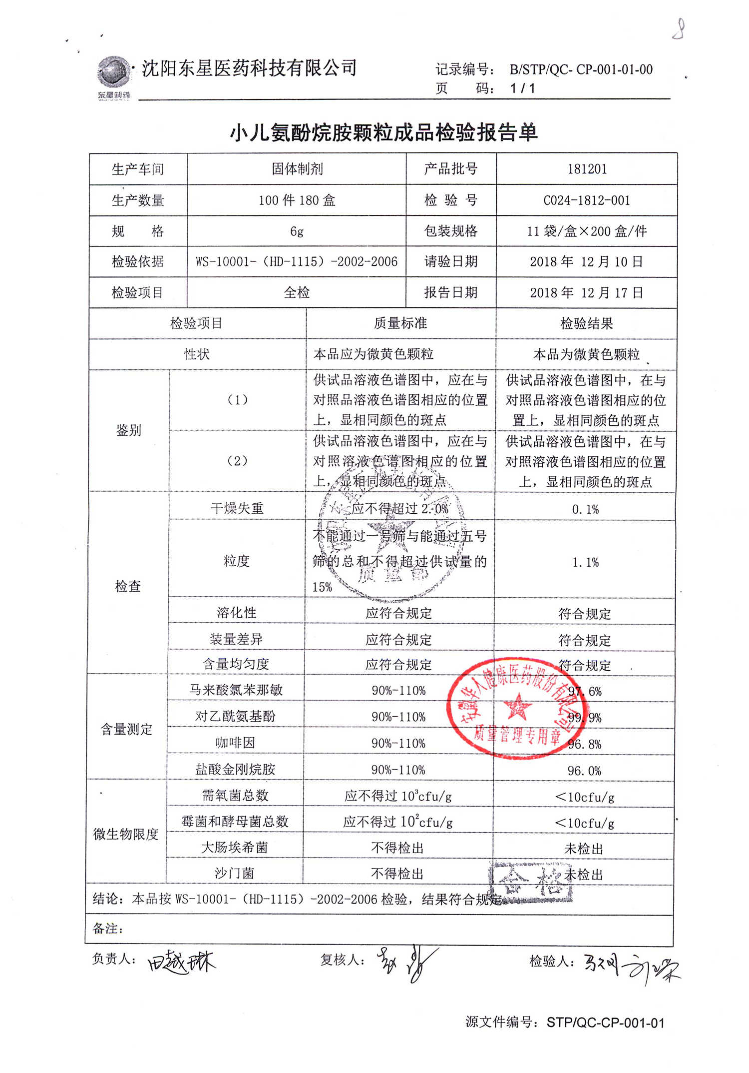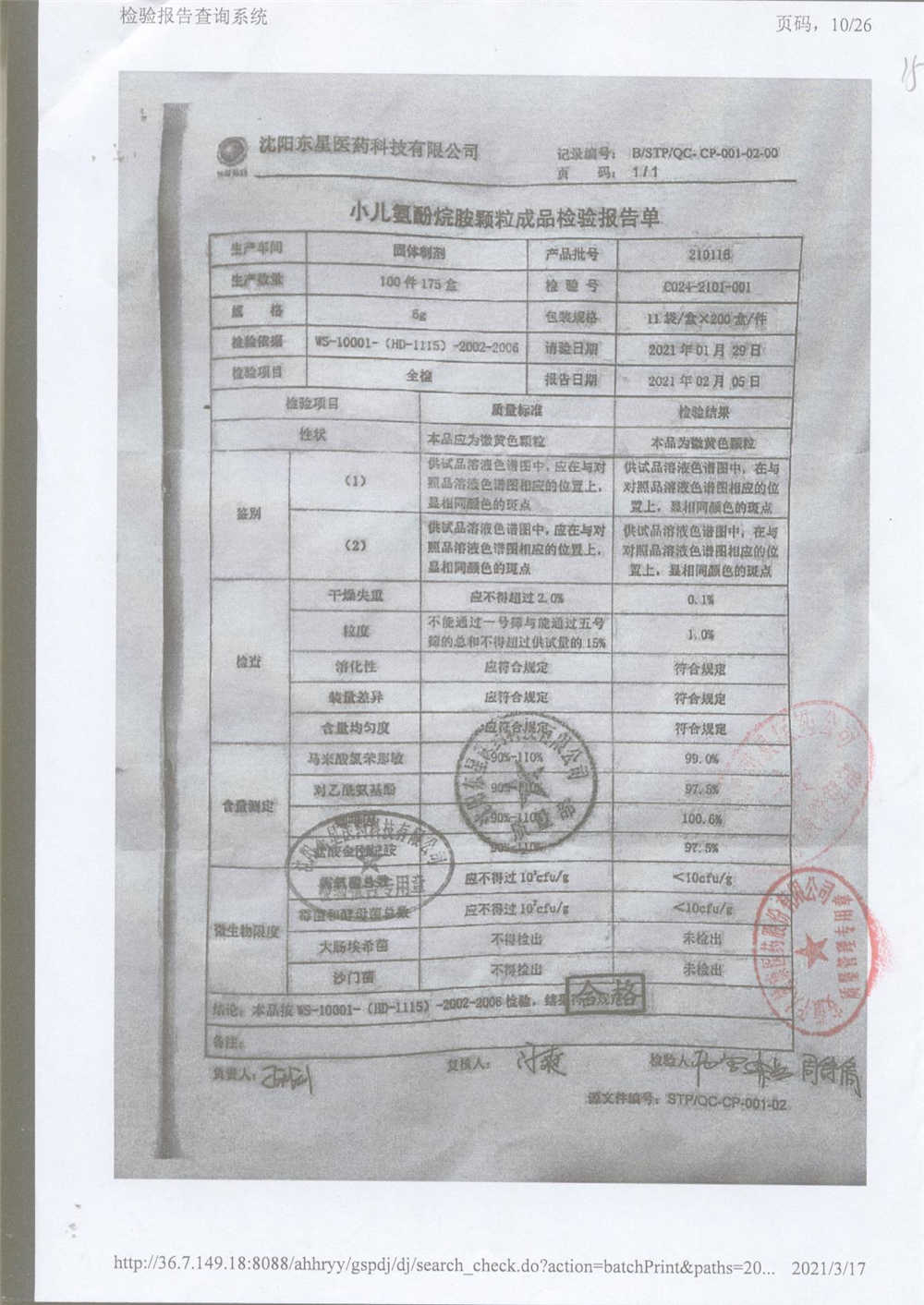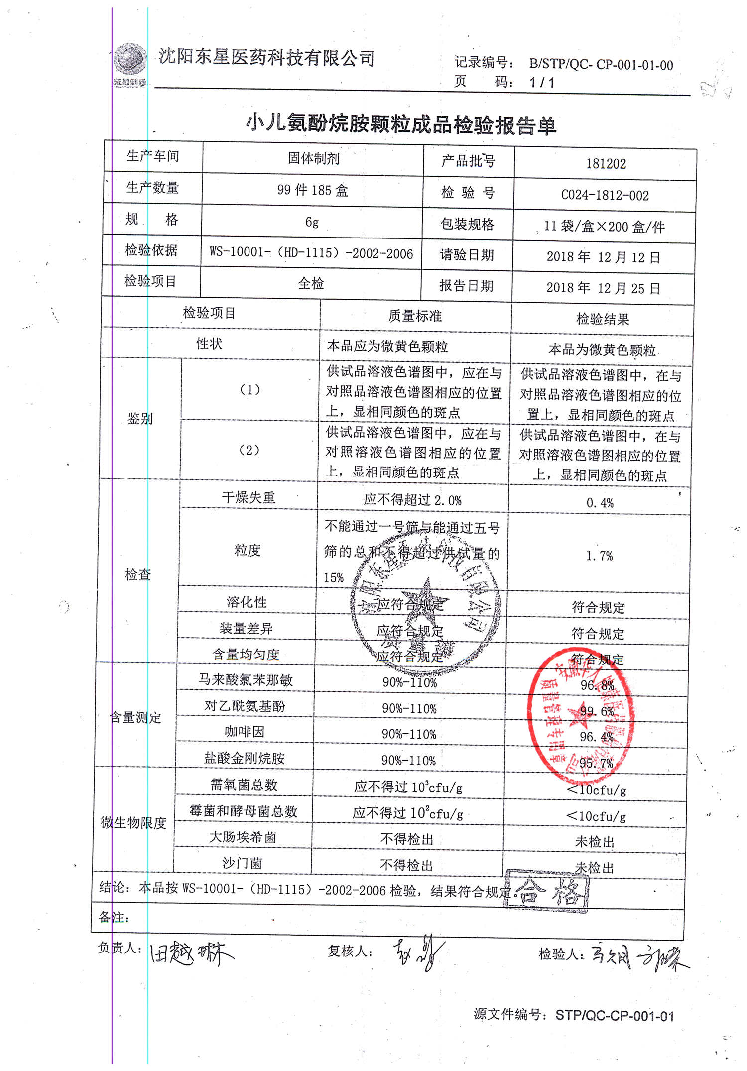 | 小兒氨酚烷胺顆粒 | 6g*11袋 | 201217 | 查看詳情 |